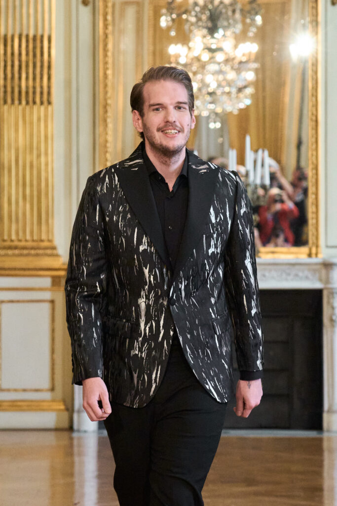 Grâce à des broderies particulièrement élaborées, de couleurs somptueuses et de tissus à la fois solides et fluides, le créateur a cherché à matérialiser la symbolique de la légende de l’Oiseau de Feu.