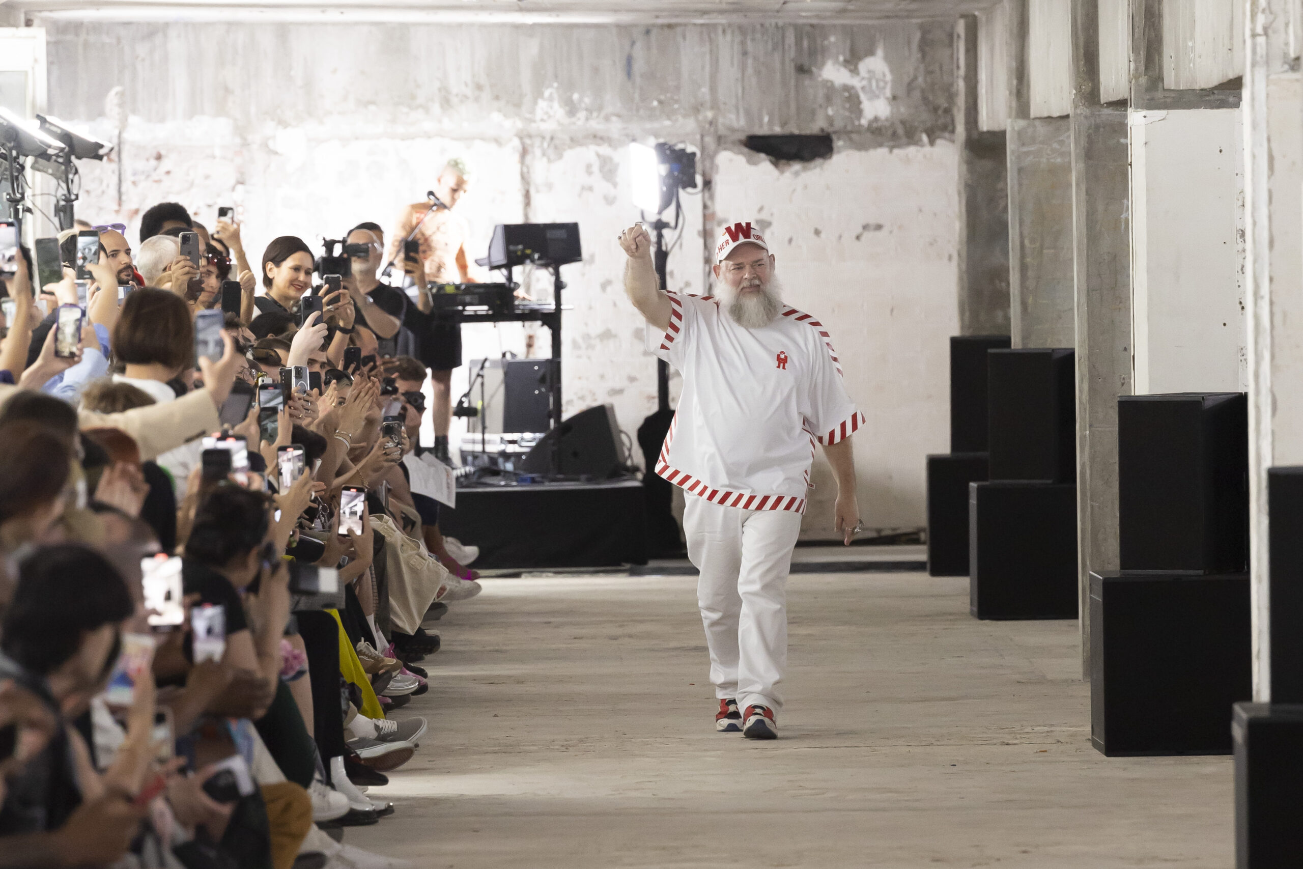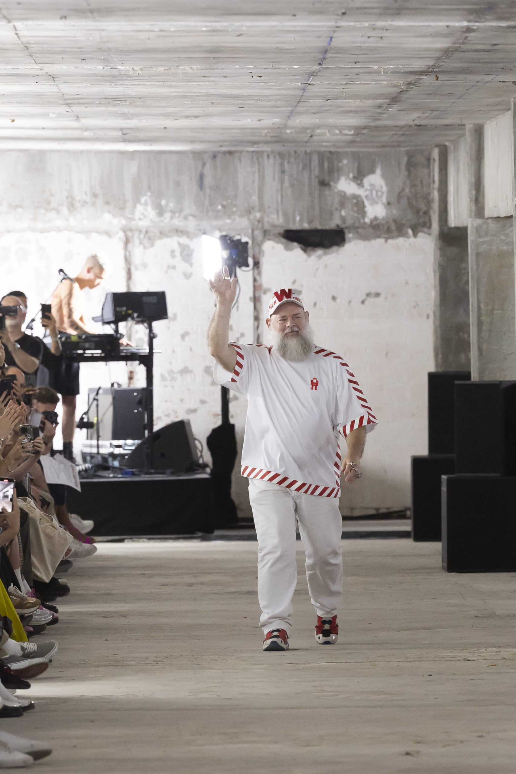 Walter n’est pas seulement un explorateur de la mode; il est aussi un penseur. Il a créé un alphabet extraterrestre, pensant aux nouveaux caractères picturaux pouvant être utilisés dans cette réalité mixte que nous occupons maintenant. Il met en garde contre la vitesse à laquelle le monde se transforme, tout en invitant les «outsiders cosmiques» à rêver grand tout en protégeant notre humanité.