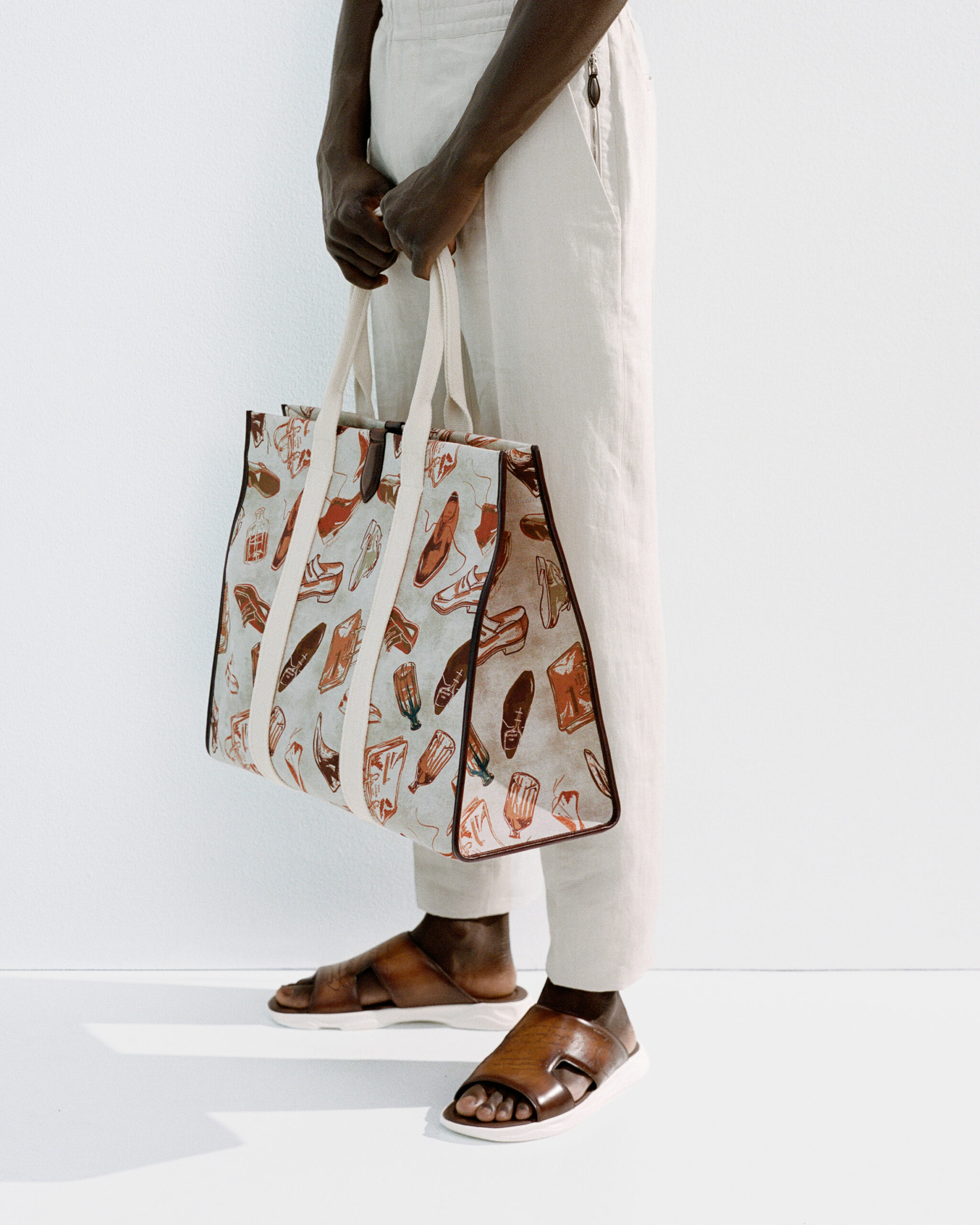 Cette nouvelle collection se déploie en deux chapitres, chacun divisé en deux parties, du printemps à l’été, et propose une réinterprétation des codes iconographiques de Berluti. Des motifs emblématiques de la maison comme le Patina, le Scritto et l’Iconic print se réinventent dans de nouvelles manifestations artisanales.