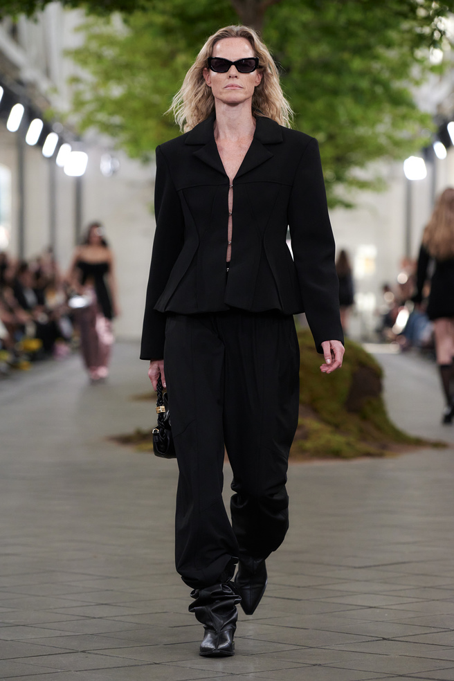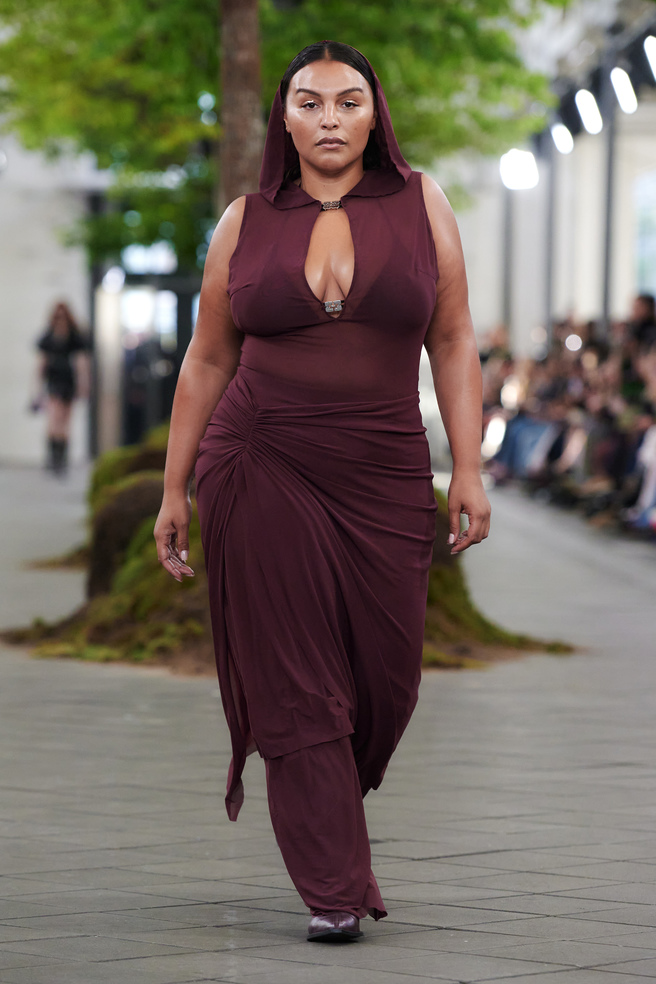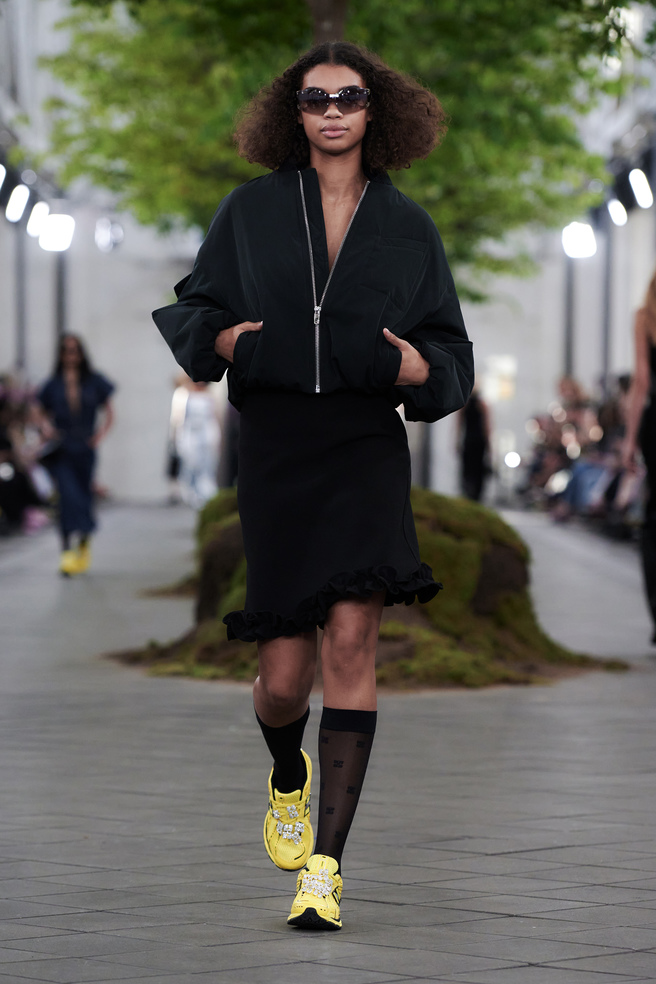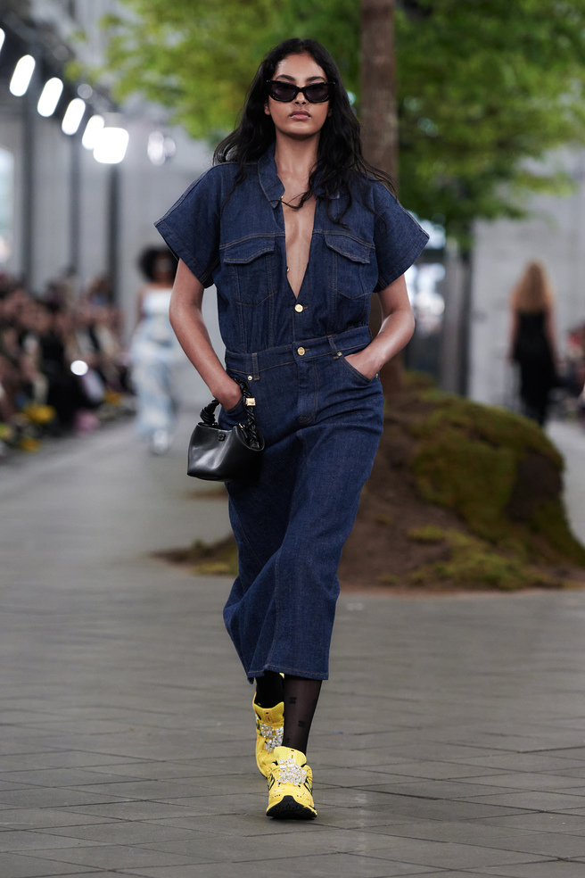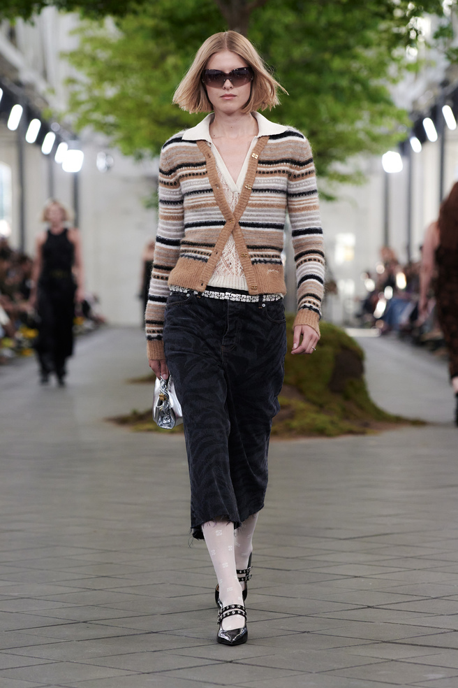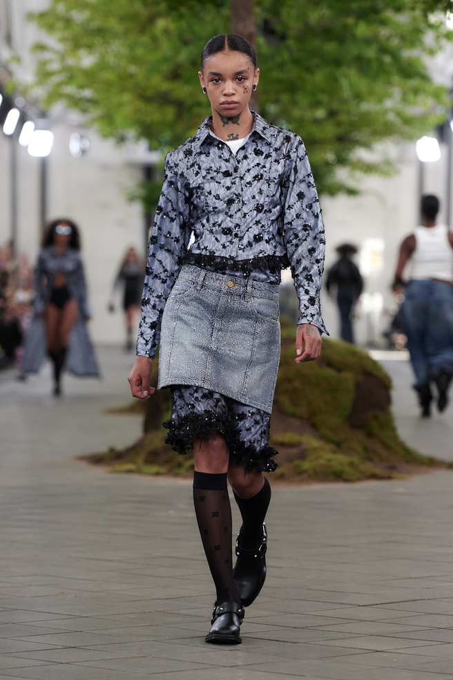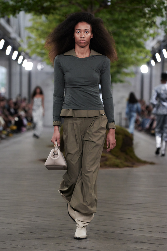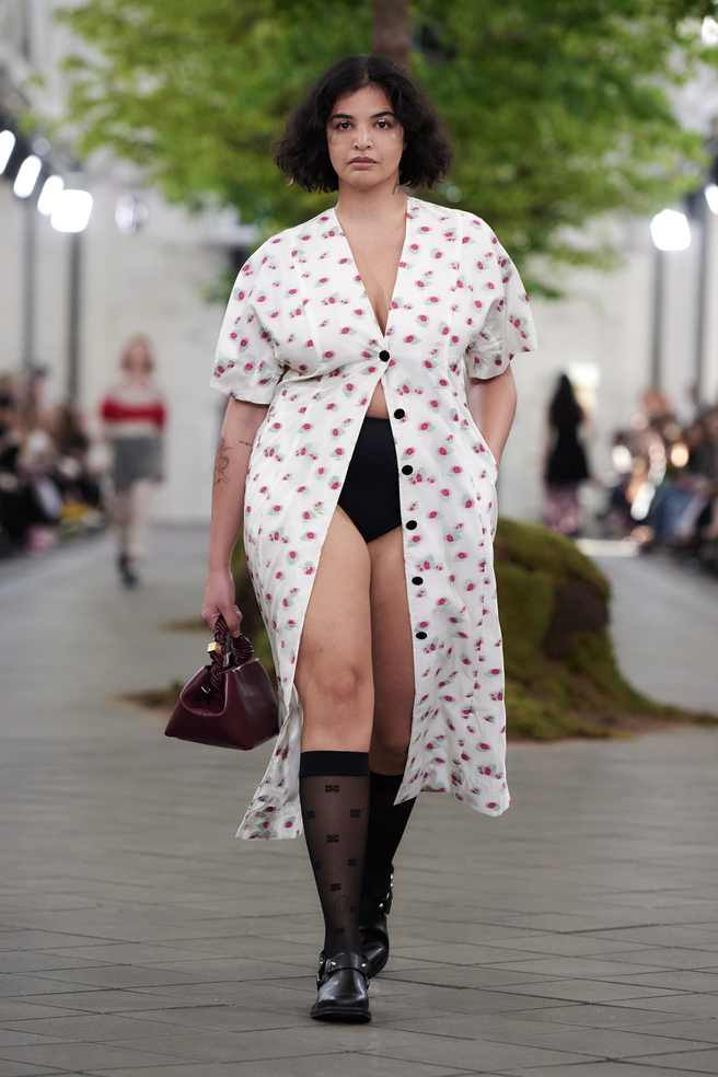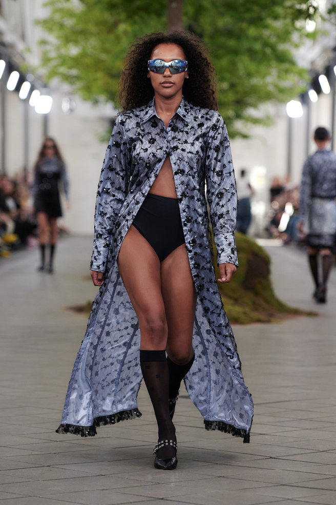 La collection SS24 est un mélange subtil de styles traditionnels et contemporains. Le « jardinage punk de grand-mère » juxtapose l’innocence rurale avec une attitude rebelle. Les silhouettes, quant à elles, varient de robes ajustées à des vestes aux motifs presque origamiques, le tout évoquant une harmonie visuelle qui séduira assurément les citadins sophistiqués.