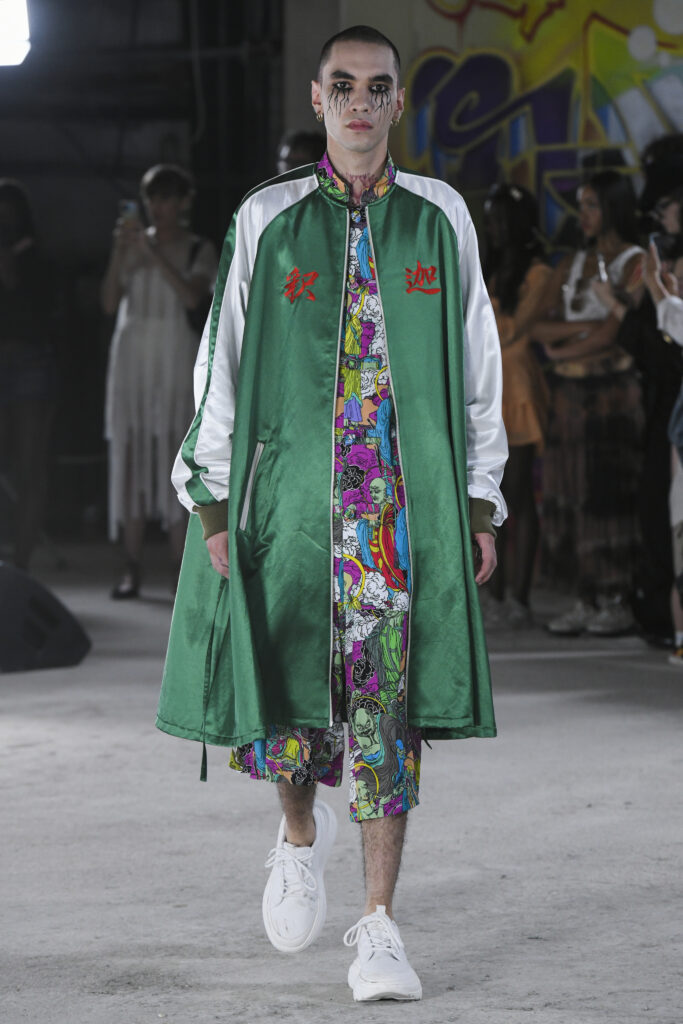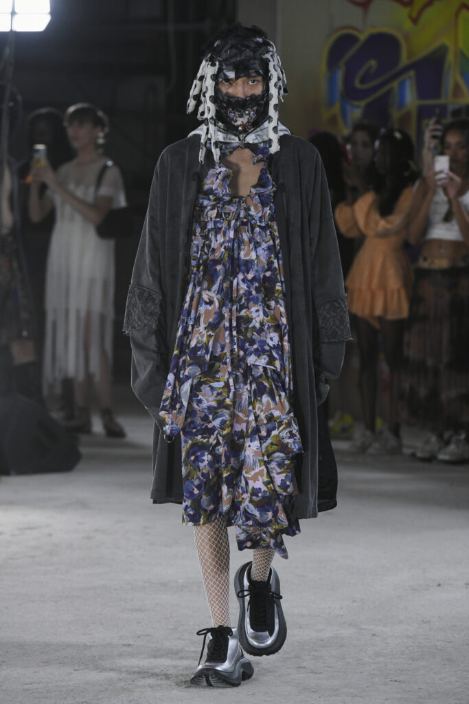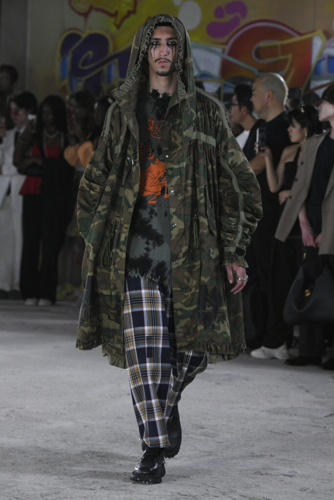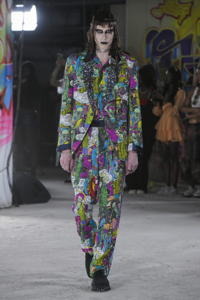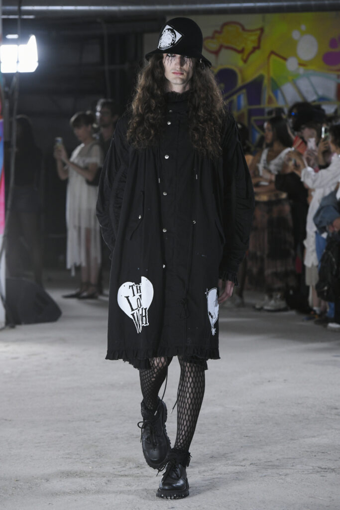 Les vestes oversize patchwork, les robes couture froissées et les pantalons déchirés composent un vestiaire instinctif, où percent la rage et la mélancolie. Les imprimés psychédéliques, le denim délavé et les franges apportent une touche punk décomplexée.
