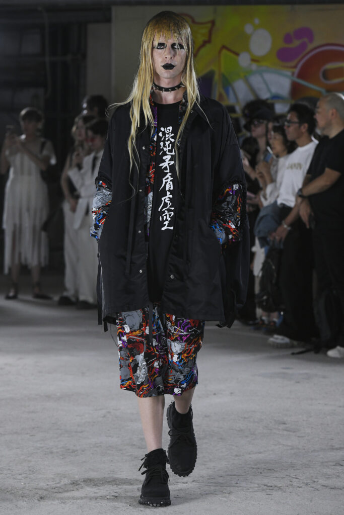 Le créateur japonais puise son inspiration dans les cultures underground, à l’image de la nouvelle scène hardcore londonienne. Son vestiaire anticonformiste se veut un pied de nez aux diktats de l’époque.