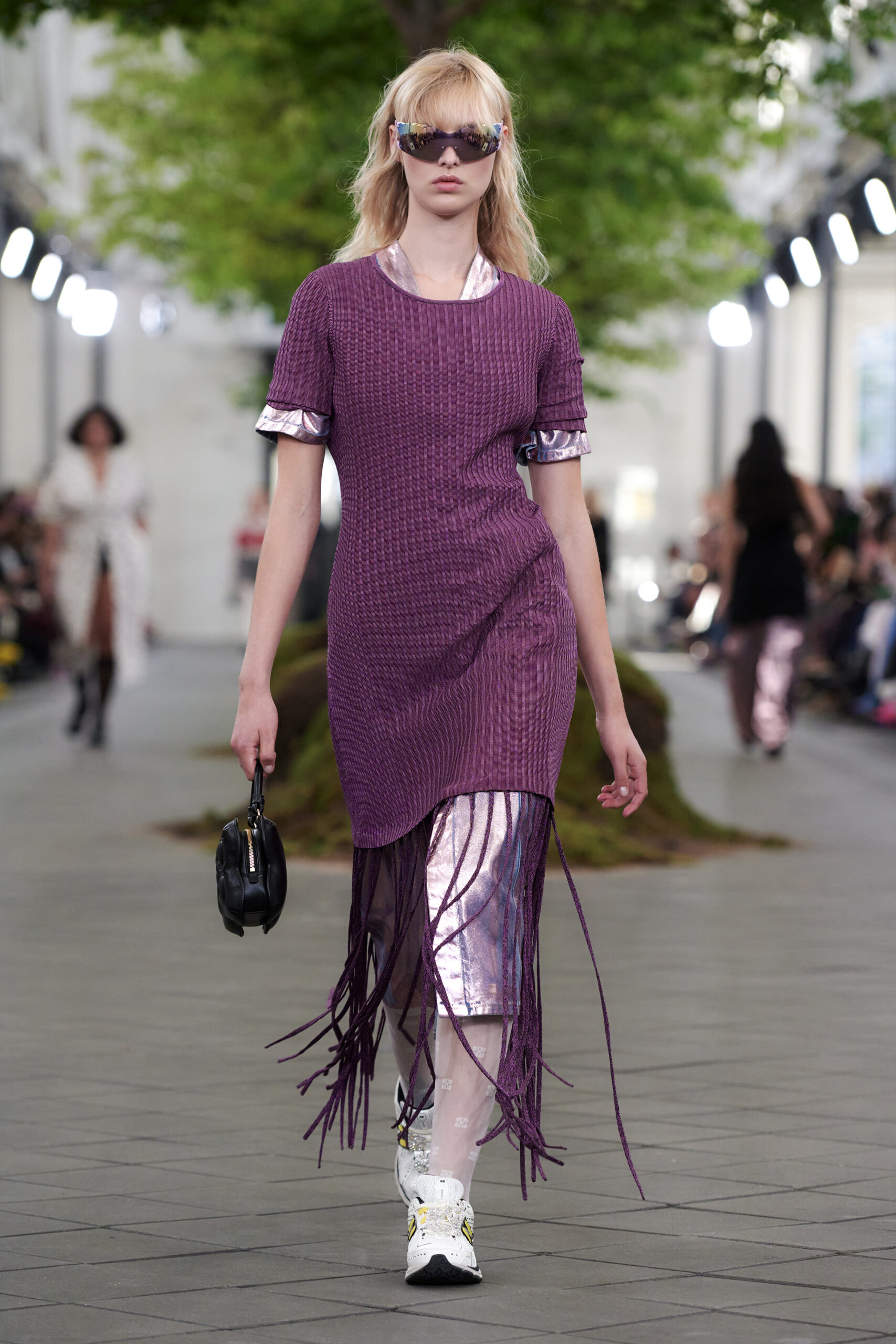 Ditte Reffstrup, Directrice Créative chez GANNI, souligne la dualité de cette collection : « Notre collection SS24 est un clin d’œil vers l’avenir. Ces lunettes, inspirées des films de science-fiction, en contraste avec une collection plus raffinée, symbolisent la fusion harmonieuse de l’audace et de l’élégance. » Une déclaration puissante qui résonne particulièrement chez les urbains passionnés de mode, en quête de pièces uniques, mais également soucieux de l’impact de leurs choix vestimentaires.