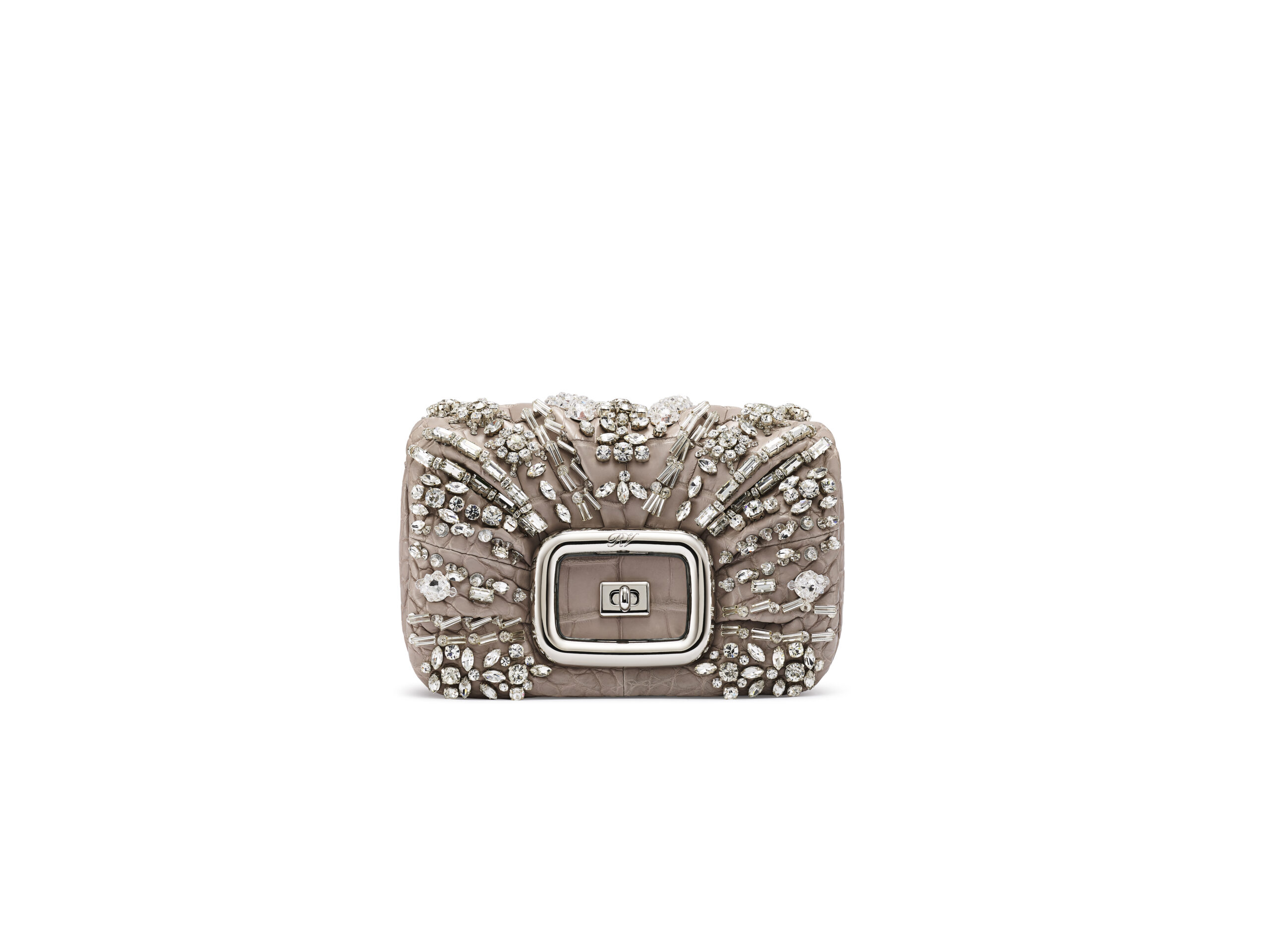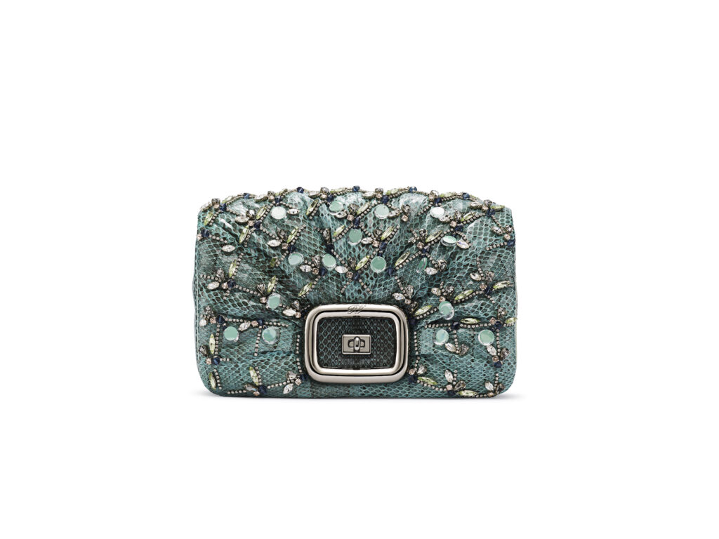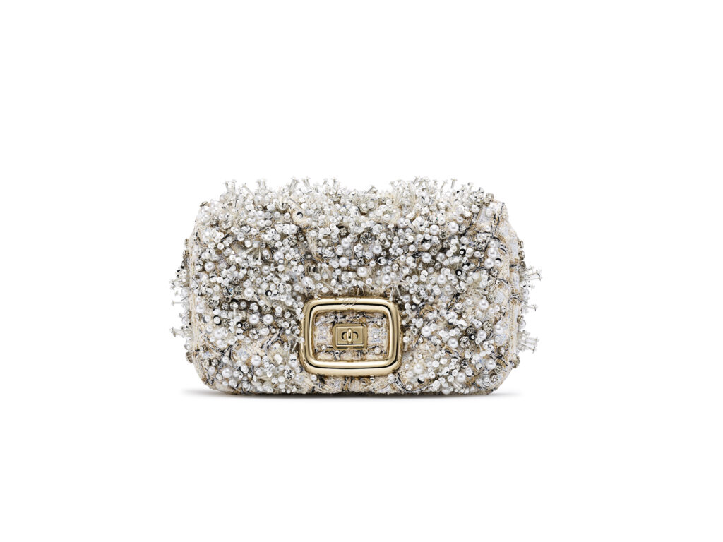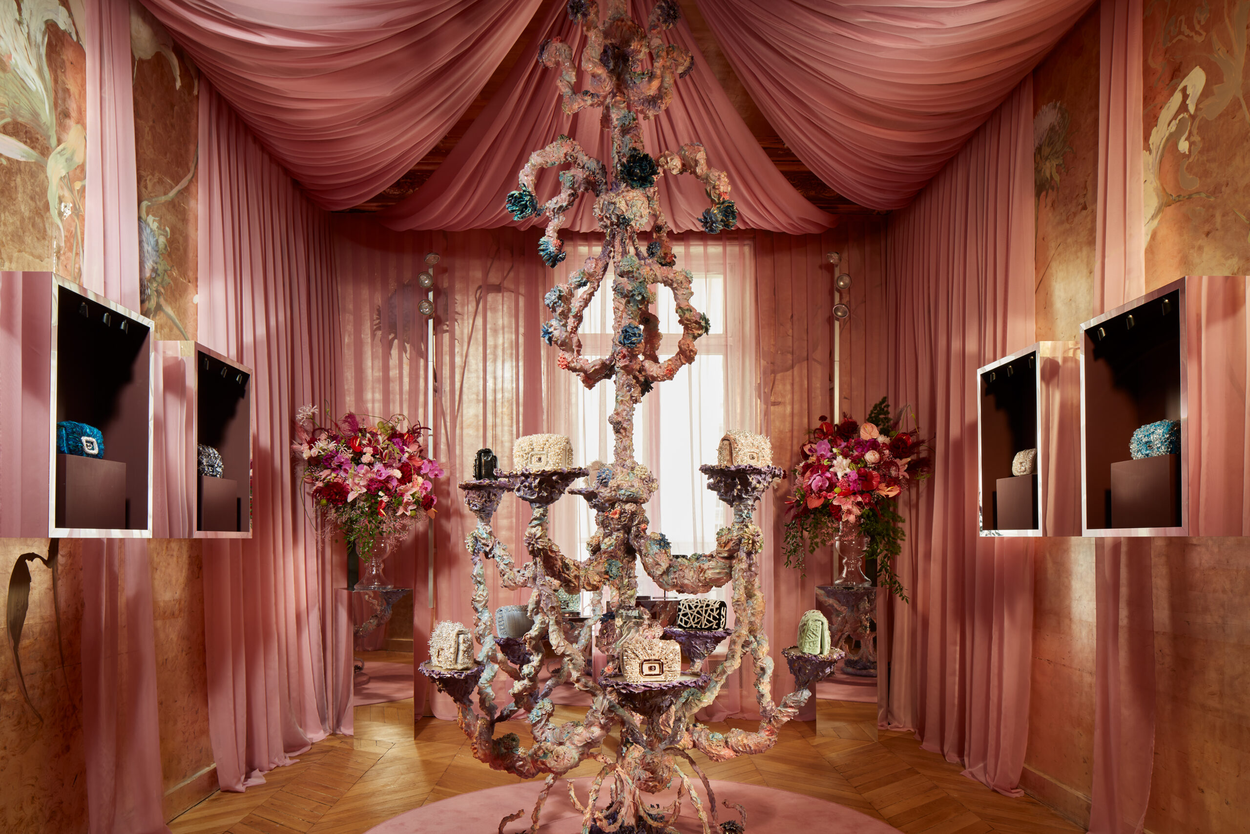 À l’occasion des collections de haute couture automne-hiver 2023 à Paris, la Maison Vivier offre à un public restreint une invitation à découvrir Viv’ Choc Pièce Unique. Cette collection rêveuse de sacs à main uniques, créée par le directeur créatif Gherardo Felloni, explore les sommets du savoir-faire français le plus aspirant. Chaque création, une délicate fantaisie de broderie et de textiles précieux, est exposée sur un magnifique lustre en céramique aux couleurs variées à l’intérieur de la Salle d’Argent de la Maison Vivier à Paris.