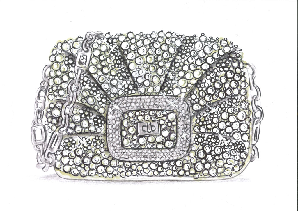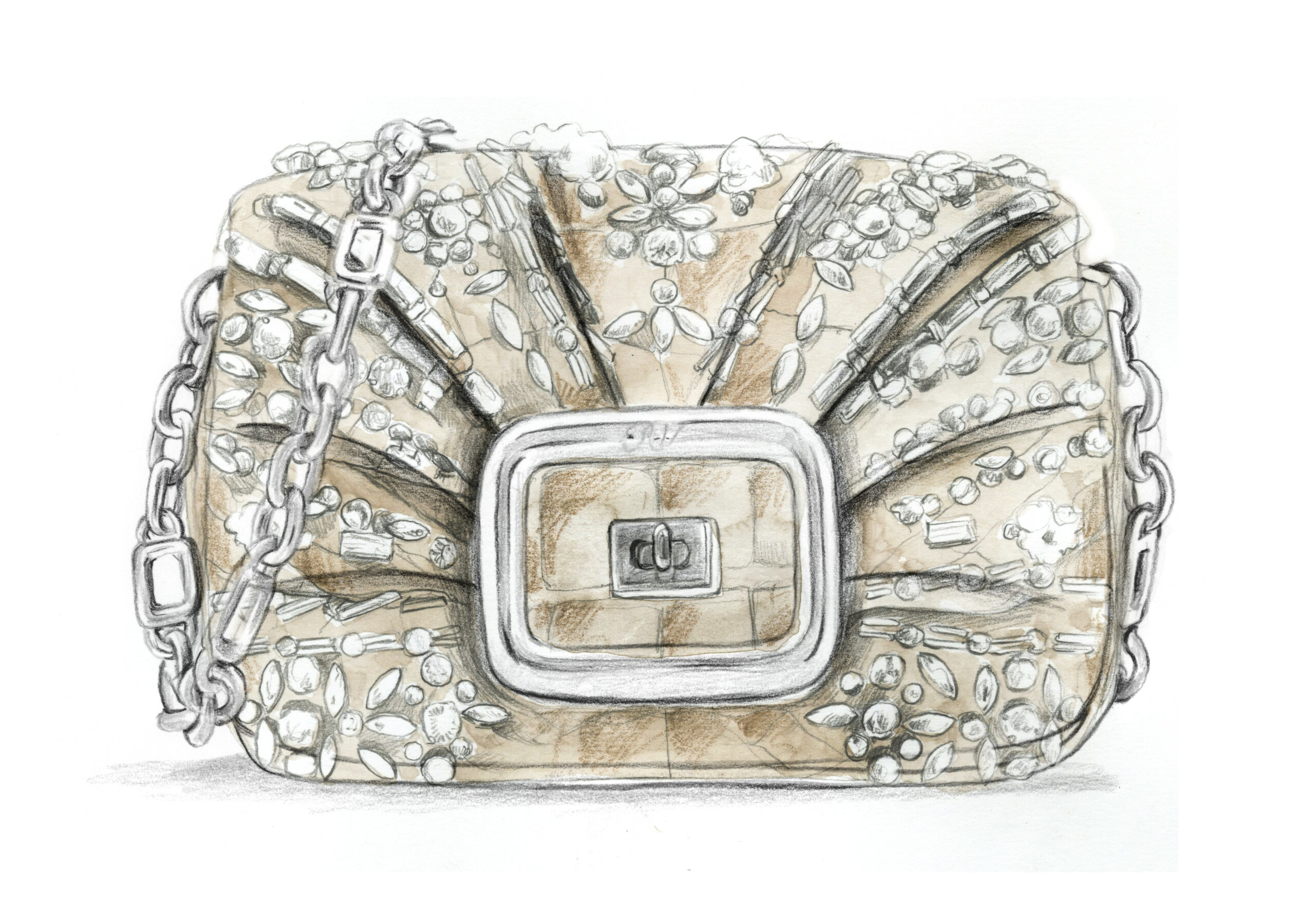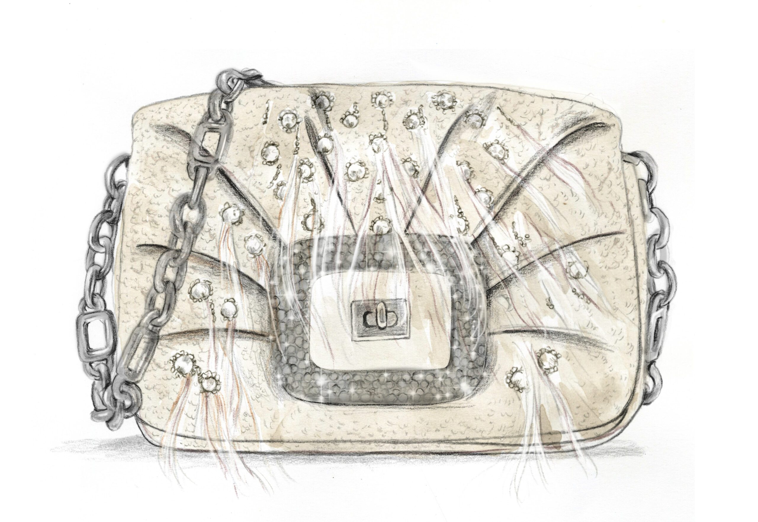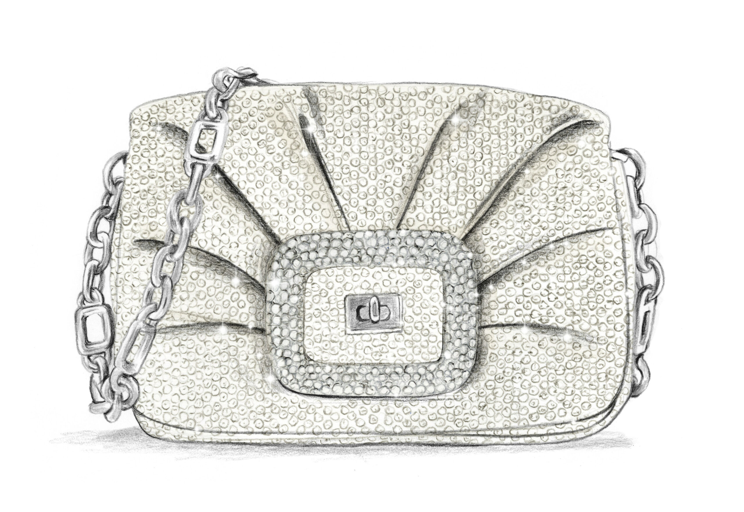 Des tons pastel poudrés allant de l’ivoire et du rose pâle aux velours jusqu’au serpent d’eau foncé et à l’alligator gris glacé, chaque objet d’art fabriqué à la main est une extravagante célébration du glamour parisien.