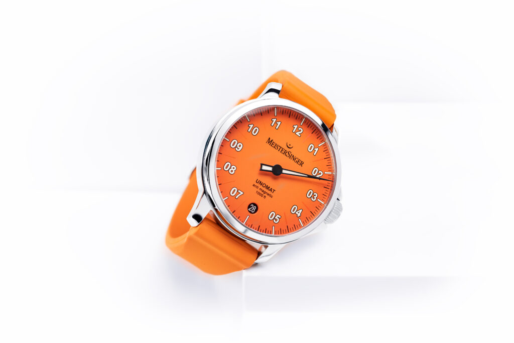 MeisterSinger, la maison horlogère allemande renommée pour ses montres mono-aiguilles, dévoile aujourd’hui une édition limitée de son modèle emblématique Unomat. Ce garde-temps automatique, récompensé par le prestigieux Red Dot Design Award, se pare désormais d’un orange éclatant, alliant audace et élégance.