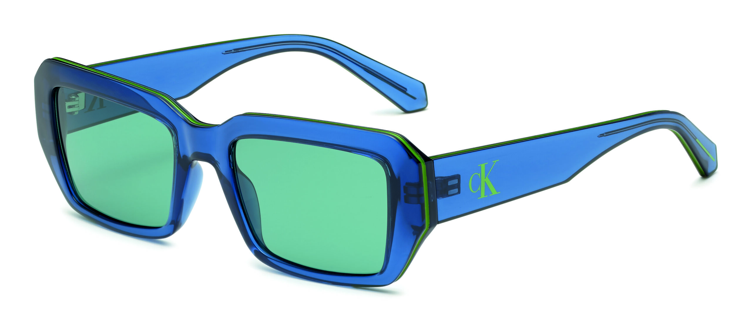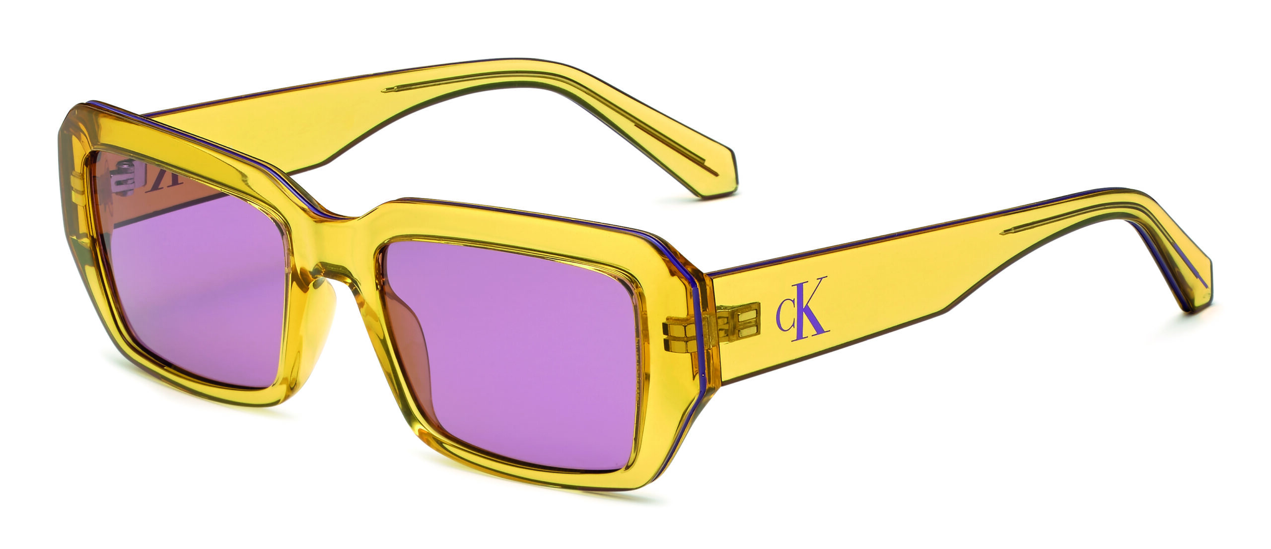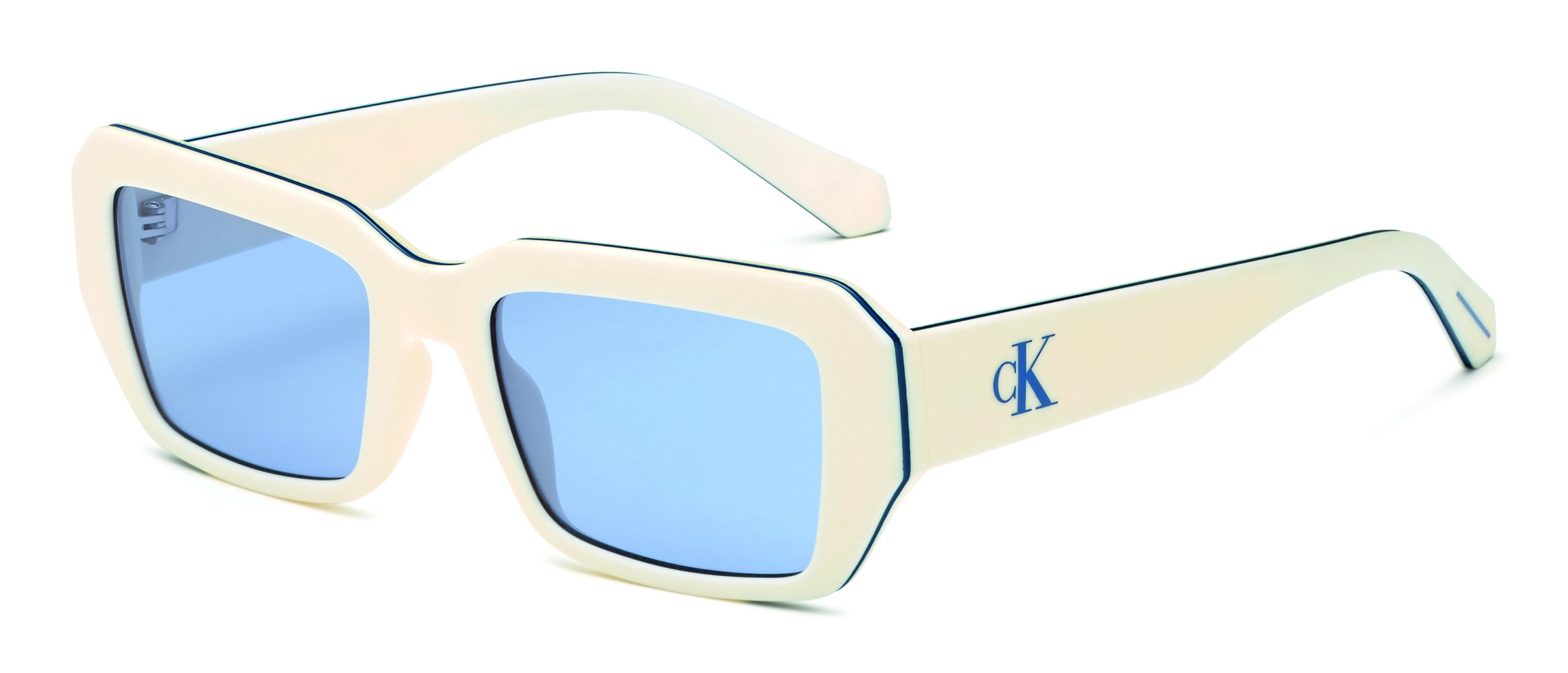 Le modèle CKJ23602S, avec ses solaires rectangulaires modifiées, évoque une nostalgie chic des années 70. Les détails colorés contrastants, le monogramme sur les branches et la ligne déco ajoutent une touche de modernité. Proposées en Transparent Yellow, Black, White, et Blue, ces lunettes sont le reflet d’un charme rétro réinventé.