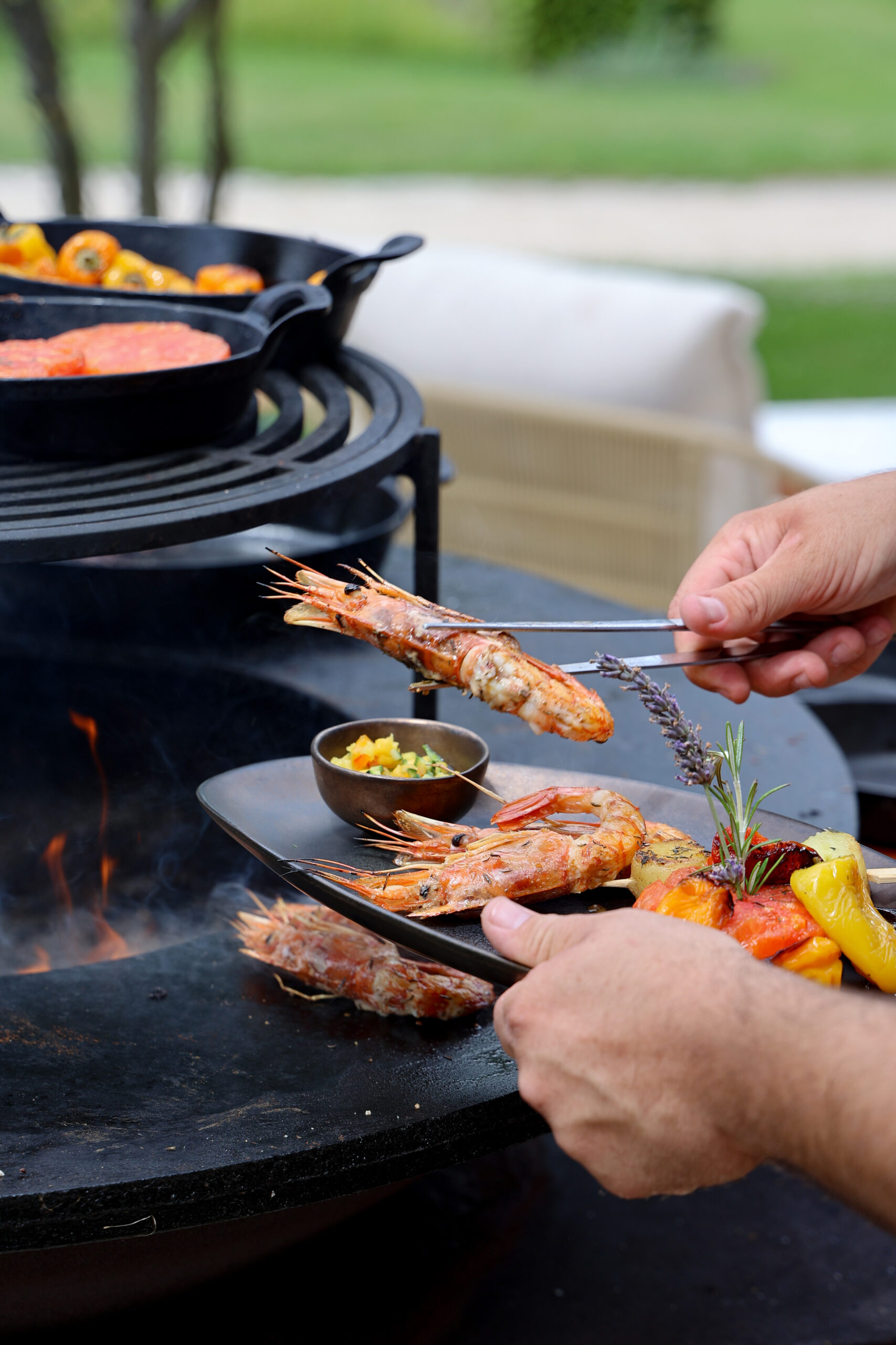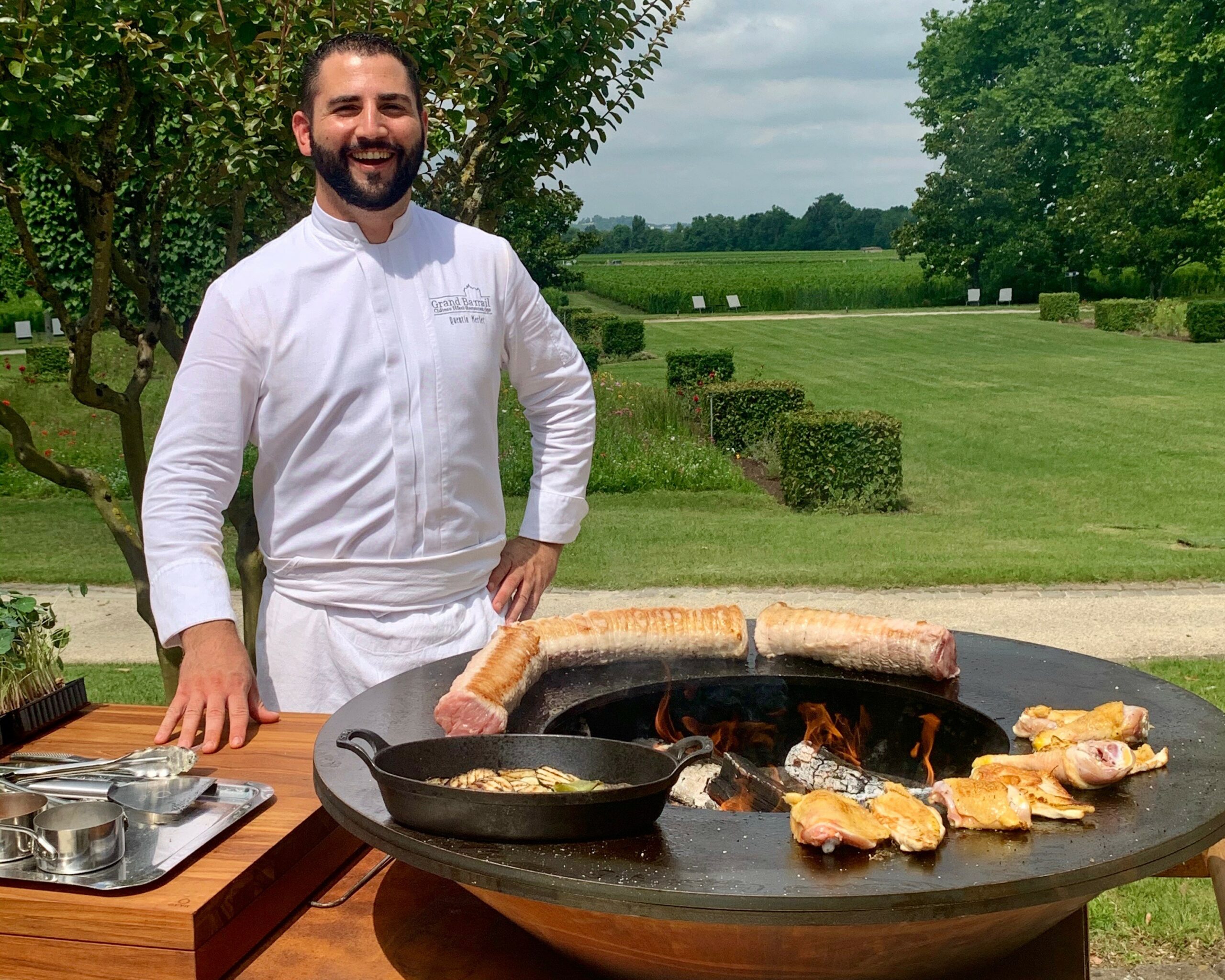 Les gourmets se réjouiront des grillades au brasero proposées par le Chef Quentin Merlet les vendredis, samedis et dimanches midi. Laissez-vous tenter par des viandes d’exception française, des poissons grillés ou des gambas, le tout accompagné de légumes de saison, dans un menu entrée-plat-dessert à 46€.