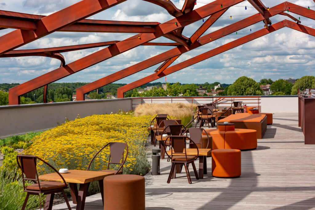 Si le Rooftop se distingue, c’est aussi grâce à son cadre exceptionnel. Au cœur de Cognac, l’établissement allie patrimoine et modernité. L’architecte Didier Poignant a su magnifier ce lieu, évoquant l’histoire riche de Cognac tout en y apportant une touche d’élégance contemporaine.