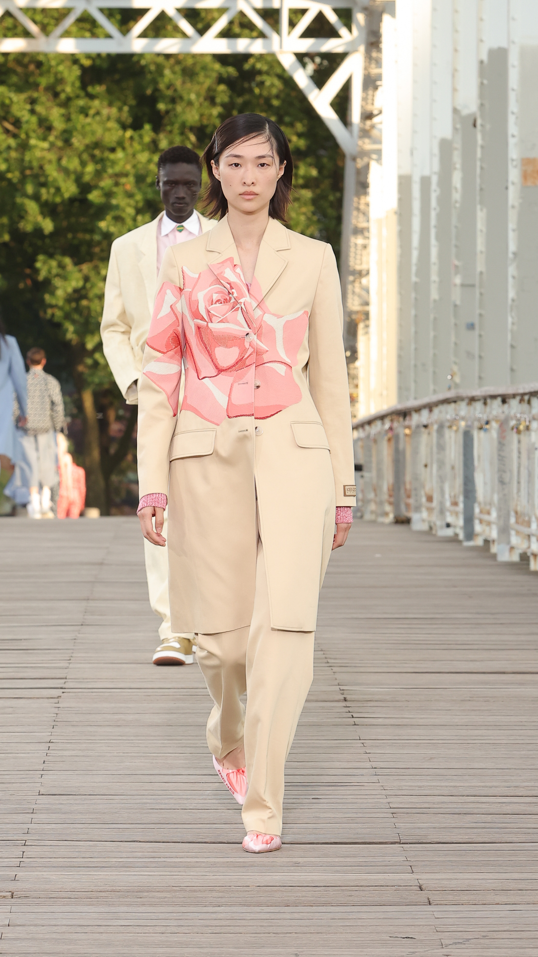 Pour le printemps-été 2024, le directeur artistique Nigo poursuit son dialogue créatif entre l’héritage de Kenzo Takada et sa vision contemporaine. Présentée sur la passerelle Debilly à Paris, cette collection femme et homme réinterprète les codes de la maison Kenzo dans un vestiaire moderne, à la croisée de l’Orient et de l’Occident.