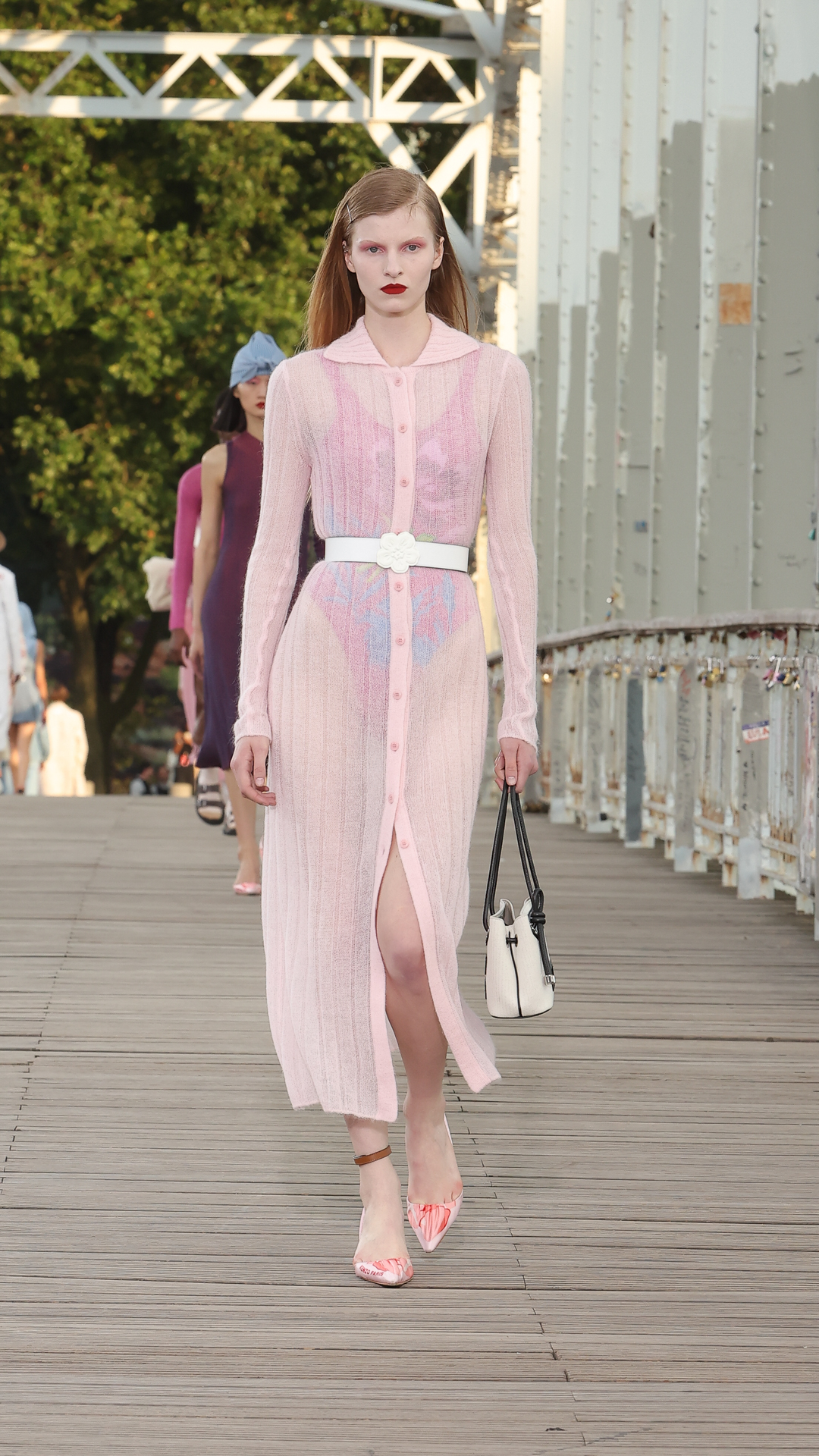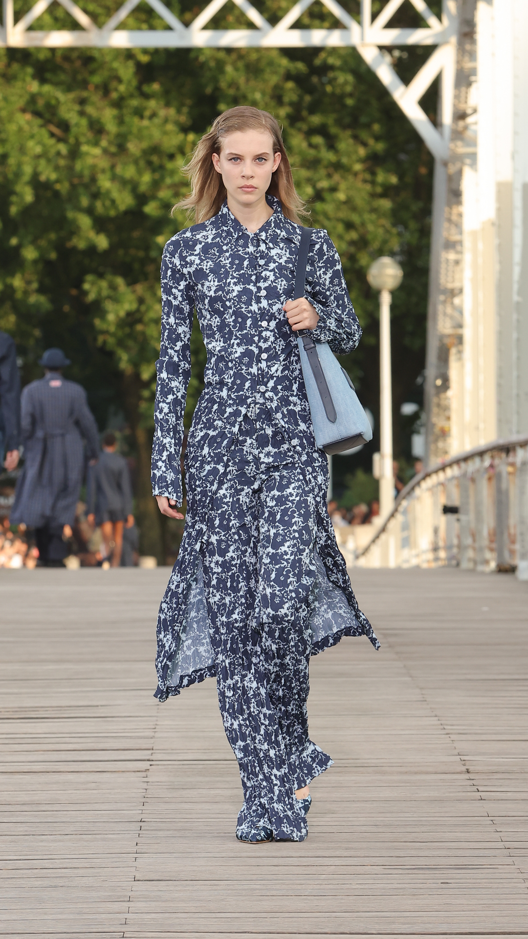 Cette proposition printemps-été 2024 conserve l’ADN sportswear de Kenzo tout en y insufflant une élégance de nouvelle génération. Les silhouettes féminines se parent de superpositions aériennes et de robes longues gracieuses.