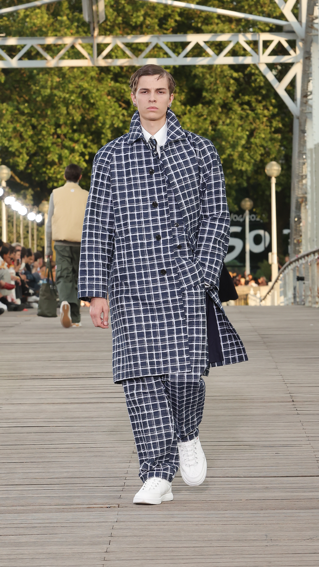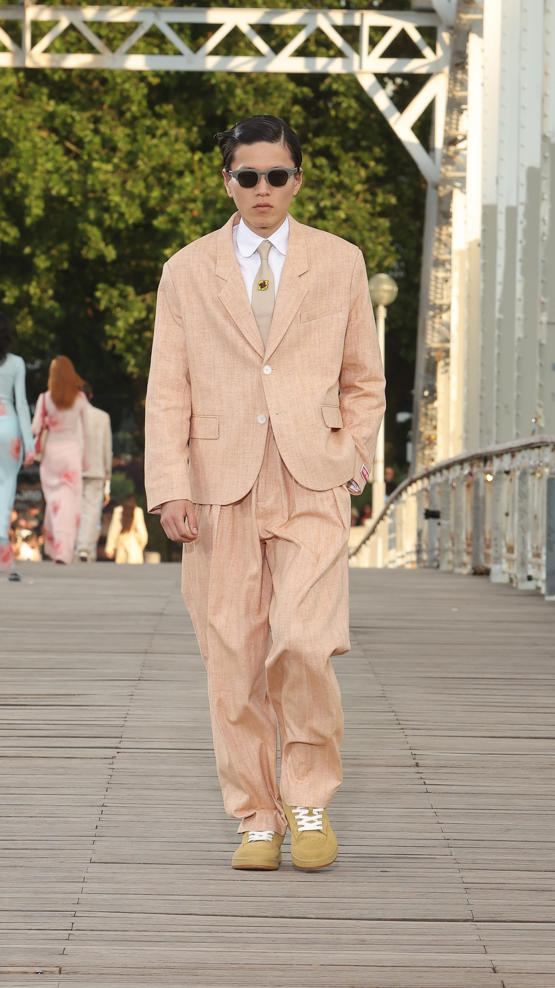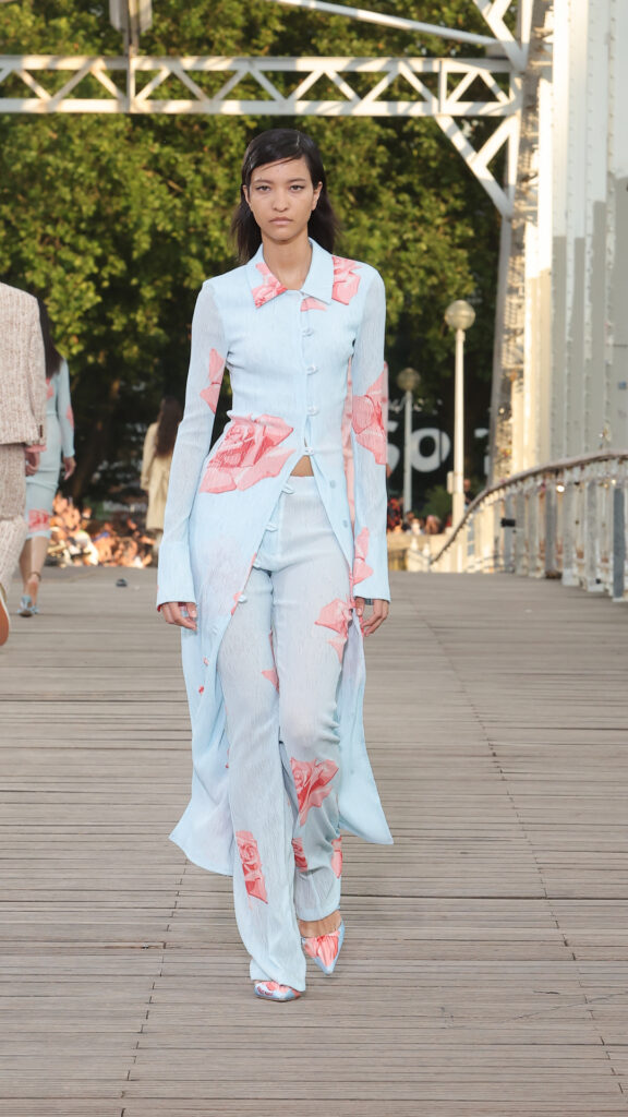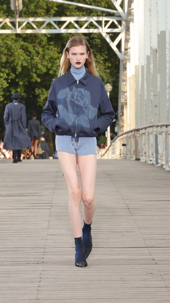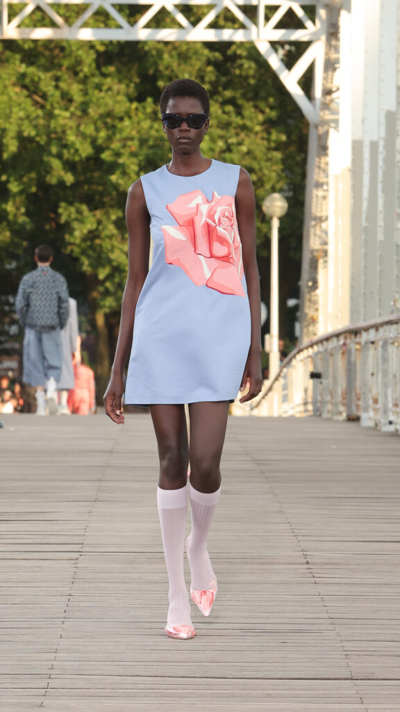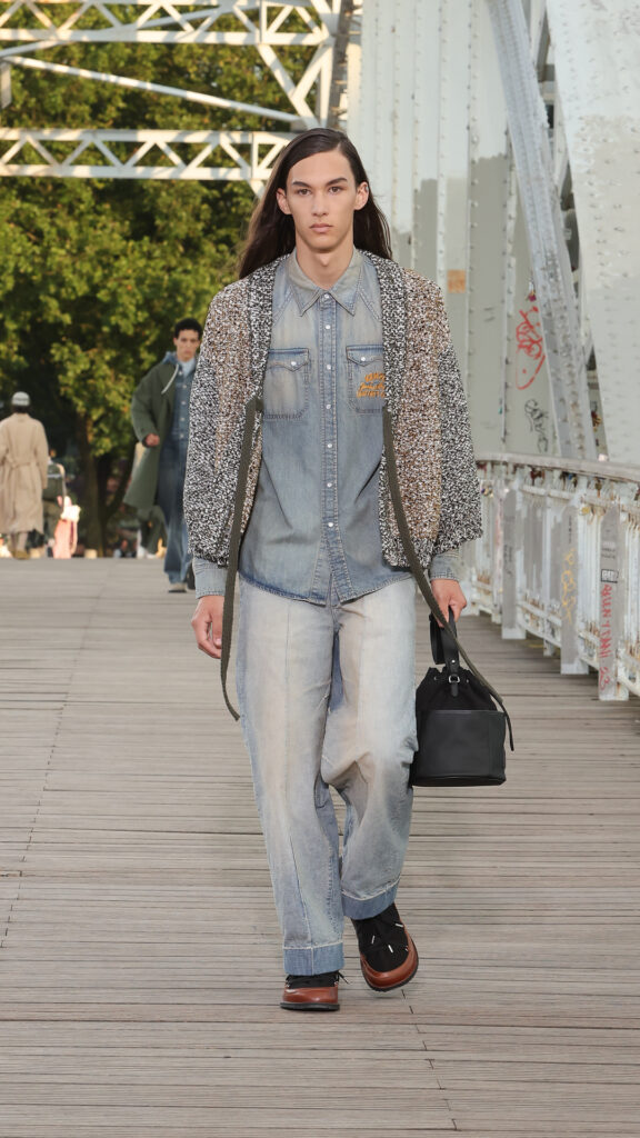 Cette collection printemps-été 2024 s’inscrit dans l’air du temps de la City Pop, courant musical des années 80 au Japon, mêlant pop, funk et boogie. La bande-son du défilé, conçue par le musicien Cornelius, s’en inspire pour un show rythmé et feel good.