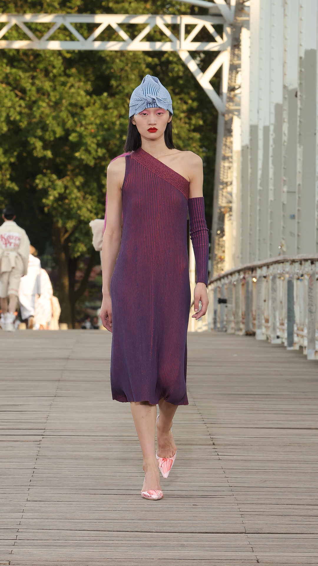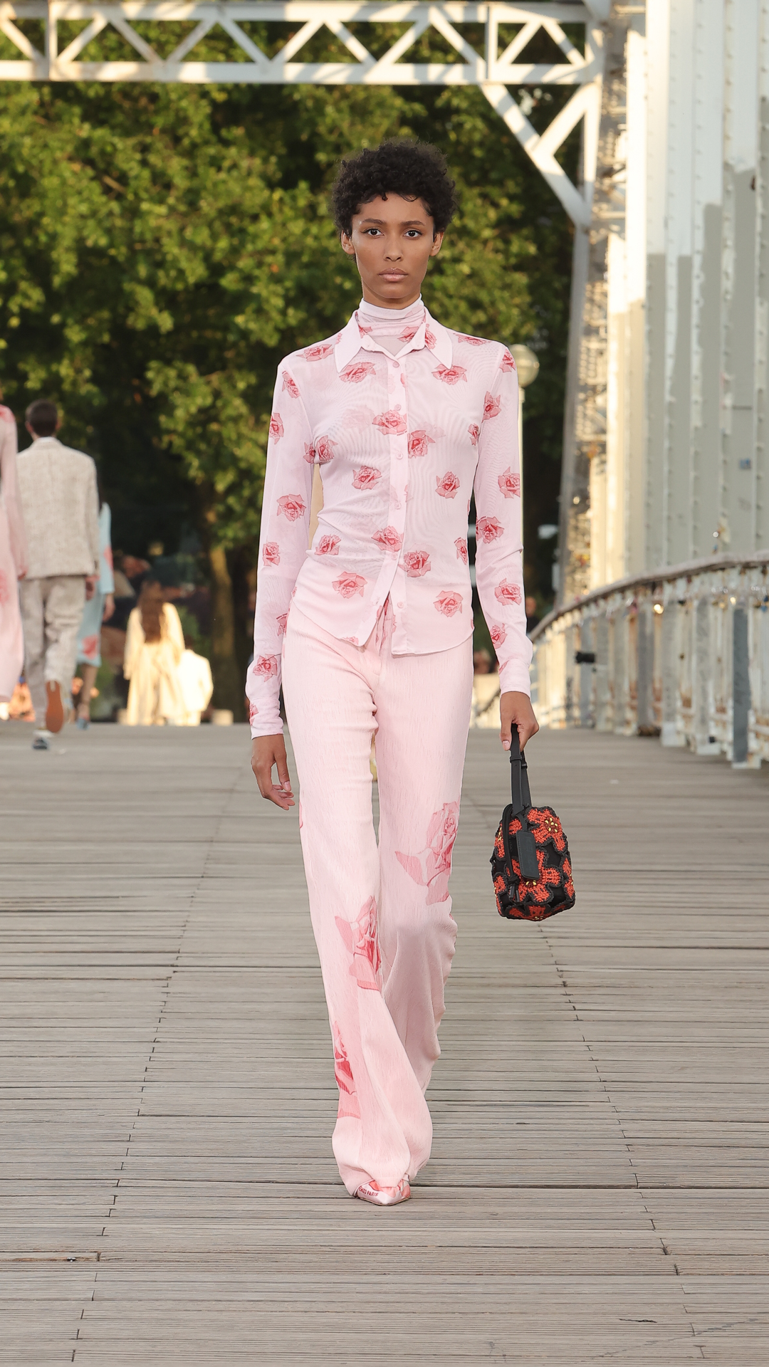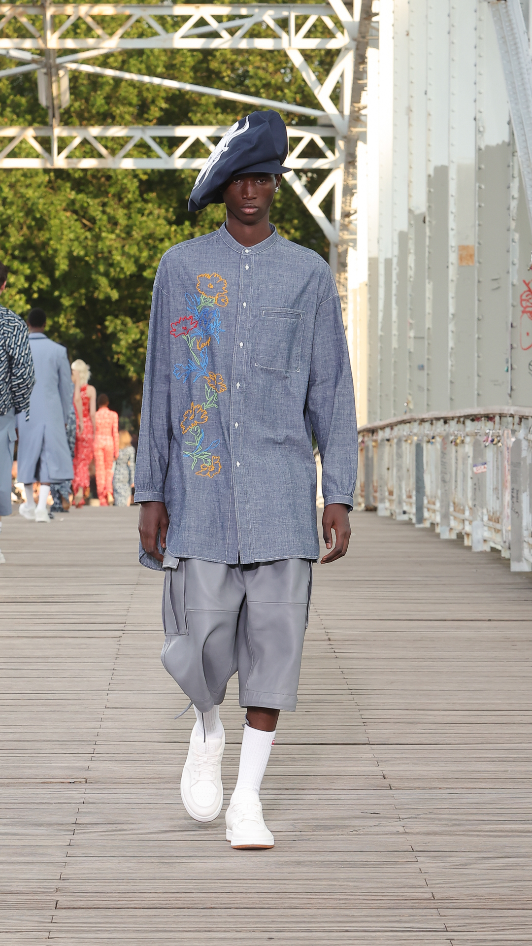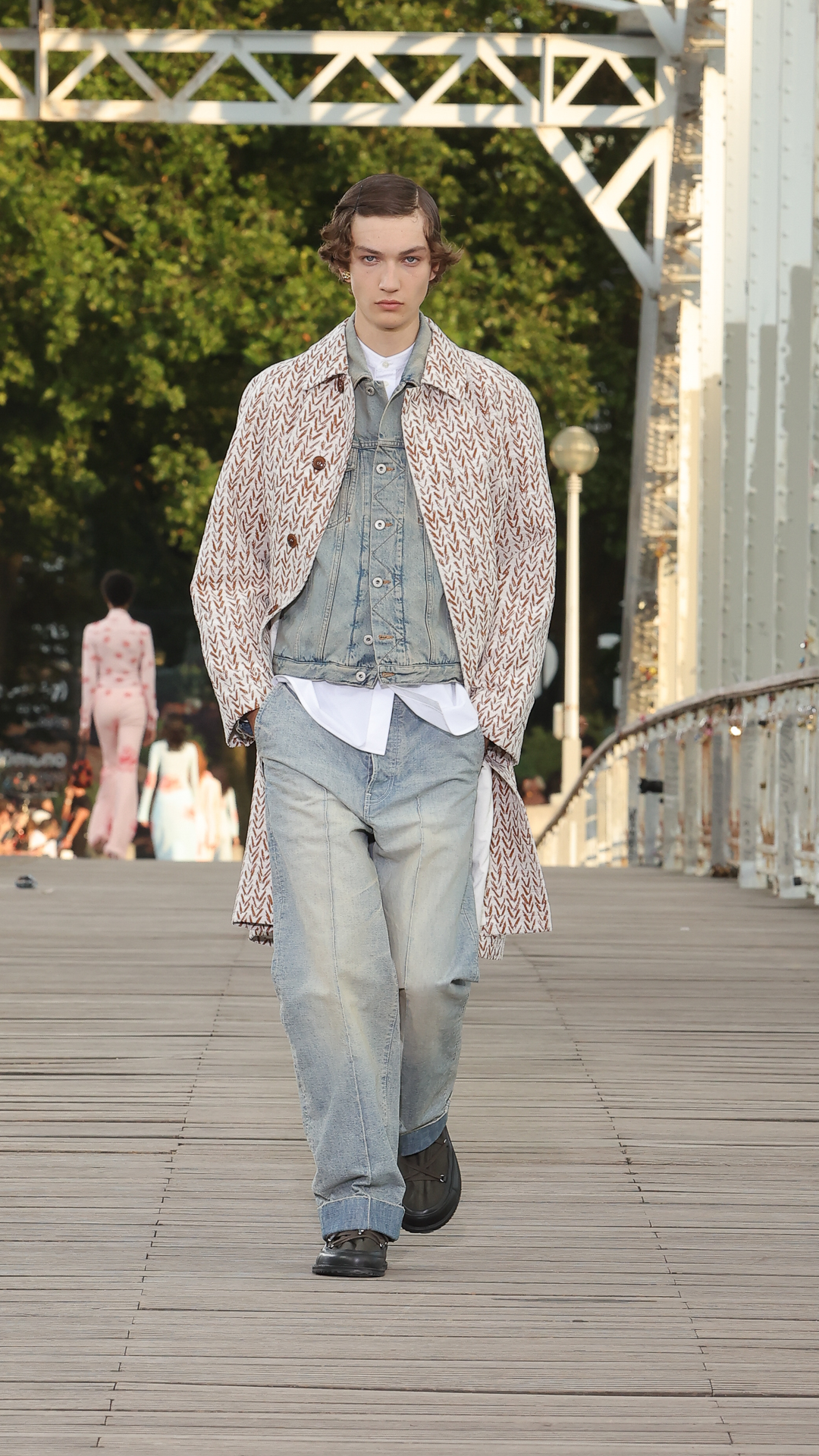 Cette collection printemps-été 2024 s’inscrit dans l’air du temps de la City Pop, courant musical des années 80 au Japon, mêlant pop, funk et boogie. La bande-son du défilé, conçue par le musicien Cornelius, s’en inspire pour un show rythmé et feel good.