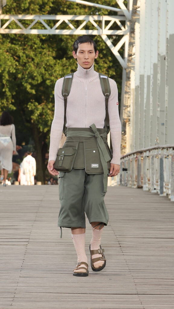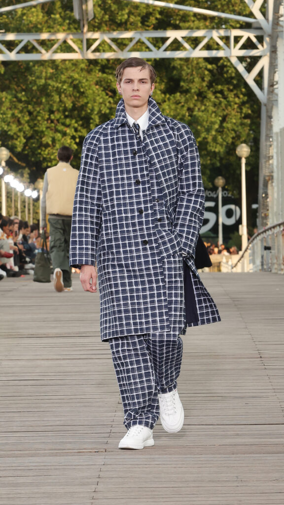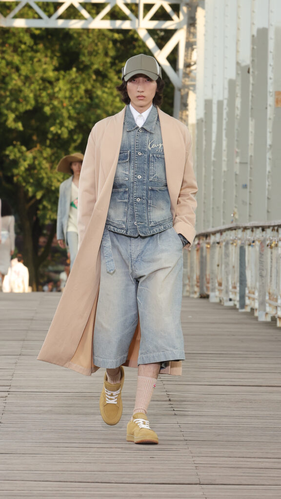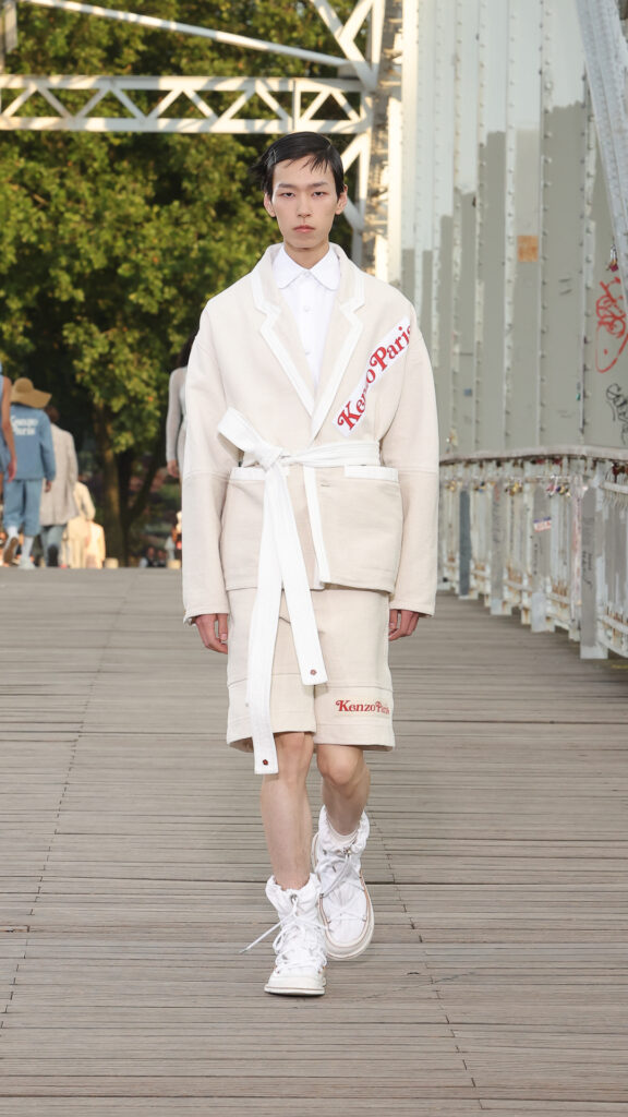 Du côté masculin, les manteaux kimonos côtoient les vestes de judo revisitées en blousons de travail. Les costumes décontractés se teintent de nuances pop. L’allure se veut à la fois décontractée et raffinée.