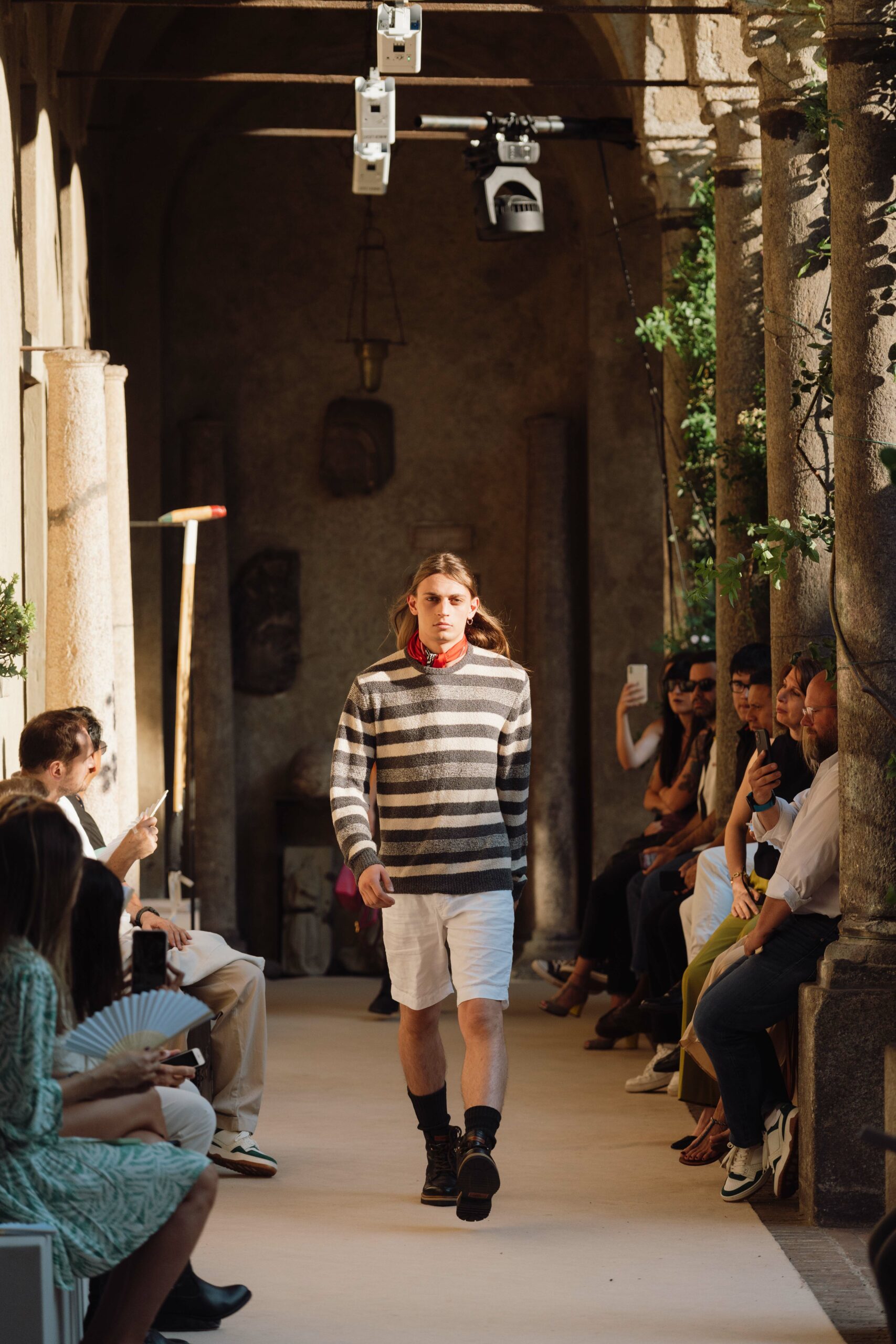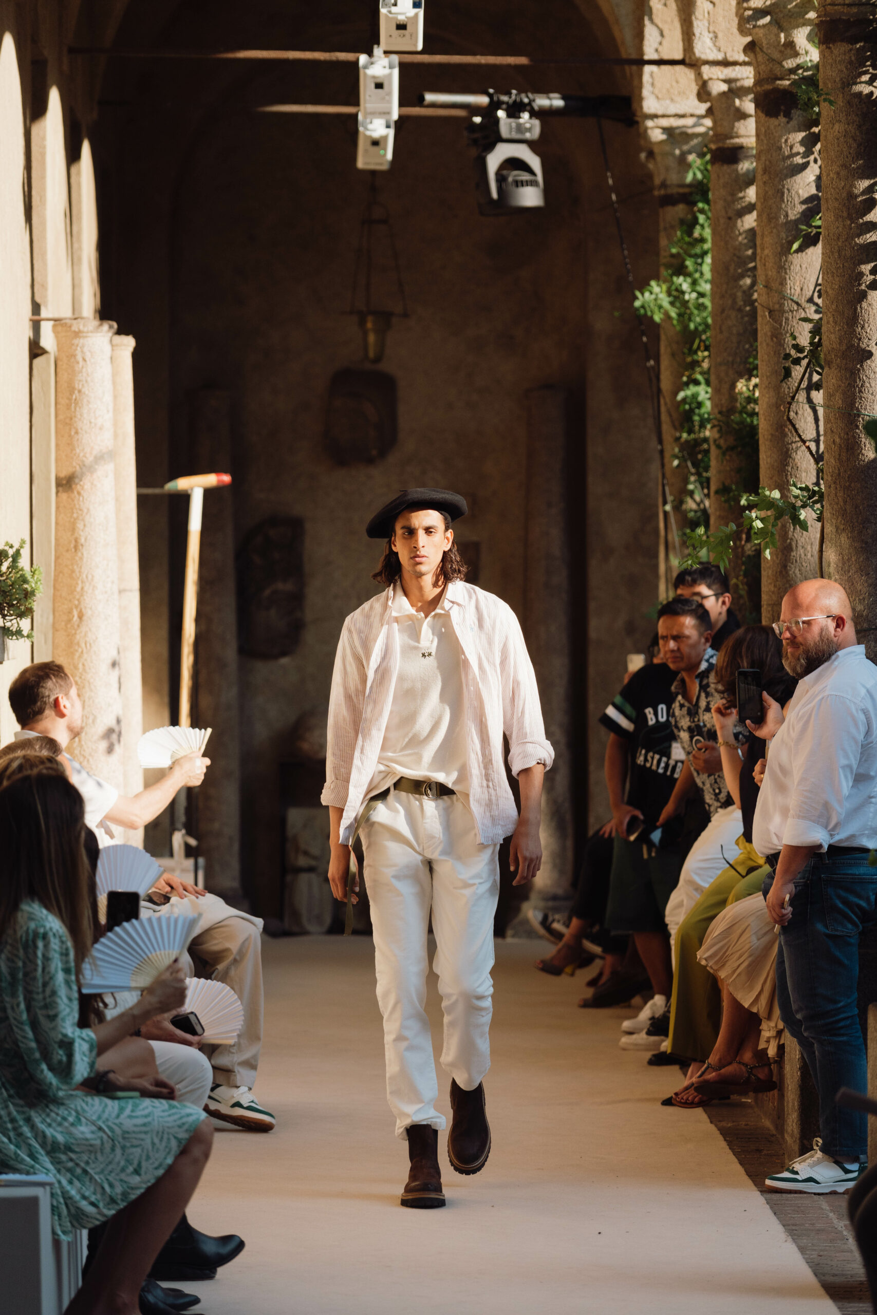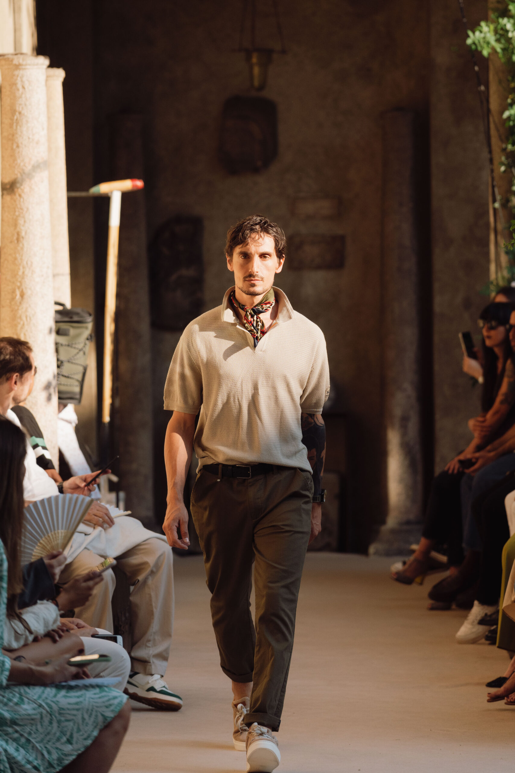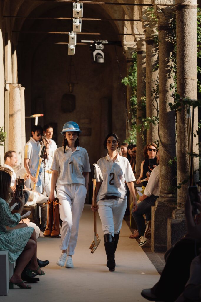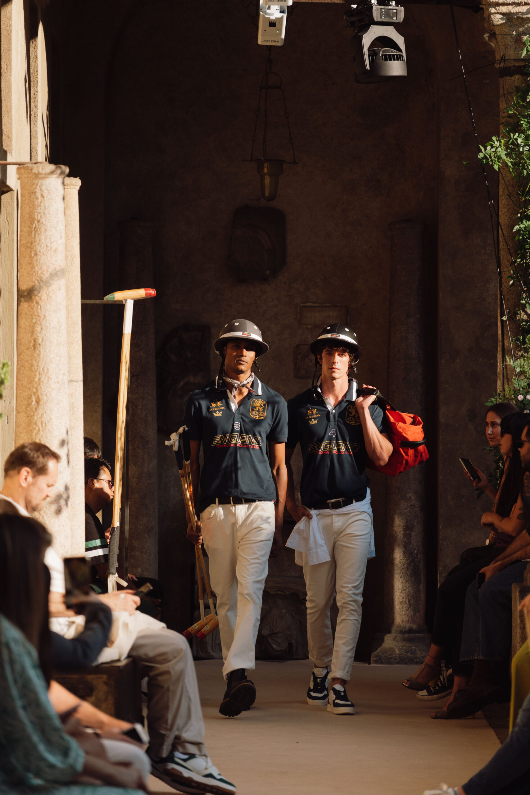 Le défilé s’est déroulé au Chiostro Cappuccio, un lieu secret de Milan, créant une atmosphère mystique qui résonnait parfaitement avec la ligne créative de La Martina. Il s’agissait d’une véritable célébration de l’ancien et du nouveau, incarnant la richesse de l’héritage de la marque et sa vision futuriste.