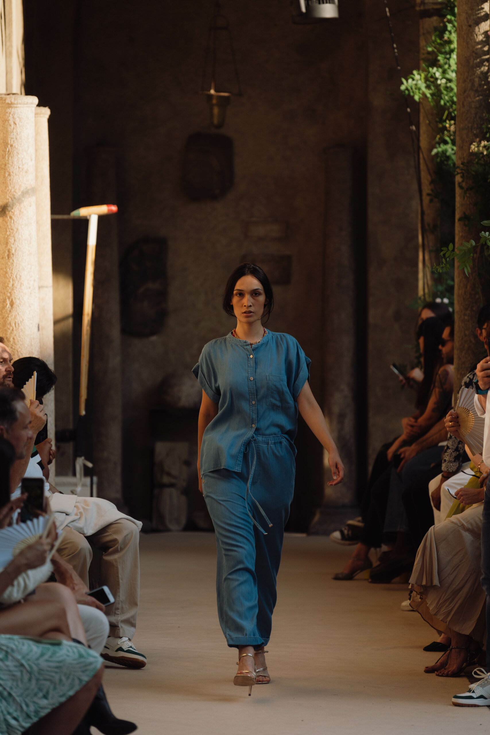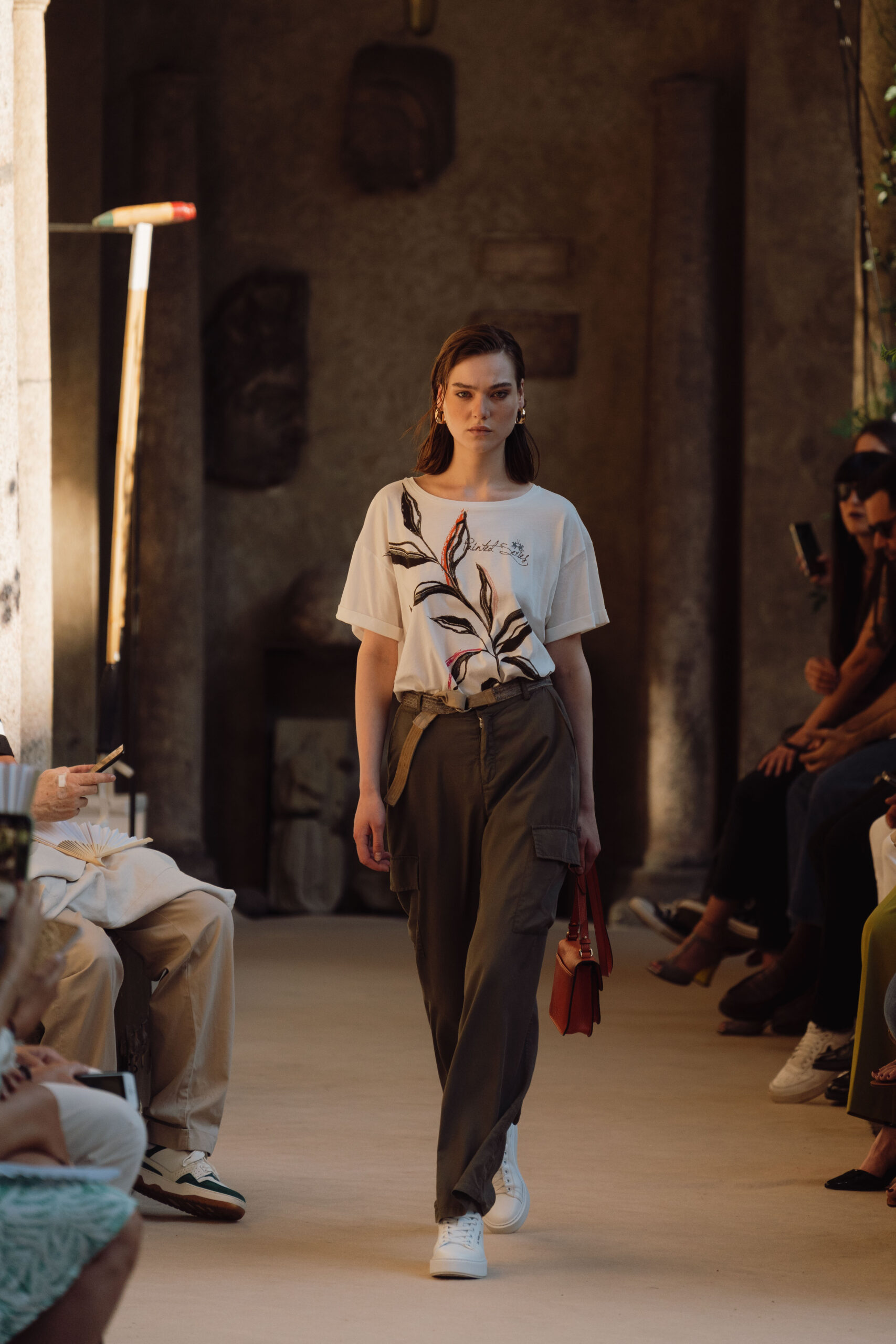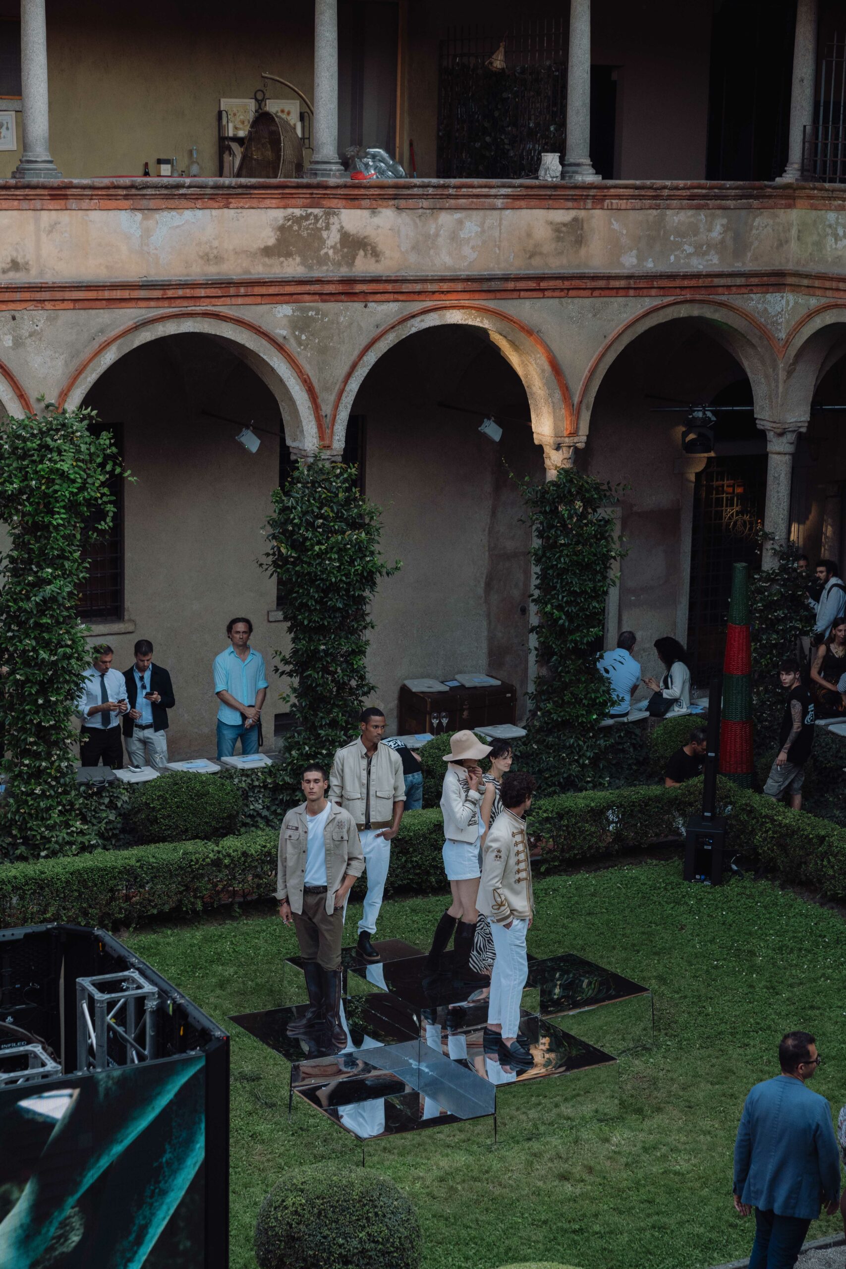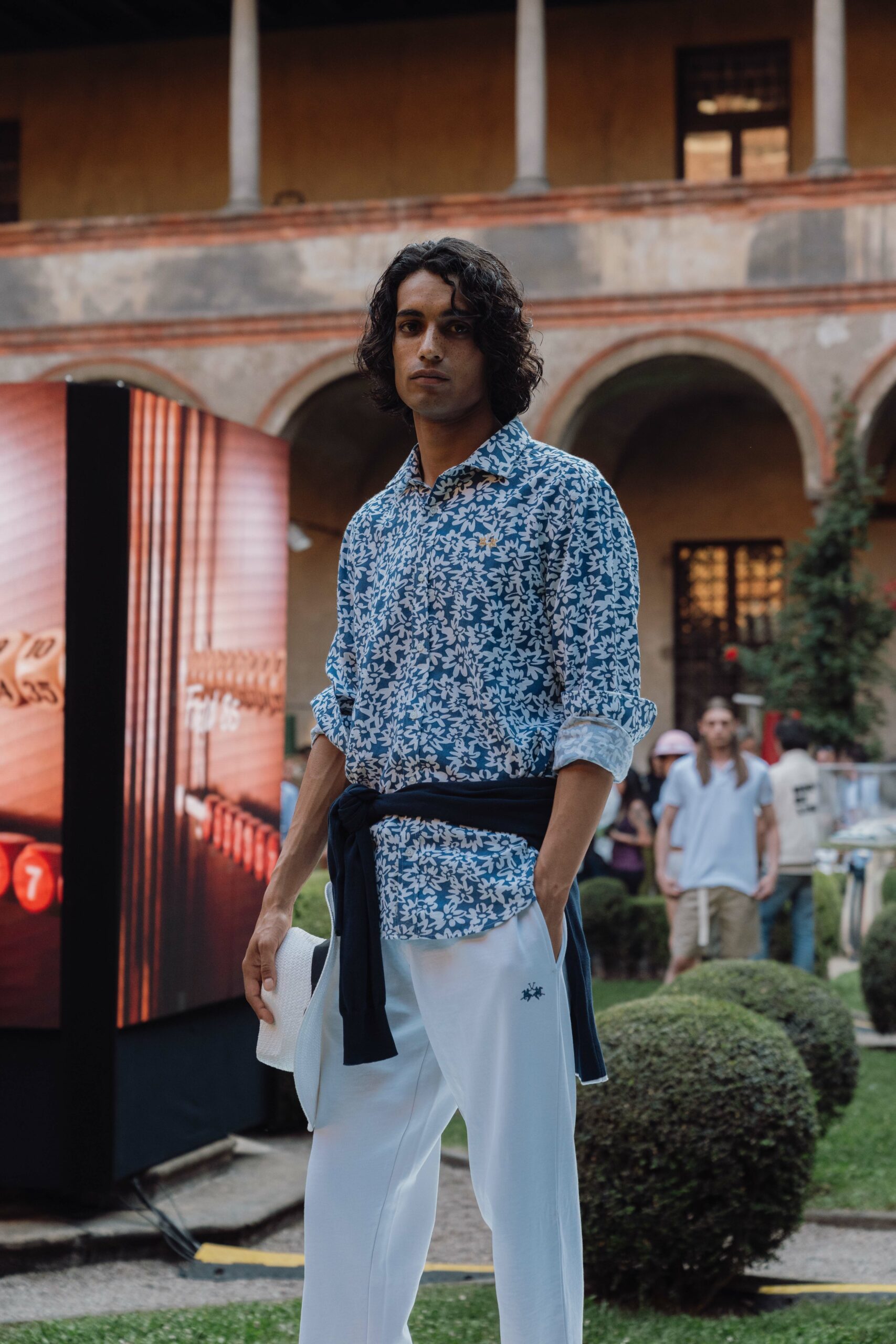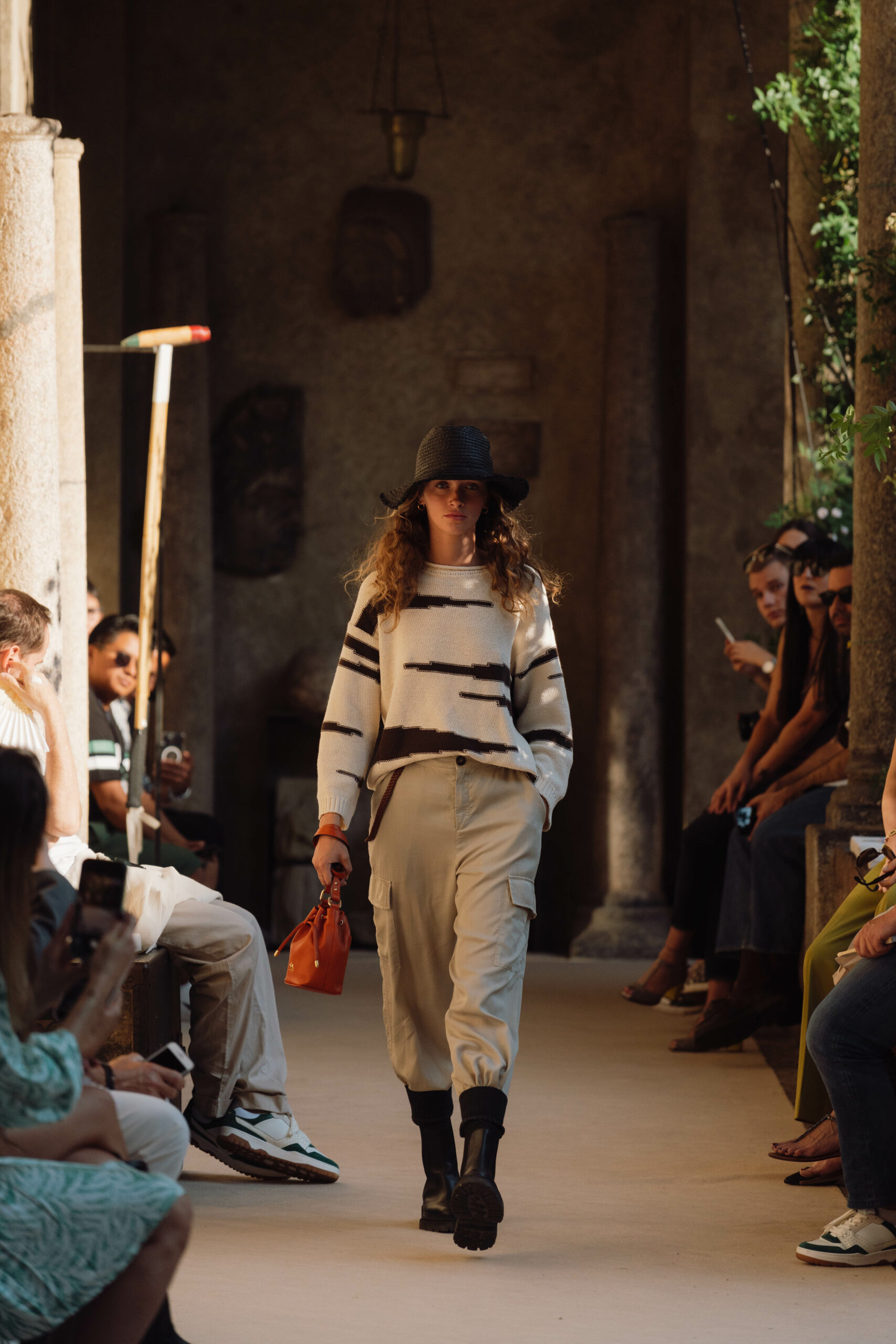 Le défilé s’est déroulé au Chiostro Cappuccio, un lieu secret de Milan, créant une atmosphère mystique qui résonnait parfaitement avec la ligne créative de La Martina. Il s’agissait d’une véritable célébration de l’ancien et du nouveau, incarnant la richesse de l’héritage de la marque et sa vision futuriste.