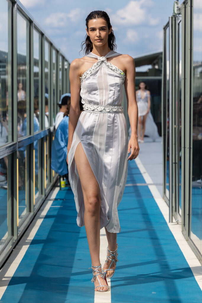 La collection Printemps-Été 2024 vient créer une passerelle, liant l’aisance du vêtement décontracté et le prestige de la couture. Elle incarne un virage pour KOCHÉ, une vision plus apaisée de la mode, plus douce, plus sensuelle, pour le jour et la nuit.