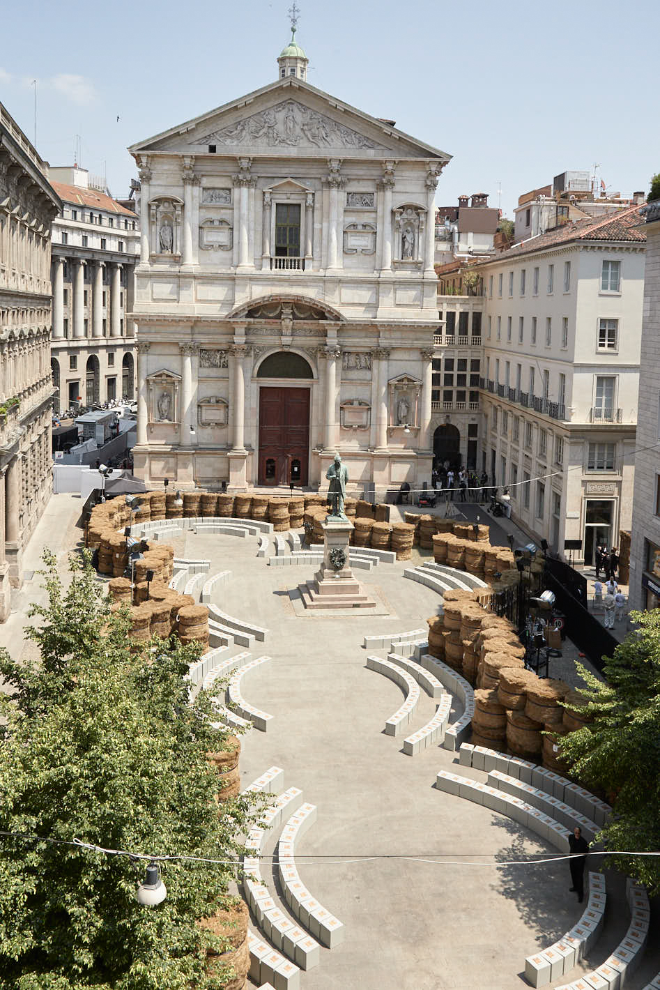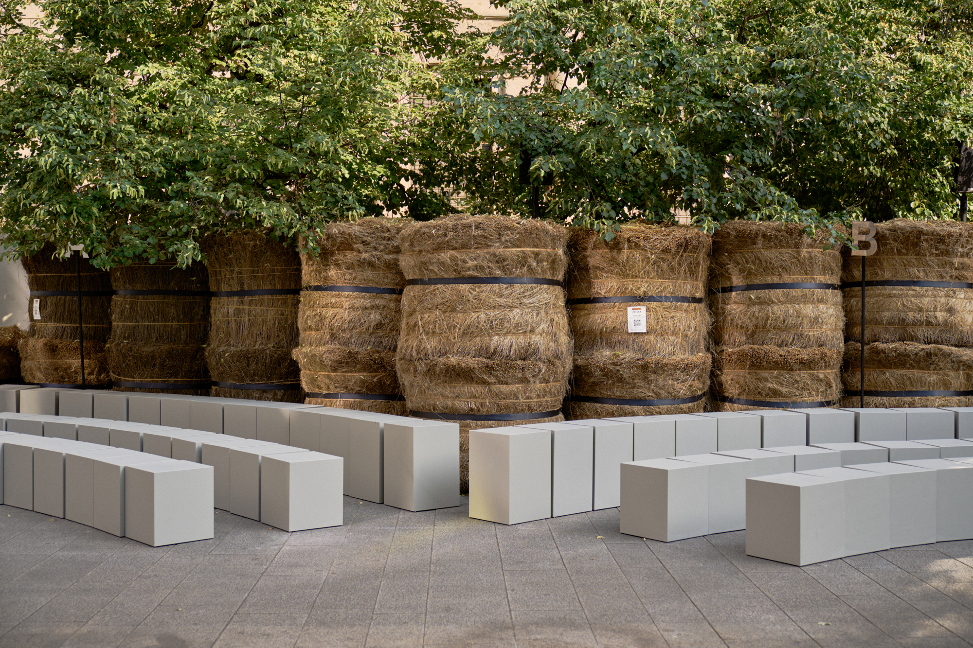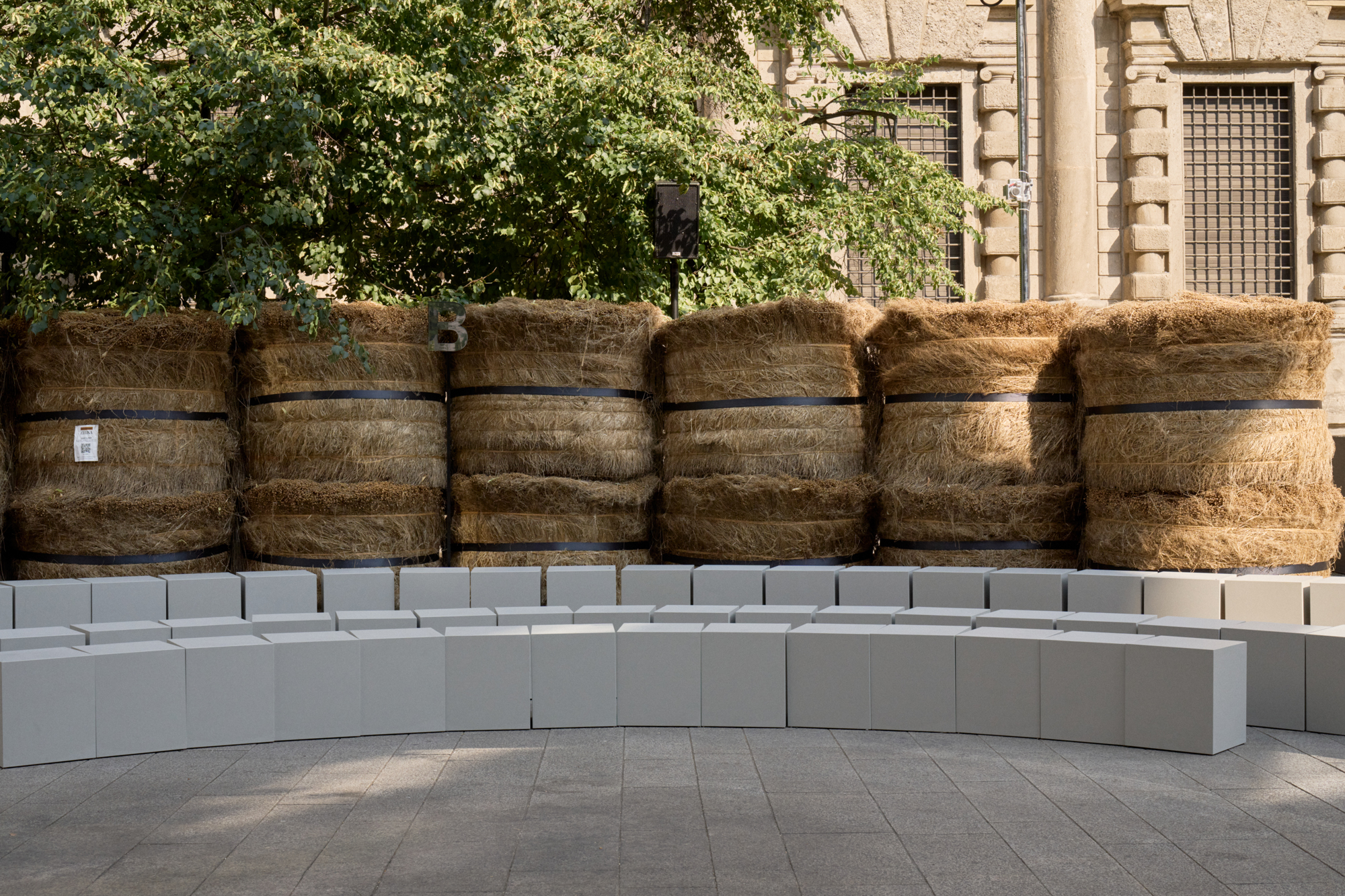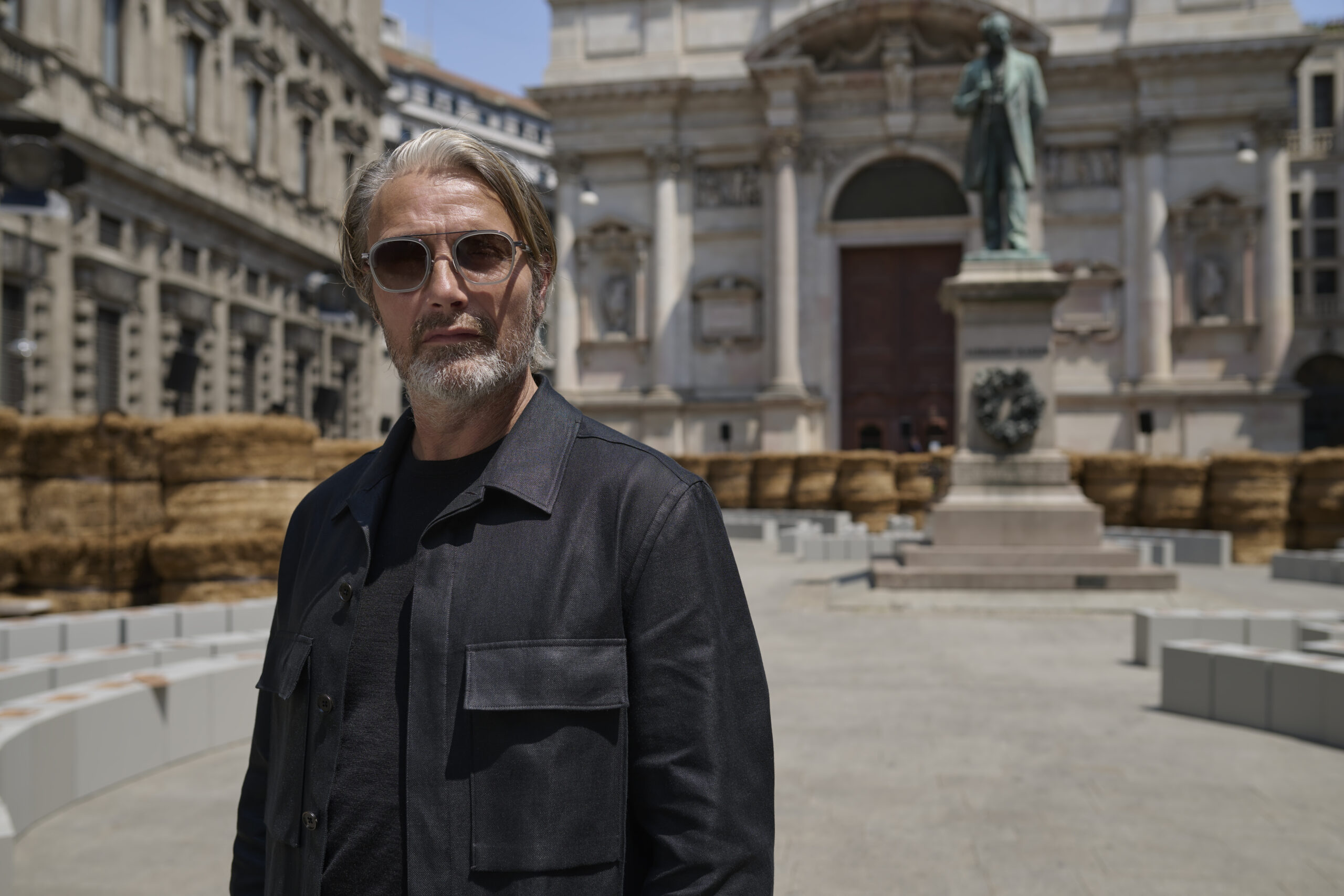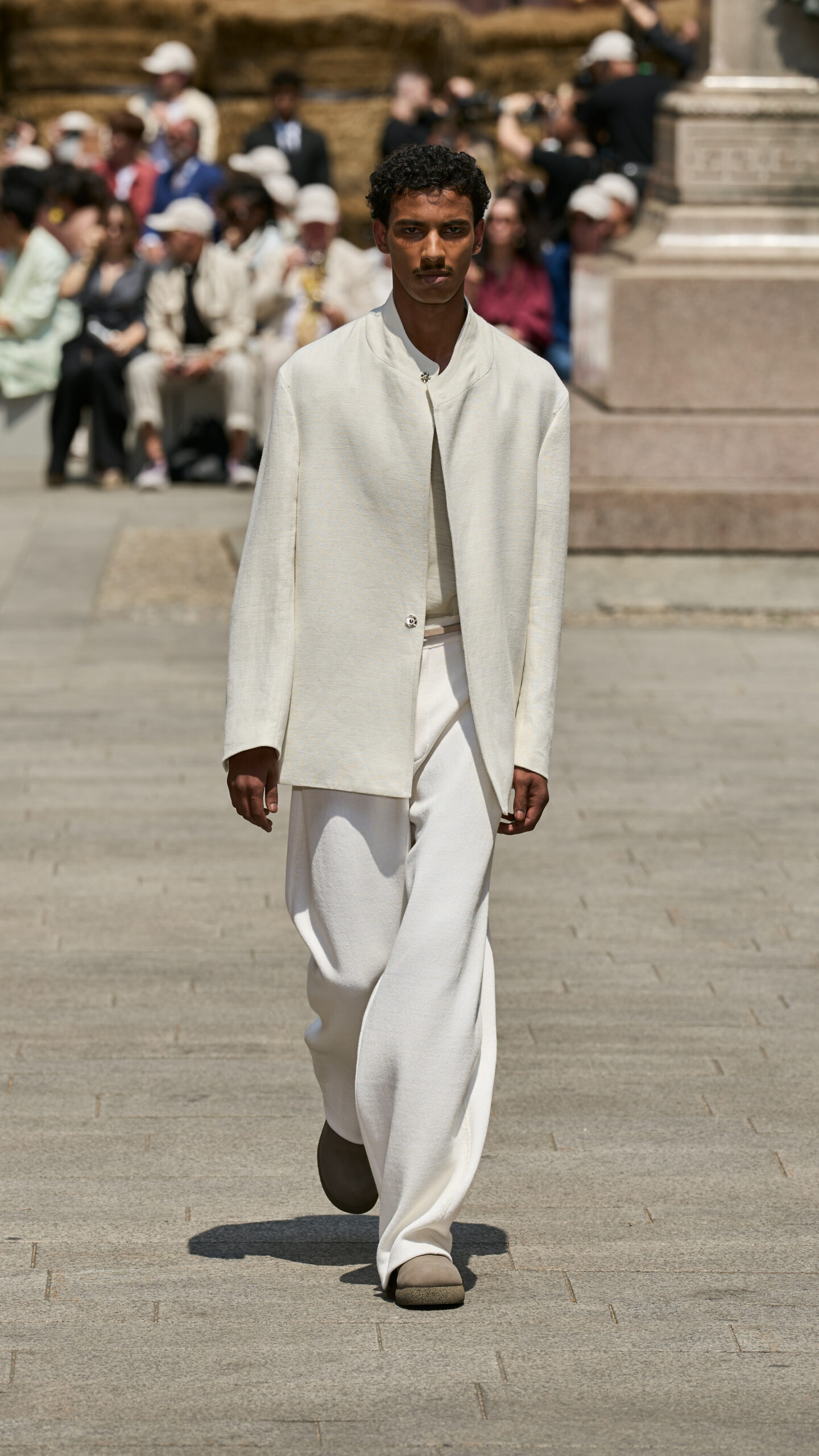 As the revolving center and the ever-evolving mindset that collects and activates everything ZEGNA stands for, Oasi Zegna represents a quest for excellence and beauty with a responsible commitment that is not static. It travels, in fact: across space and craft, near and far. The Fashion Show today introduces an oasis in Milan, among 192 bales of raw linen that occupy a square in the centre of Milano, on a backdrop of historic buildings, in broad daylight.. The bales have been transported from Normandy, where flax is grown with its blue flowers that bloom for just a single day brief moment in early summer and will re-enter the production chain once the show is over, to be crafted in Italy into Oasi Lino. The dream of nature in a metropolitan context, and the circular values it conveys, becomes tangible. ZEGNA commits to certifying Oasi Lino fibres as 100% traceable by 2024.