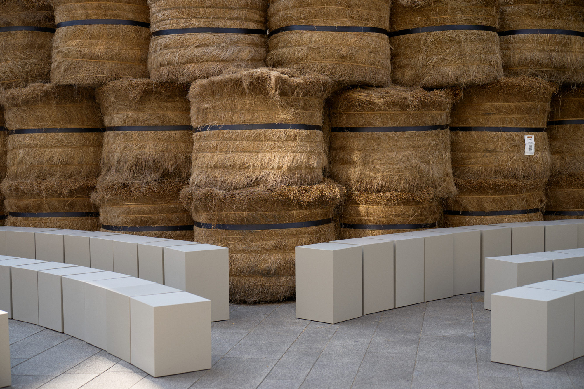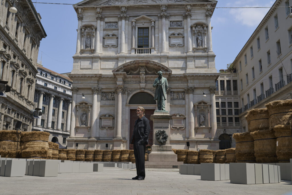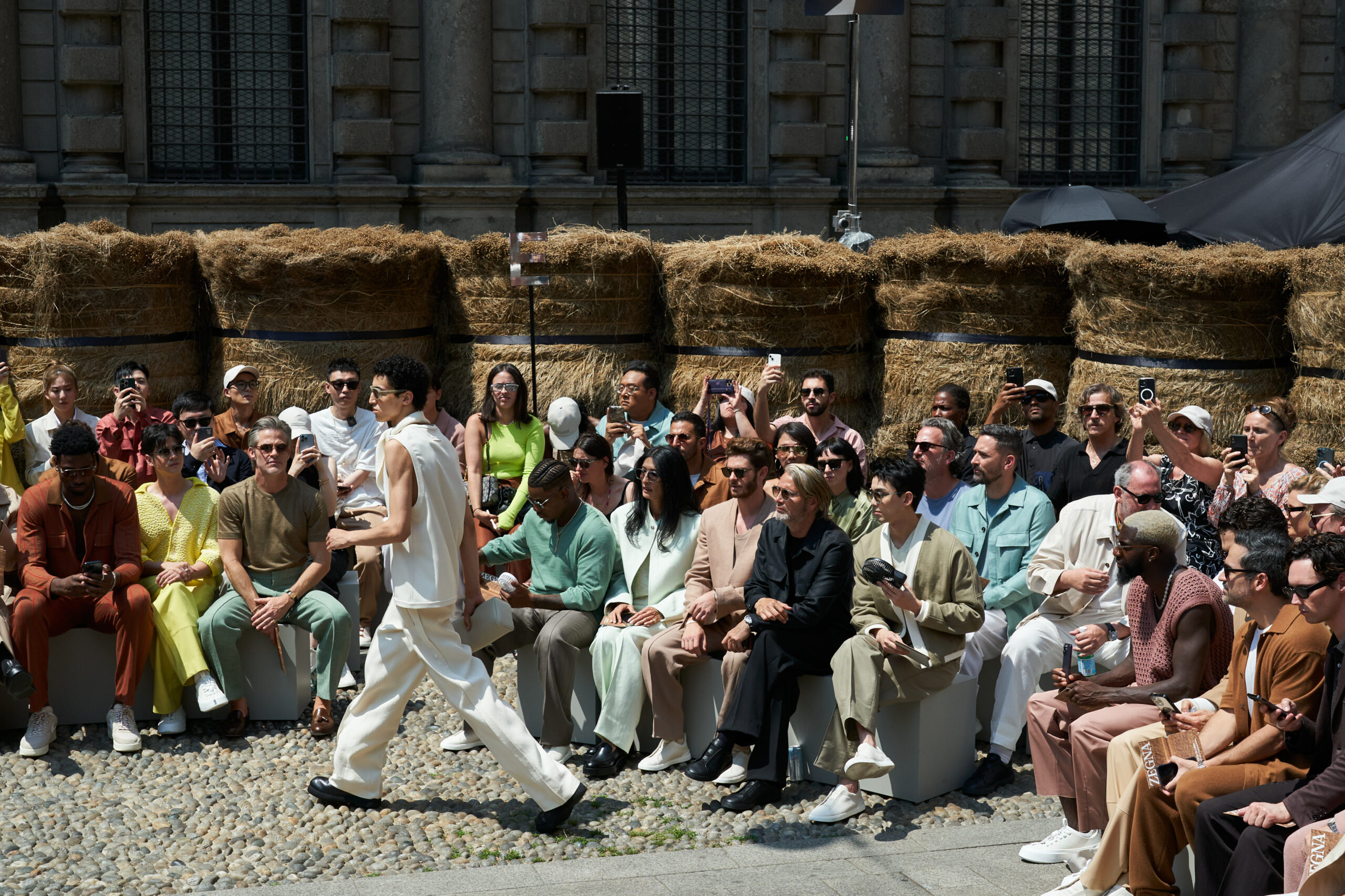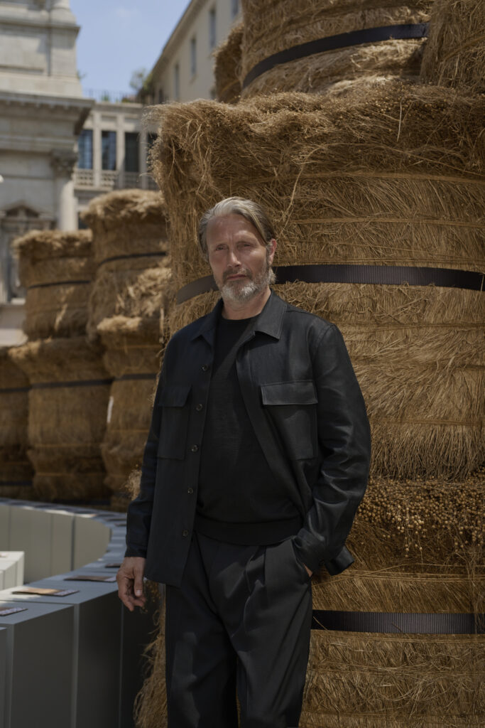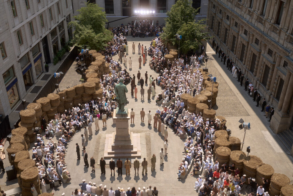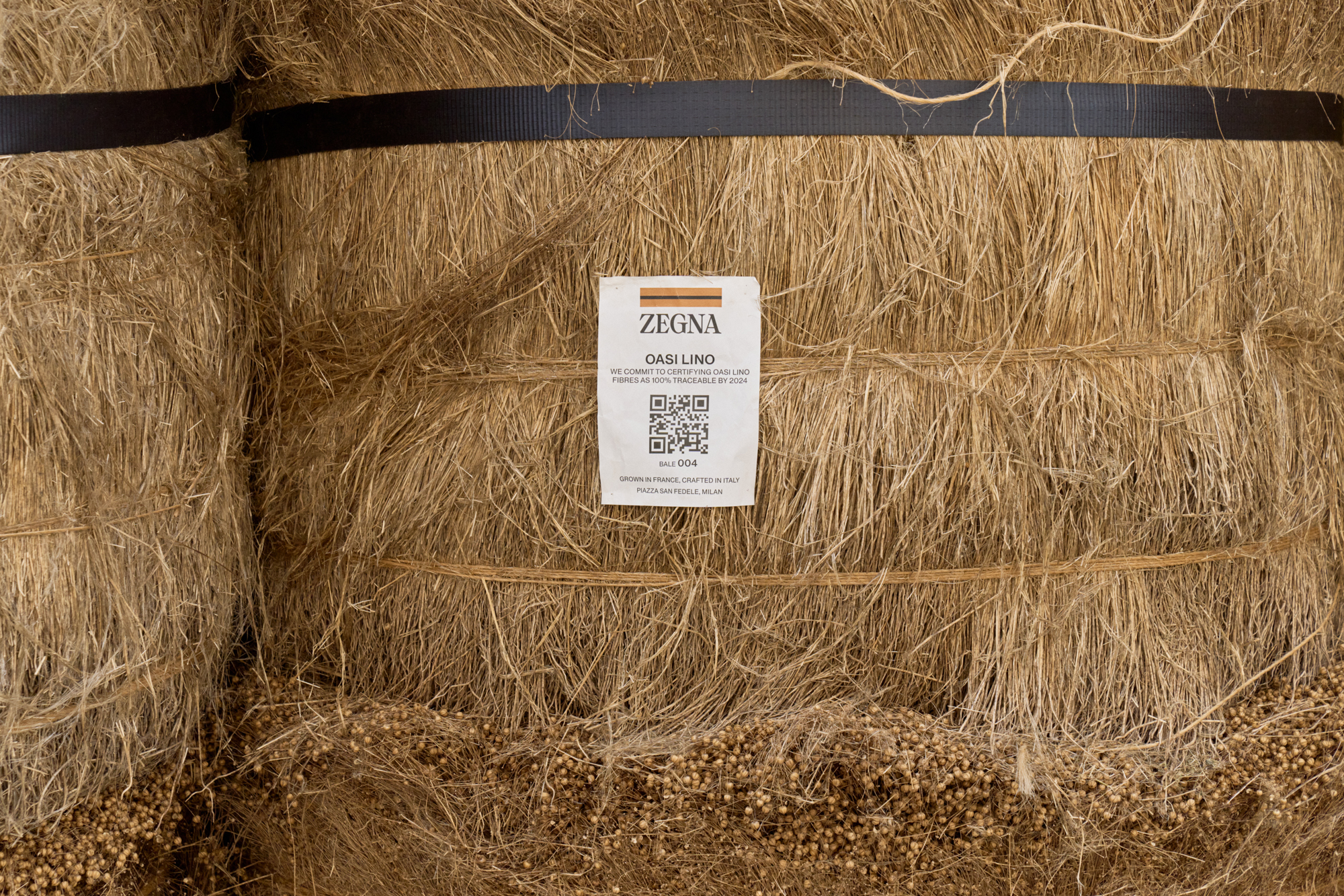 Le défilé de mode, situé au cœur de Milan, a mis en scène 192 balles de lin brut, transportées de Normandie où le lin est cultivé. ZEGNA s’est engagé à certifier les fibres Oasi Lino comme 100% traçables d’ici 2024, reflétant une responsabilité et un engagement écologique.