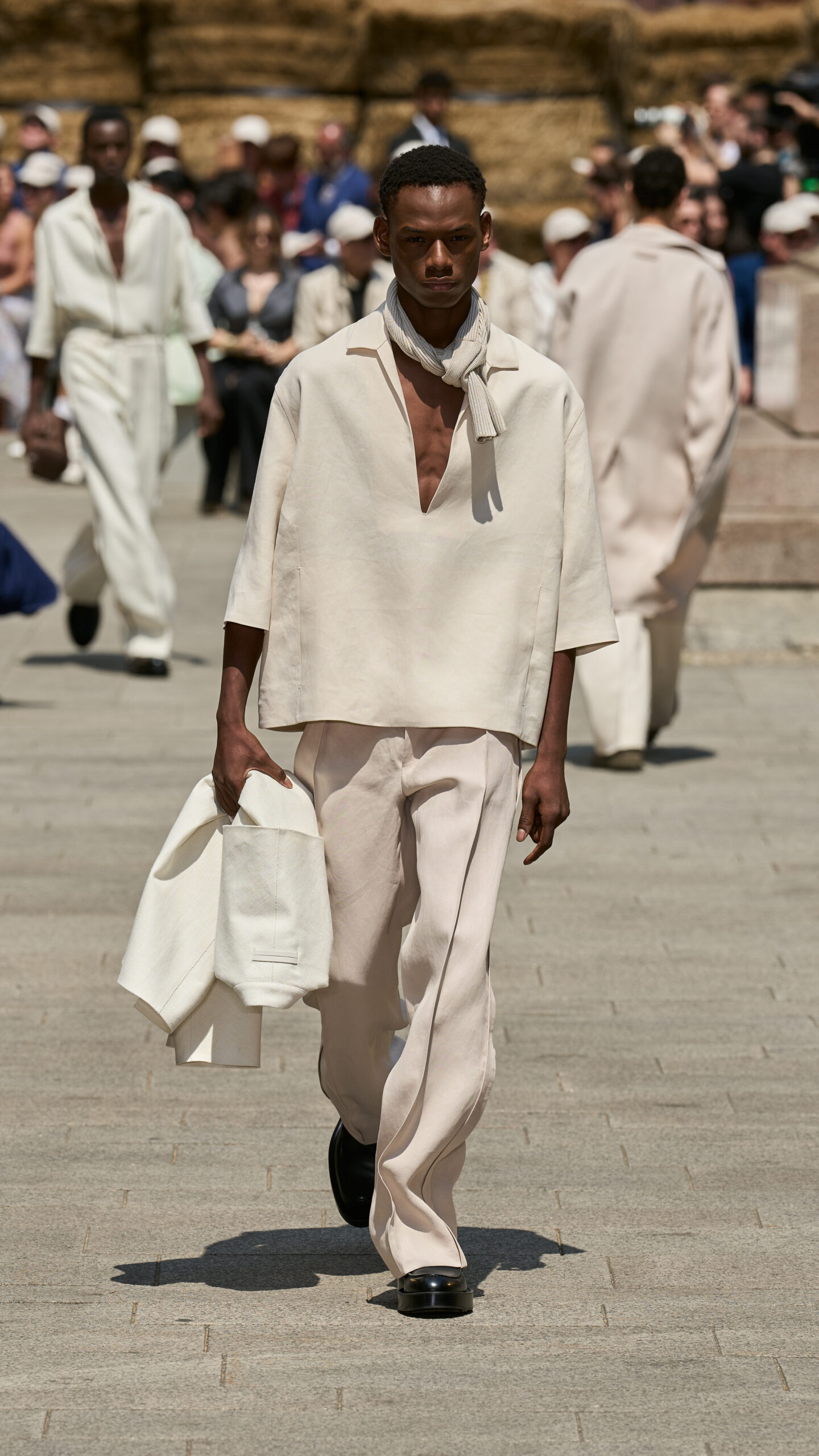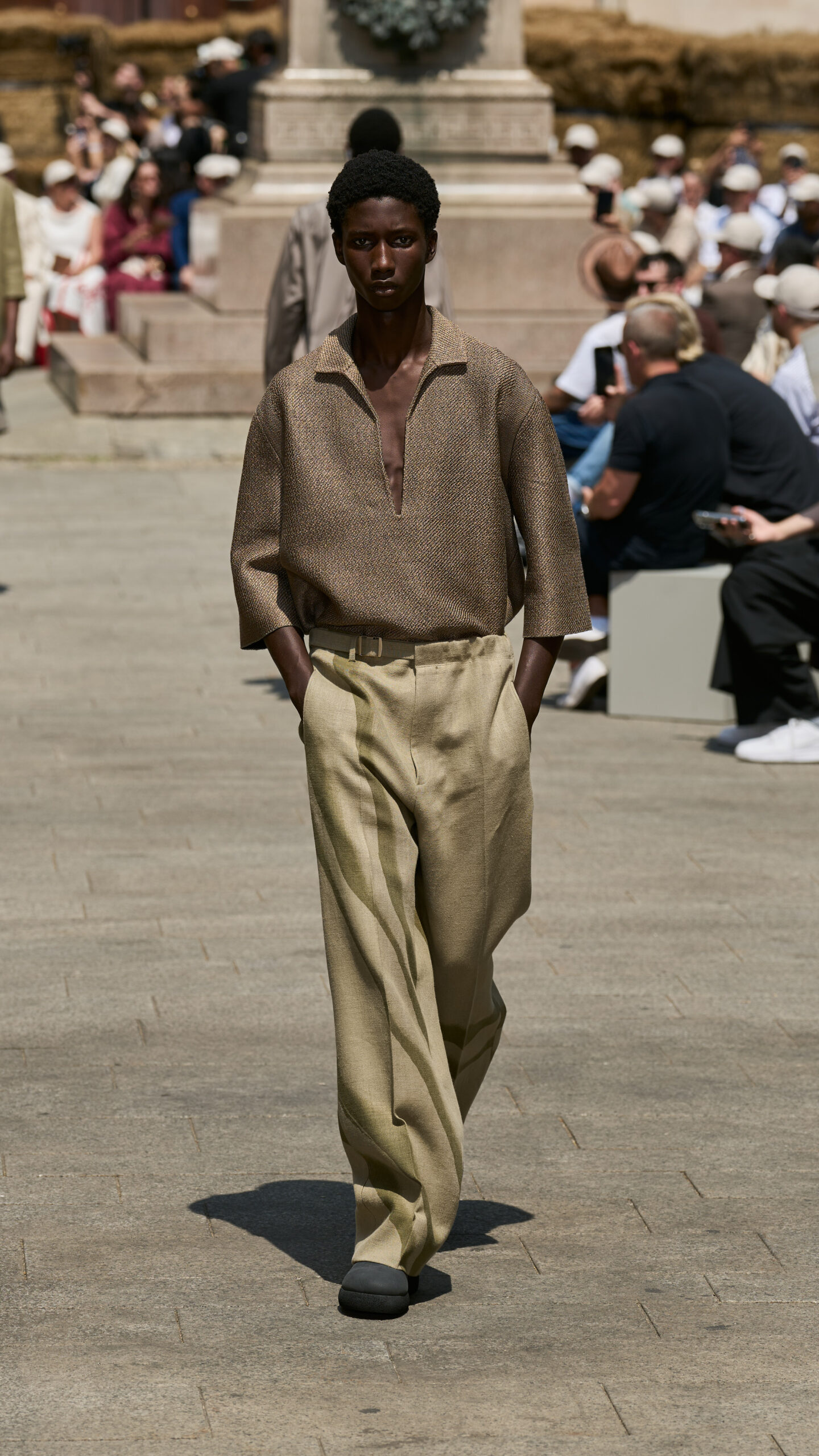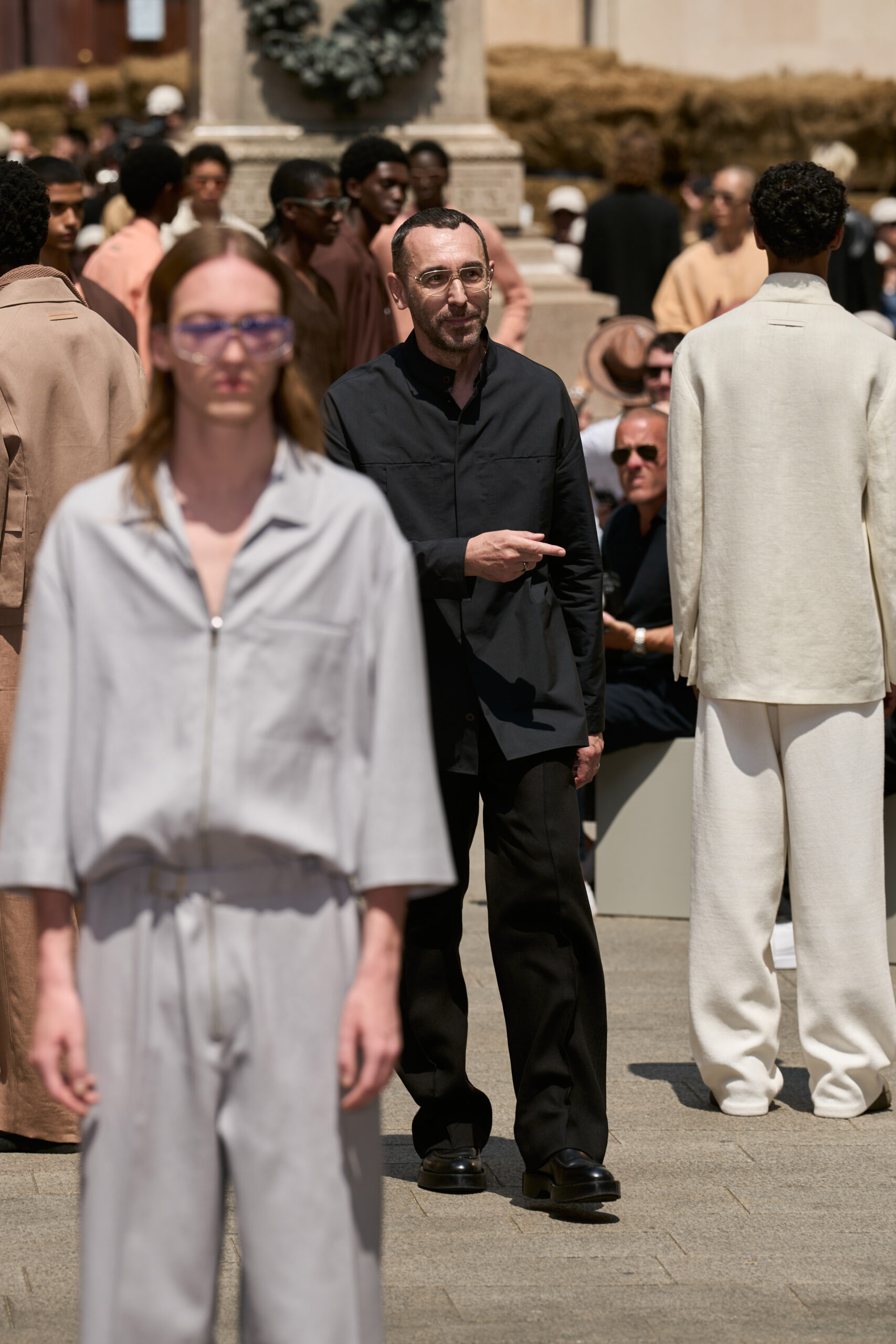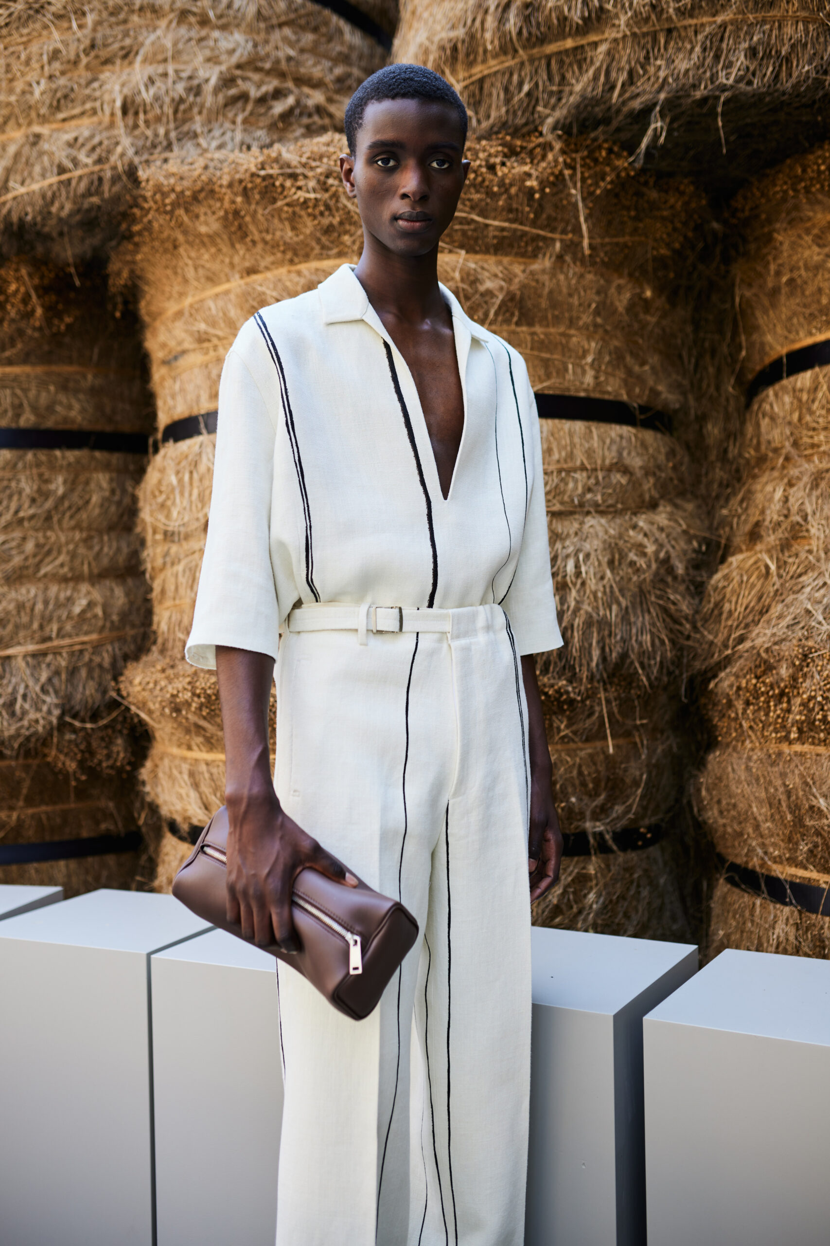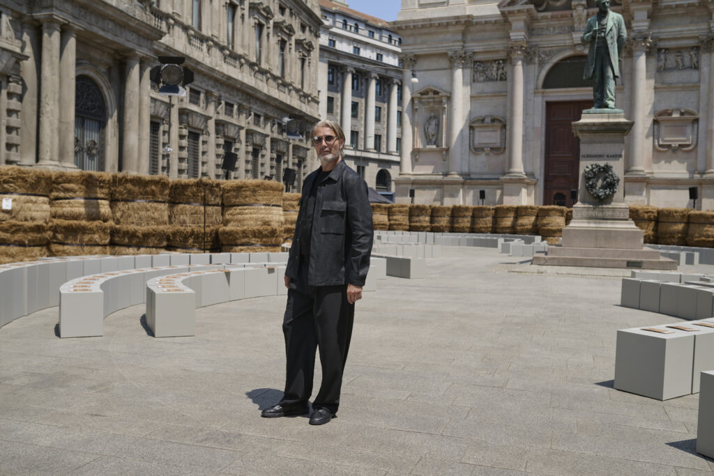 Le défilé de mode, situé au cœur de Milan, a mis en scène 192 balles de lin brut, transportées de Normandie où le lin est cultivé. ZEGNA s’est engagé à certifier les fibres Oasi Lino comme 100% traçables d’ici 2024, reflétant une responsabilité et un engagement écologique.