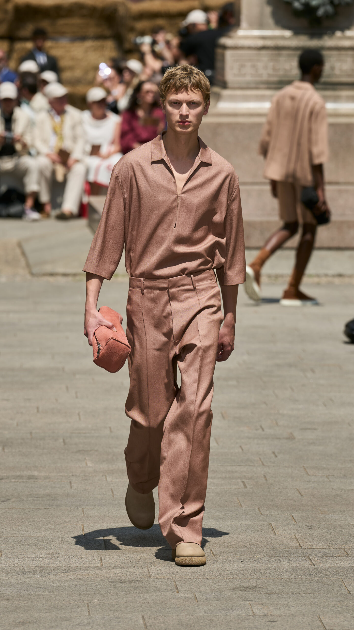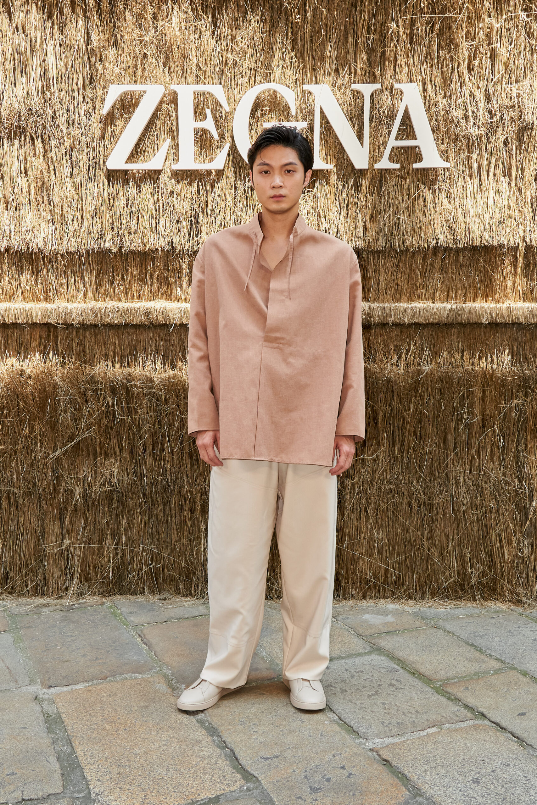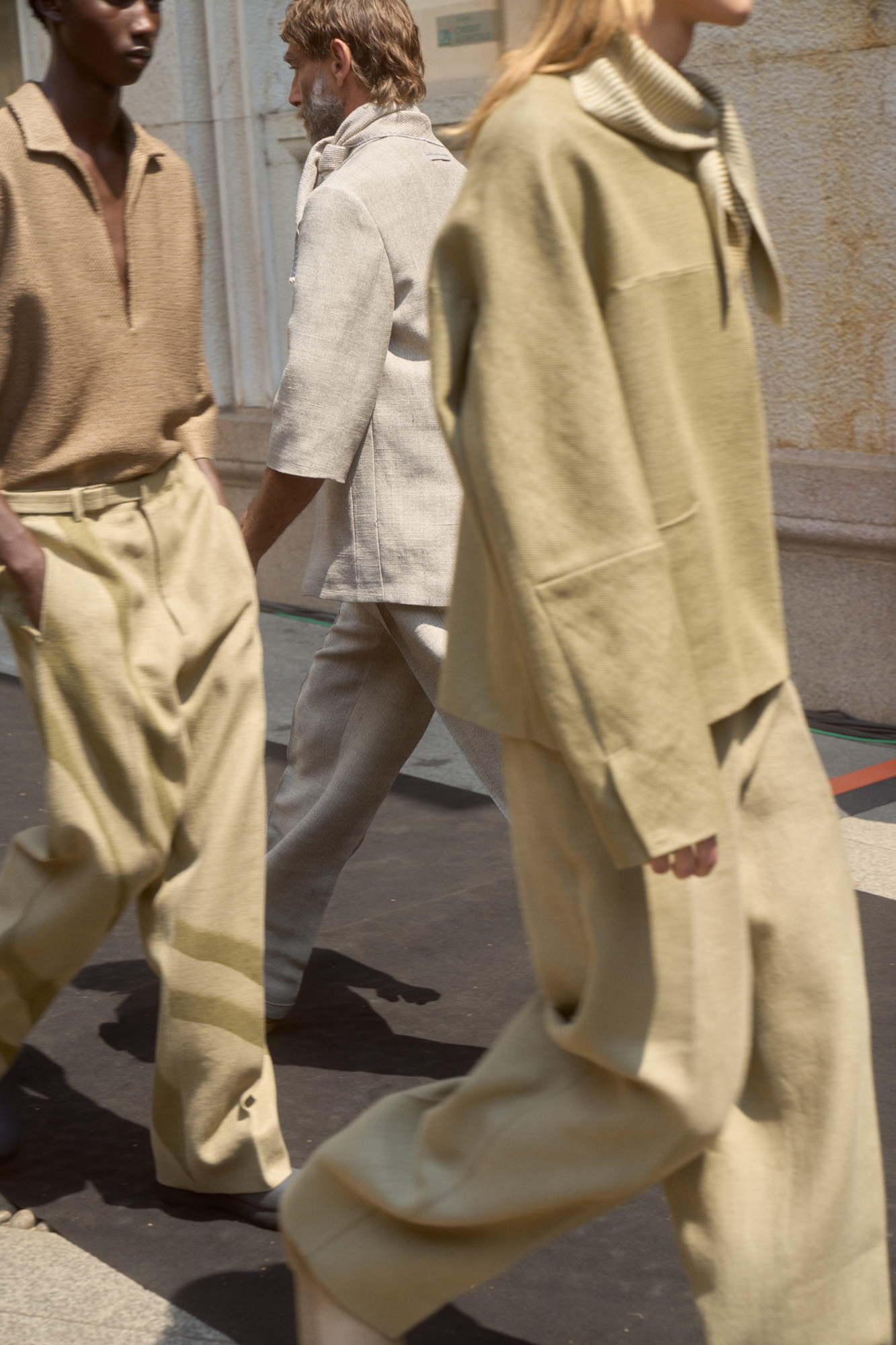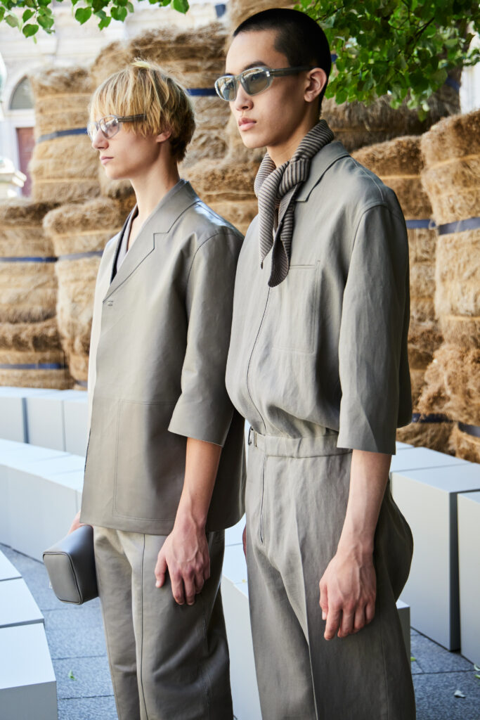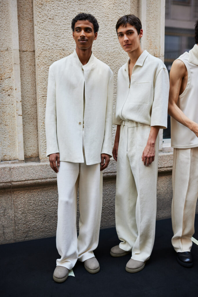 Linen, in the mind of Artistic Director Alessandro Sartori, is as a vector of nimbleness: the perfect complement for the sartorial reset he is pursuing in writing a new paradigm that is fluid, apt for different bodies, crossing different demographics. ‘At ZEGNA we keep rethinking what an efficient wardrobe should be like today, further delving into the idea of creating a system of elements — tops, bottoms, underpinnings and accessories — that can be combined and self-styled however one prefers. It’s the idea of the uniform that prompts non uniformity. The suit as matching jacket and trousers no longer applies. Today, everything goes with everything, and this frees the customer, who can play with shapes and hues. Lines are deceptively simple: we hide functional elements in the construction, bringing texture to the fore. The overall fluidity makes it all look quiet and luxurious, but the tension in the details, the richness of colors and the freedom infinite combinations suggest is not quiet at all’ says Sartori.