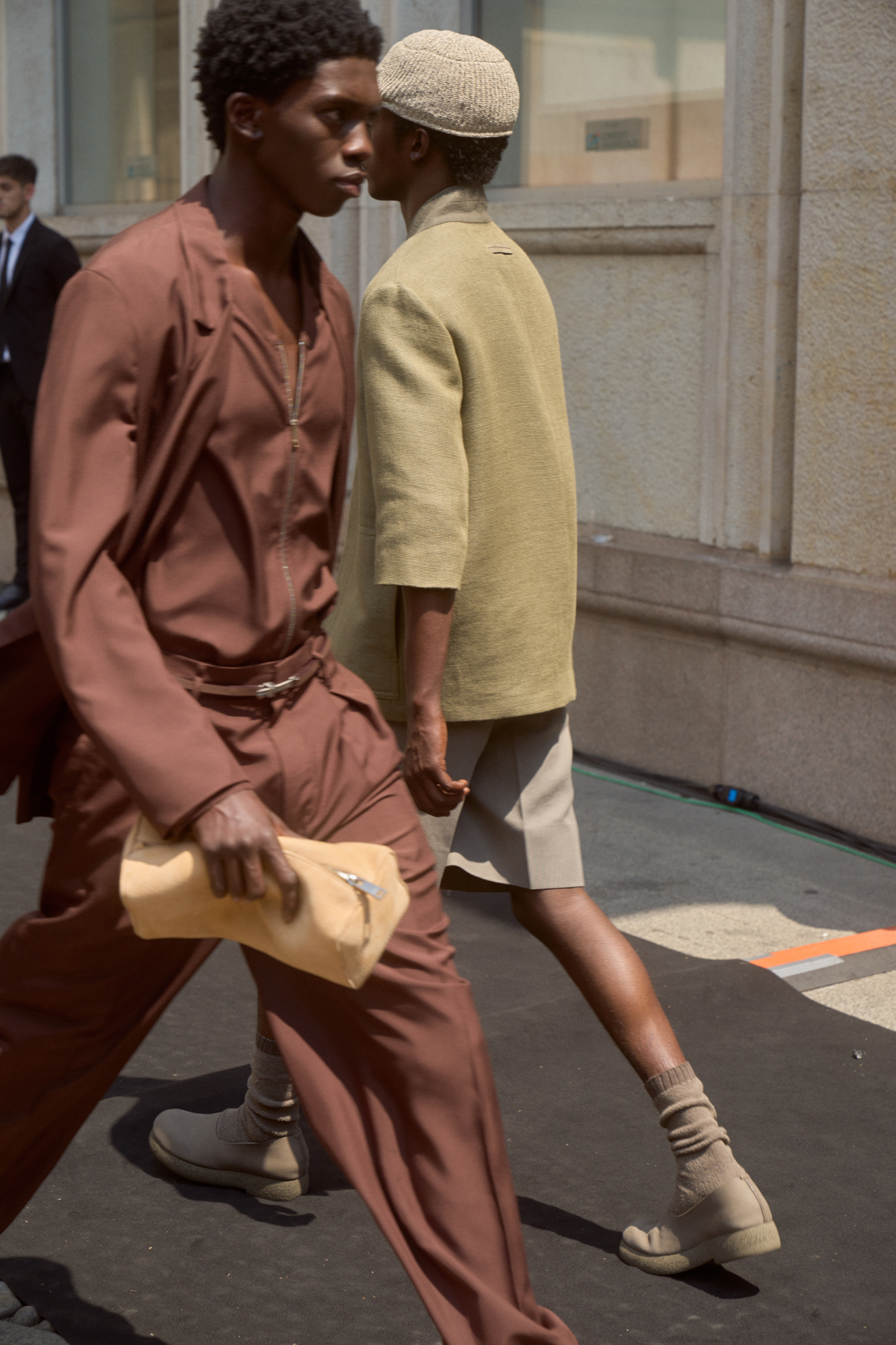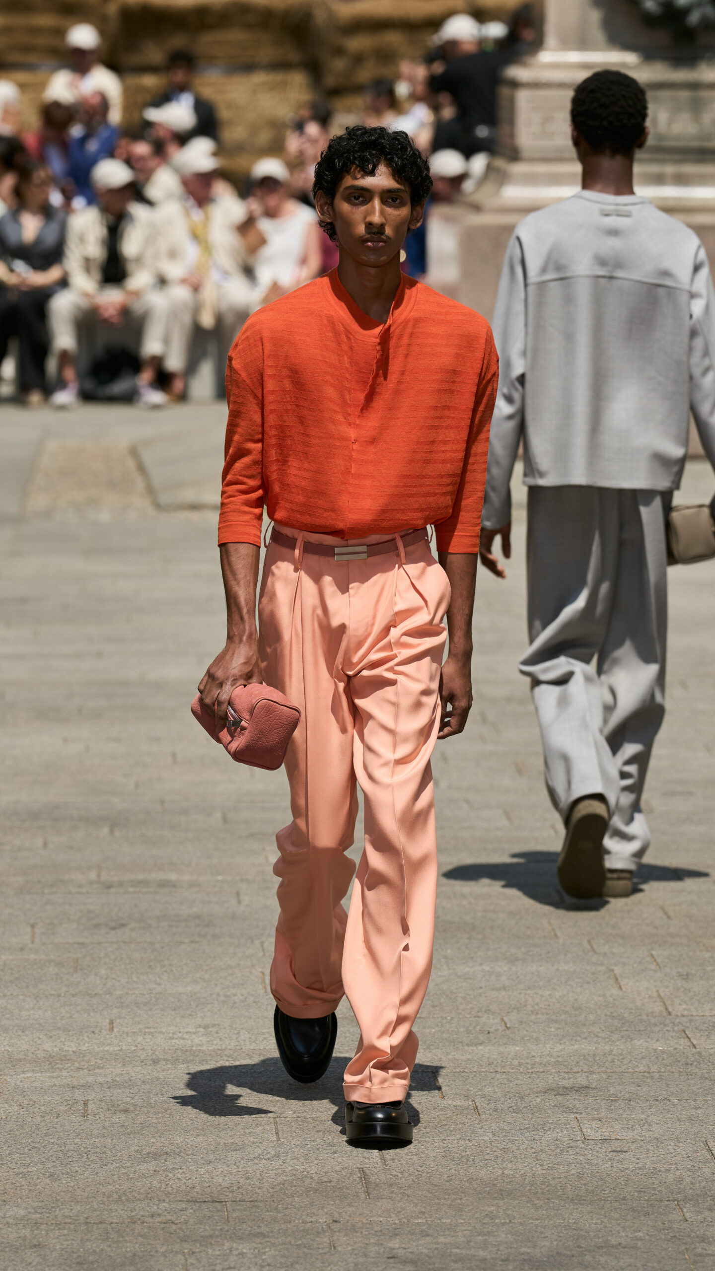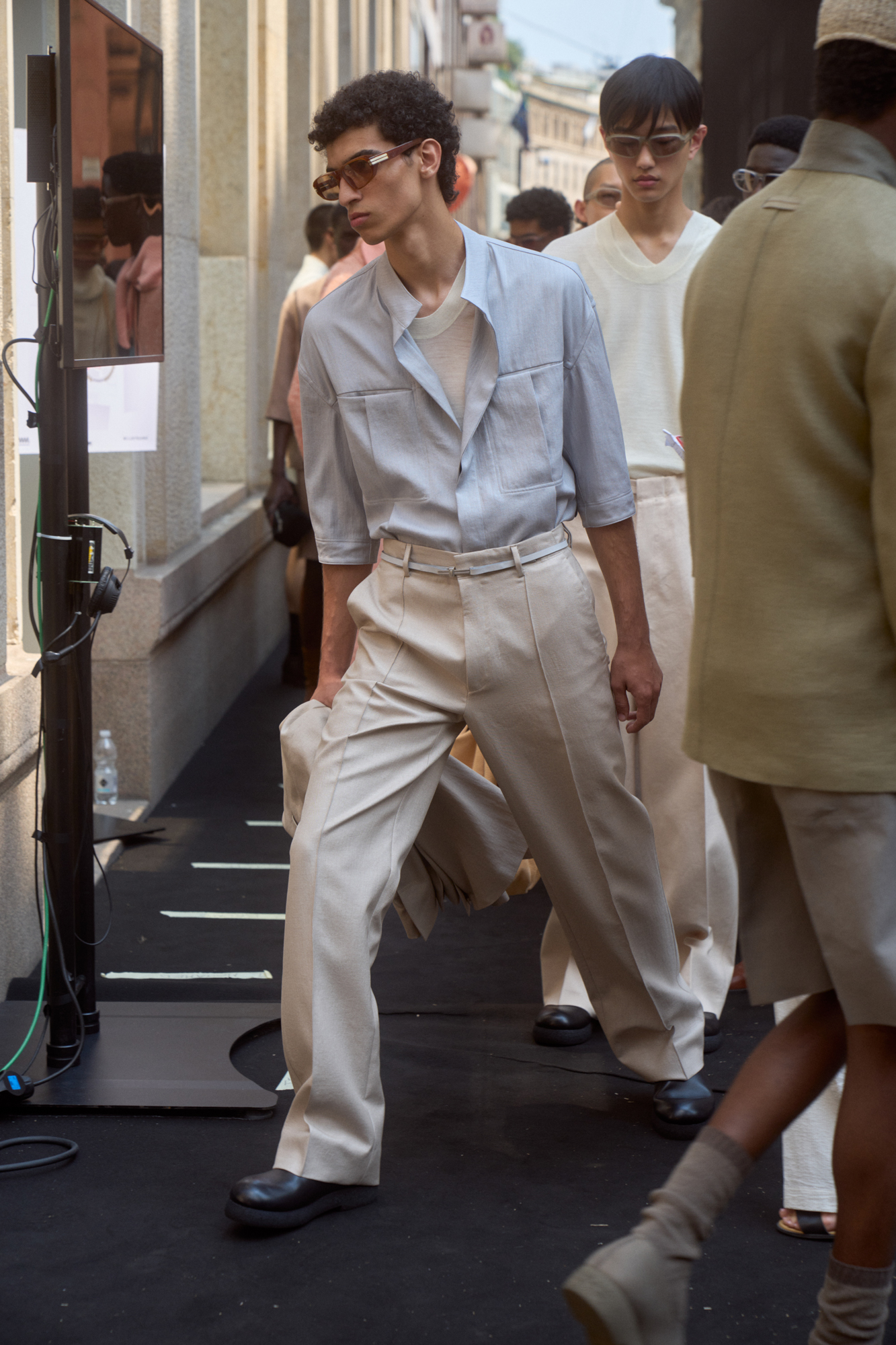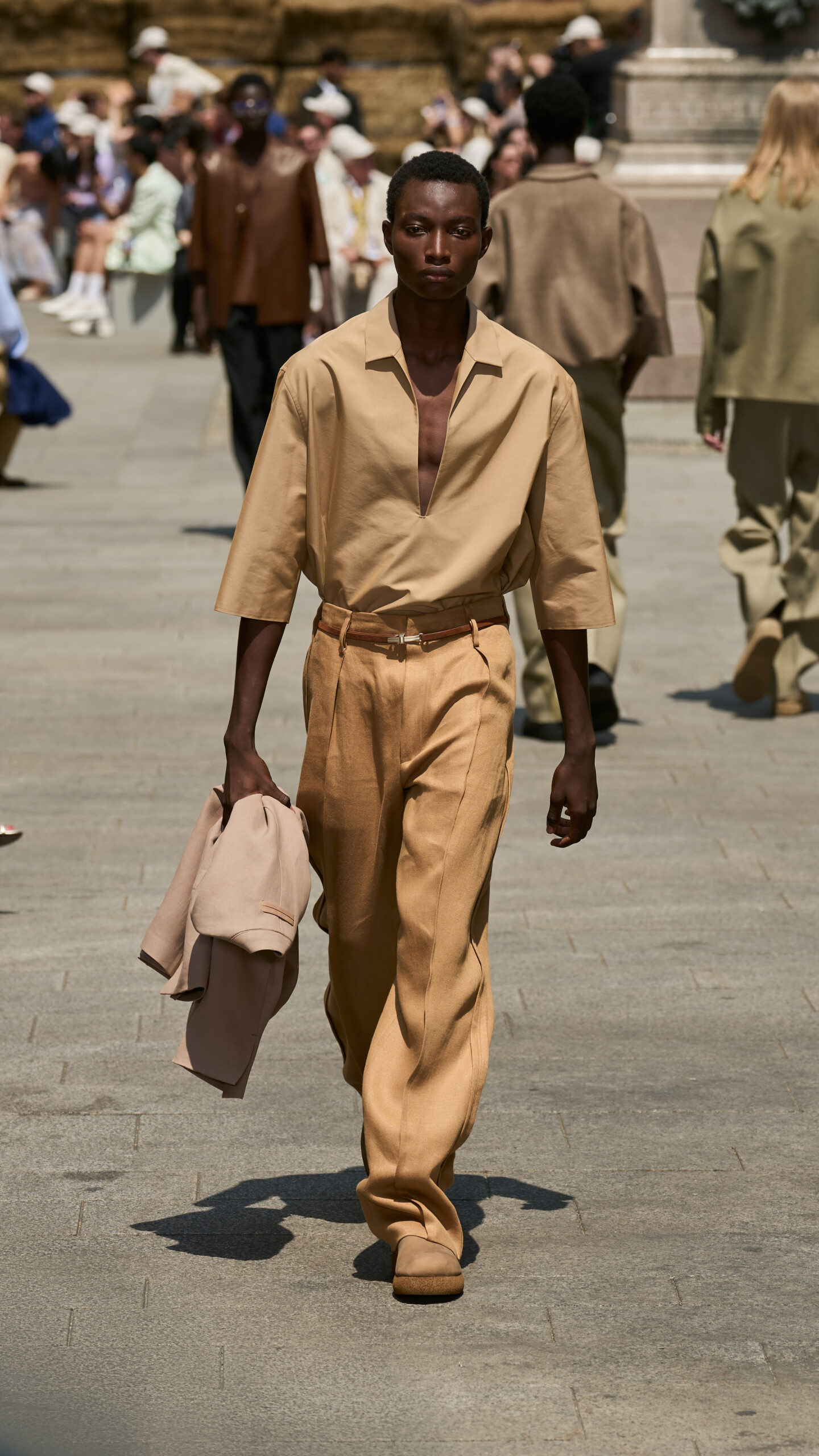 Linen, in the mind of Artistic Director Alessandro Sartori, is as a vector of nimbleness: the perfect complement for the sartorial reset he is pursuing in writing a new paradigm that is fluid, apt for different bodies, crossing different demographics. ‘At ZEGNA we keep rethinking what an efficient wardrobe should be like today, further delving into the idea of creating a system of elements — tops, bottoms, underpinnings and accessories — that can be combined and self-styled however one prefers. It’s the idea of the uniform that prompts non uniformity. The suit as matching jacket and trousers no longer applies. Today, everything goes with everything, and this frees the customer, who can play with shapes and hues. Lines are deceptively simple: we hide functional elements in the construction, bringing texture to the fore. The overall fluidity makes it all look quiet and luxurious, but the tension in the details, the richness of colors and the freedom infinite combinations suggest is not quiet at all’ says Sartori.