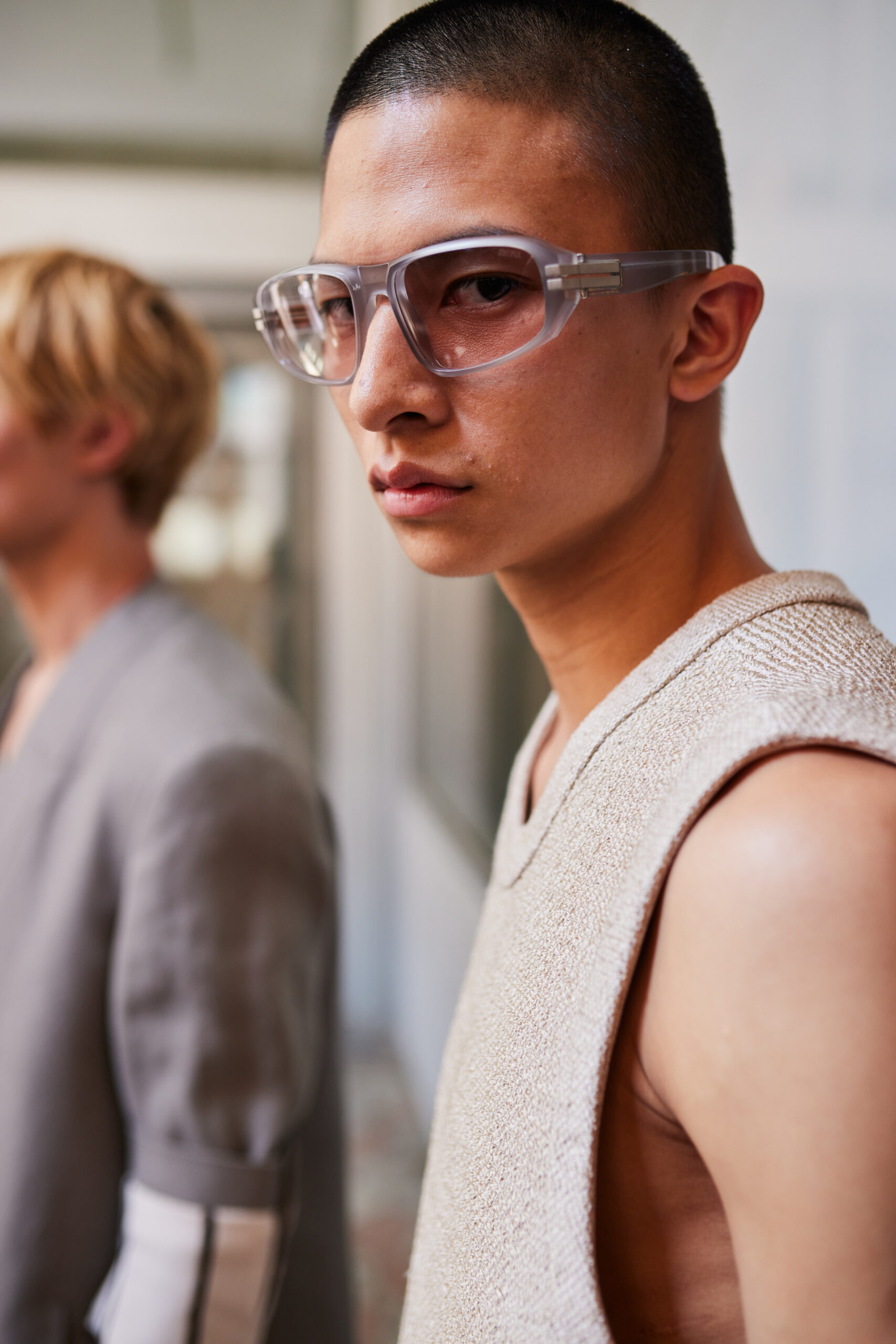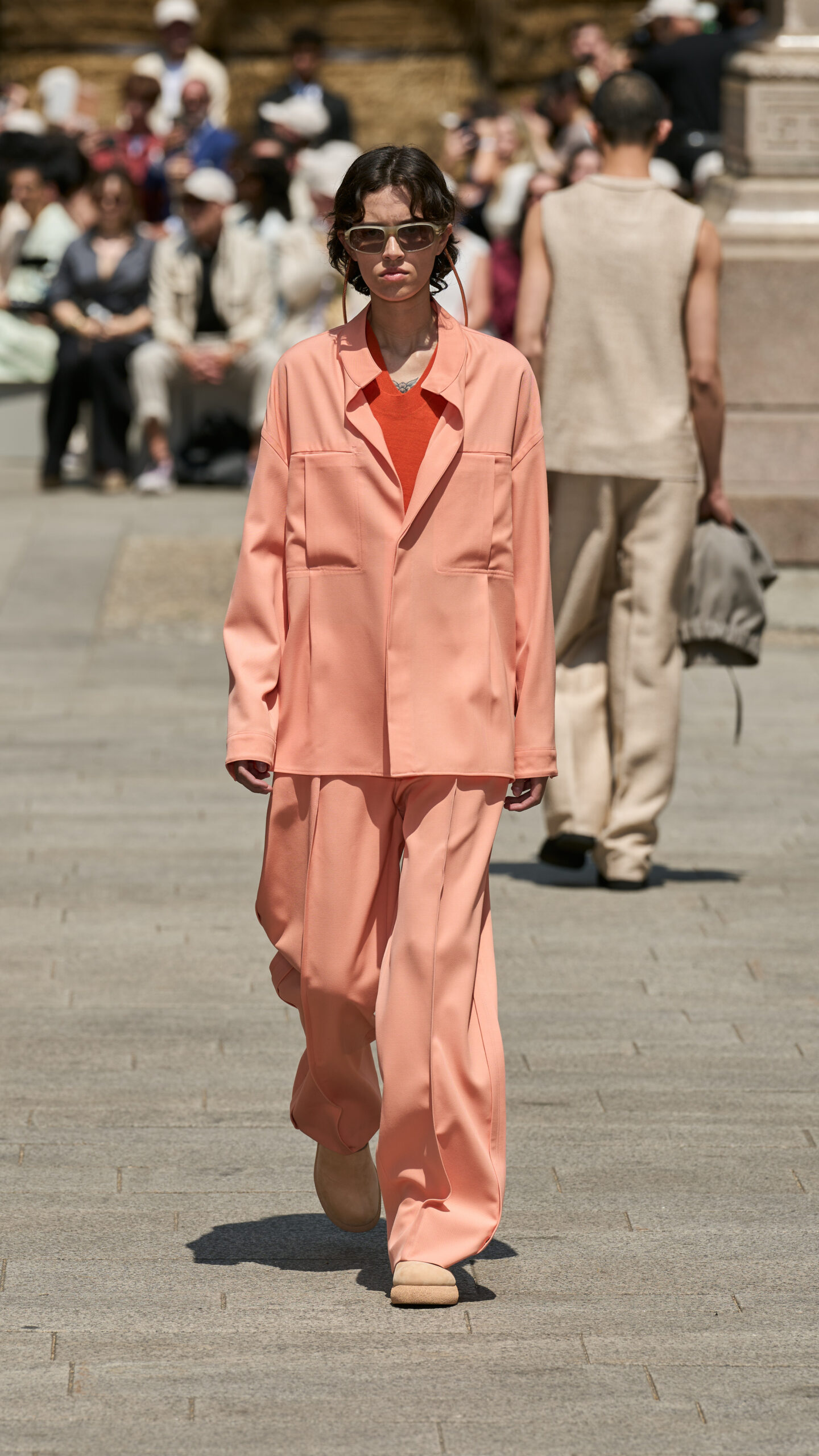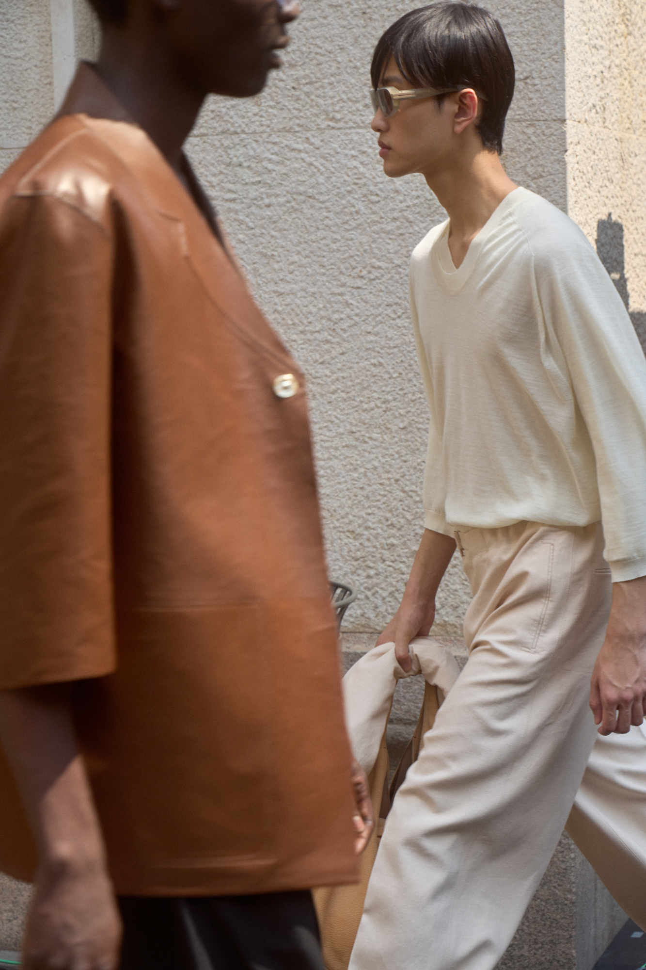 - Fluidité et Douceur : La collection se définit par une précision douce avec des volumes fluides et des catégories liquides. La veste traditionnelle est déconstruite, les lignes sont épurées, et des éléments fonctionnels sont cachés dans la construction.