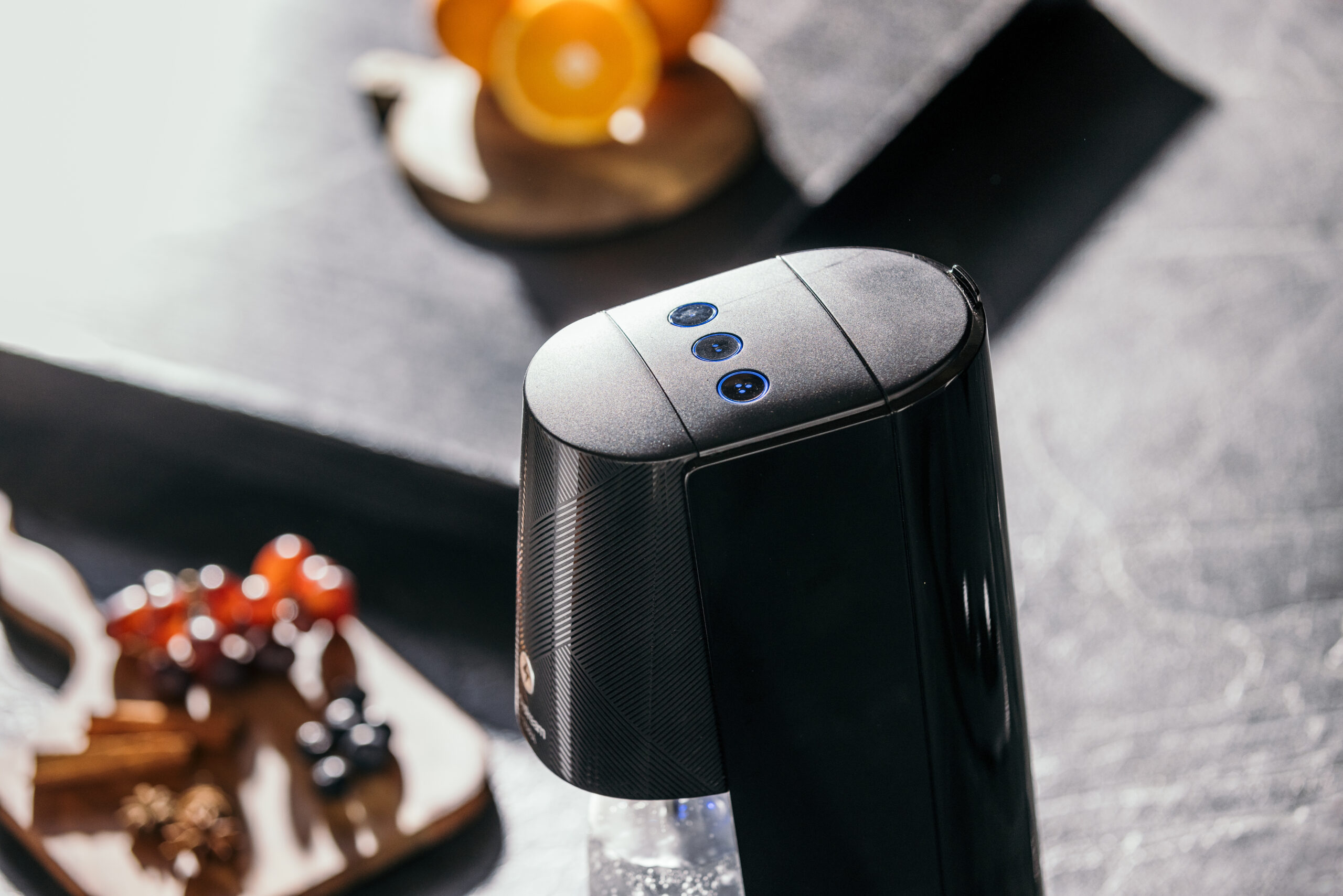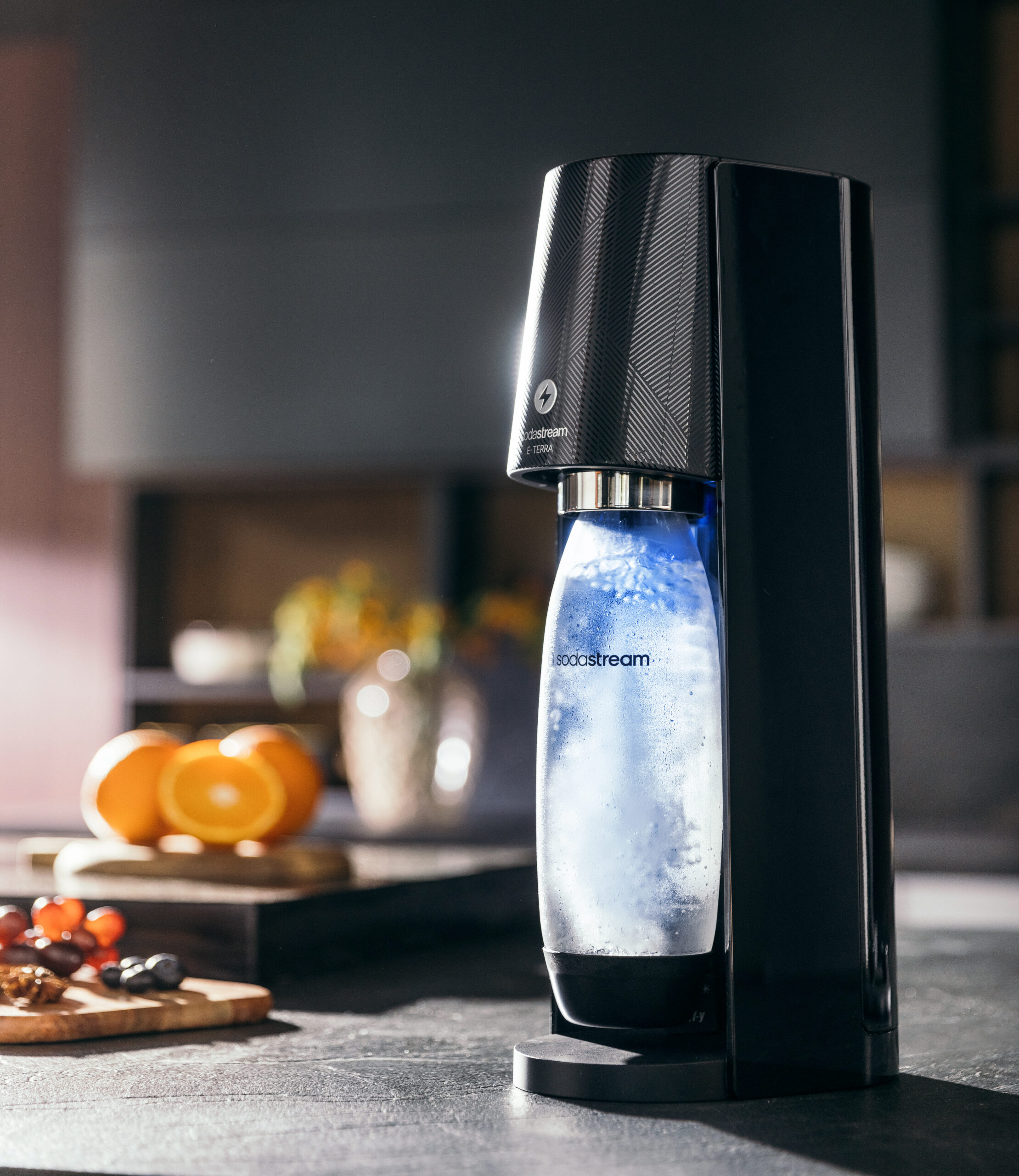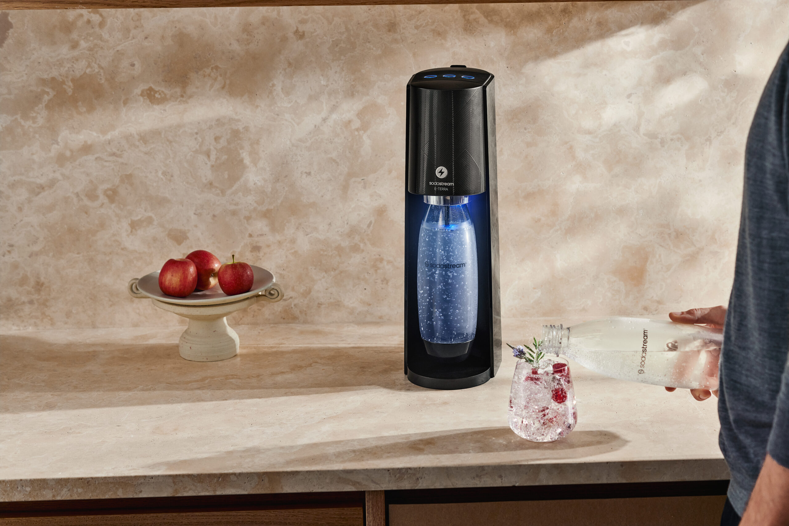 Enfin, la Terra offre une expérience de gazéification haut de gamme. D’une simple pression, elle invite à préparer une délicieuse eau pétillante et propose trois niveaux de gazéification. La bouteille s’illumine durant le processus de gazéification, grâce à un éclairage LED. Disponible en noir, elle est proposée à partir de 149,99€.