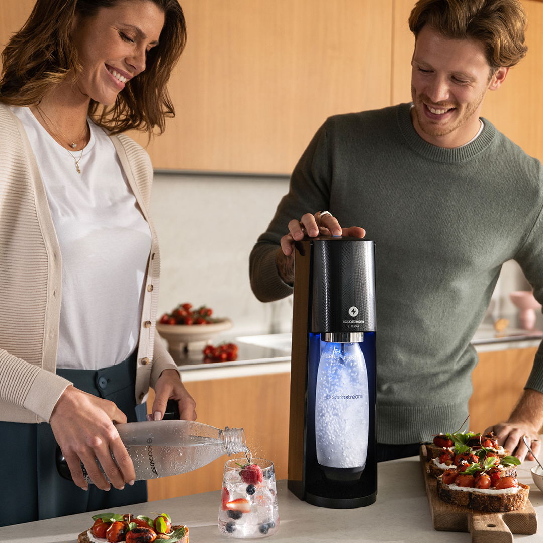 La E-Terra Art est la première machine SodaStream qui permet de faire pétiller son eau dans une carafe en verre fabriquée en France et dans une bouteille fuse réutilisable. Parfaite pour des bulles à la maison et en extérieur, elle est disponible en noir et blanc, et est proposée à partir de 134,99€.