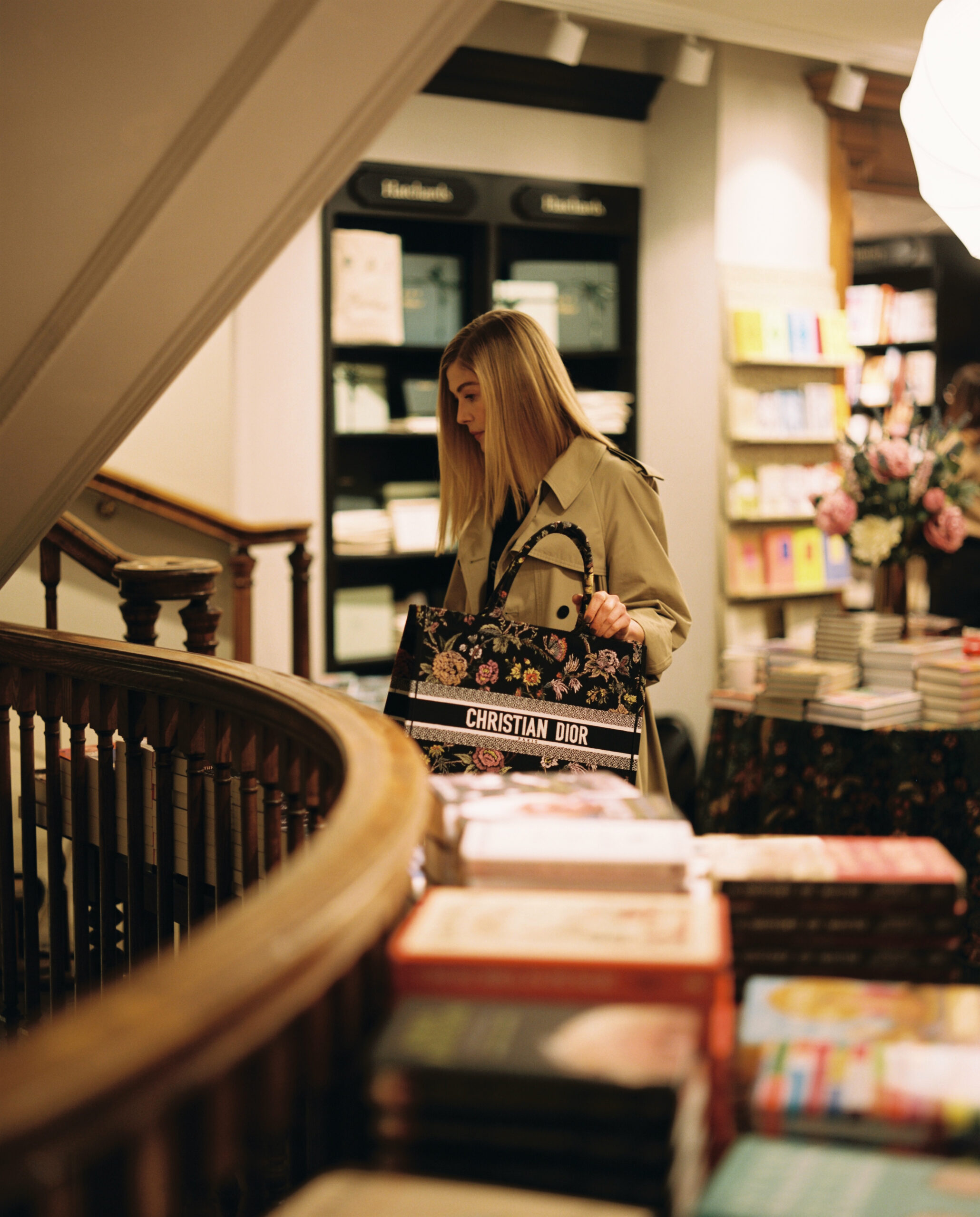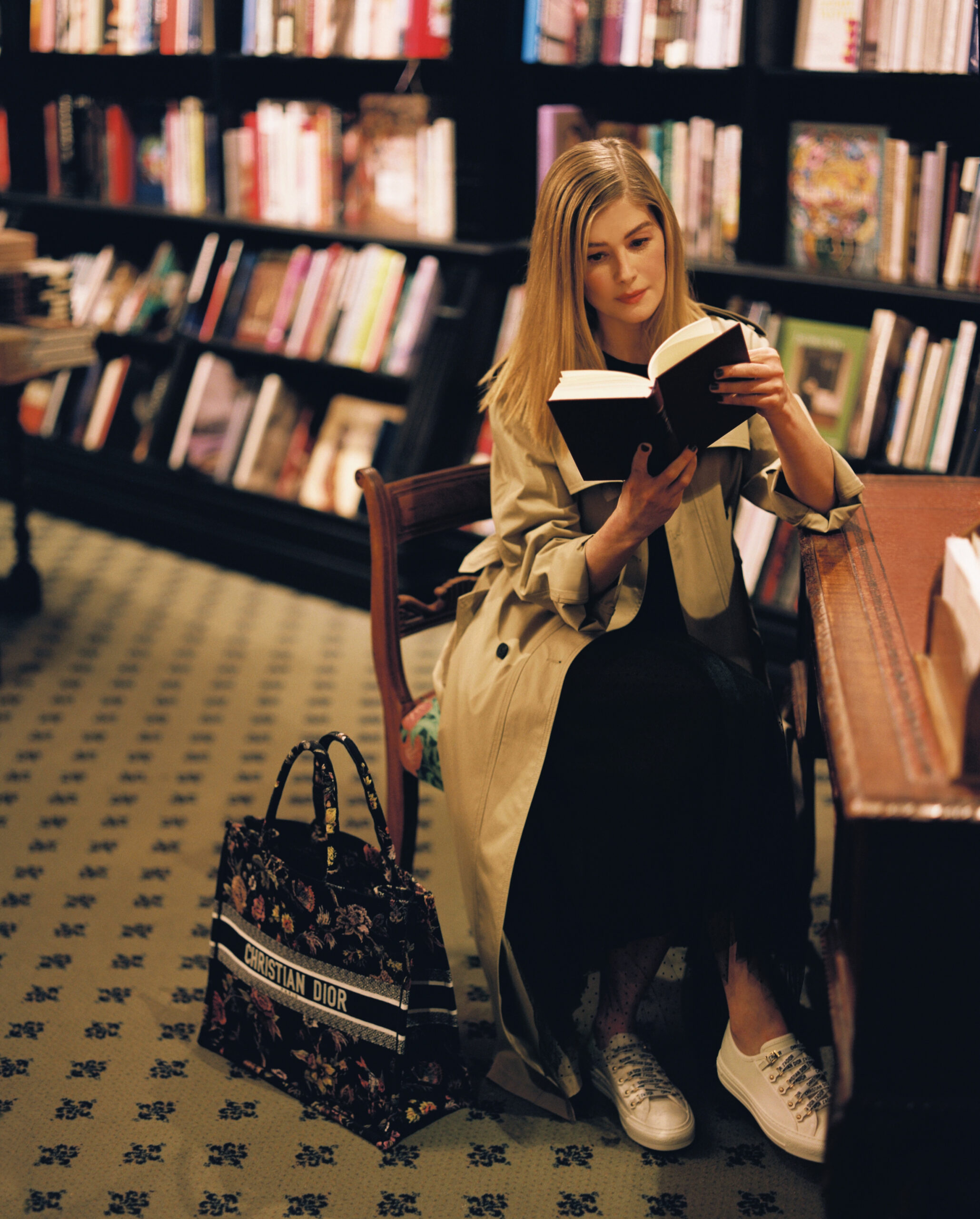 A new rendez-vous merging writing and fashion, the Dior Book Tote Club celebrates the unfailing, ever-reinvented links between Dior and the arts. Today, it is Rosamund Pike’s turn to tell us about the reading material she chooses to slip into her Dior Book Tote, one of the House’s emblematic bags. A singular, passionate encounter at Hatchards, the iconic, prestigious London bookshop, where the actress unveils her most vivid literary memories: from Thomas Hardy’s classic The Mayor of Casterbridge to Hanya Yanagihara’s more contemporary A Little Life, (re)discovering works where beauty is also born of images, she plunges back into the pages of Barnaby Barford’s graphic novel The Apple is Everything, the irresistible prose of which is magnified by spellbinding illustrations. An ode to the power of books, culture and creation in all its forms. A suspended moment, inviting dreams and escape.