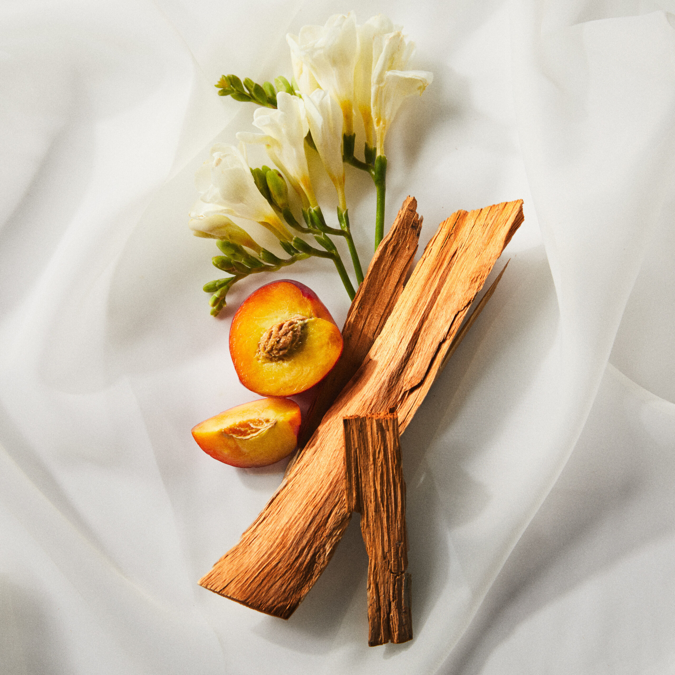 Lumineuse et pétillante, The Wedding Silk Santal s’ouvre sur des effluves de champagne et de freesia, rappelant la joie débordante de la mariée. La douceur de la praline rose et les accents fruités de la nectarine composent son coeur romantique. En fond, le musc sucré et le santal velouté apportent sensualité et volupté.