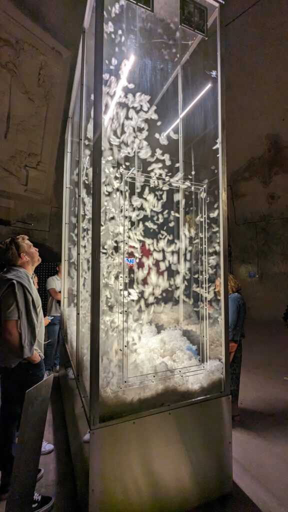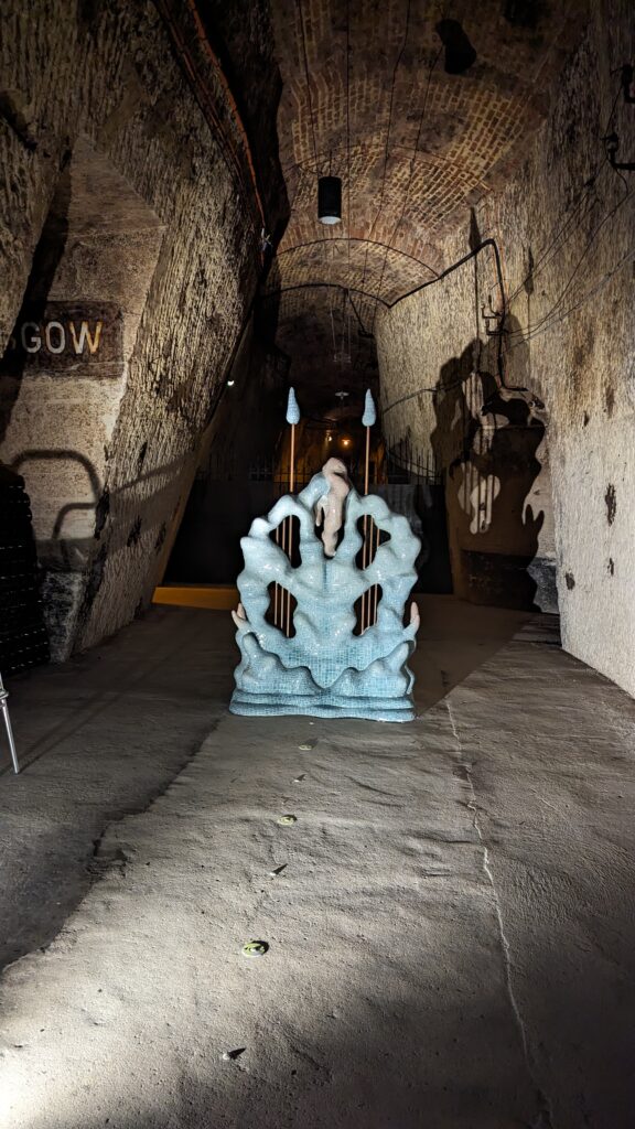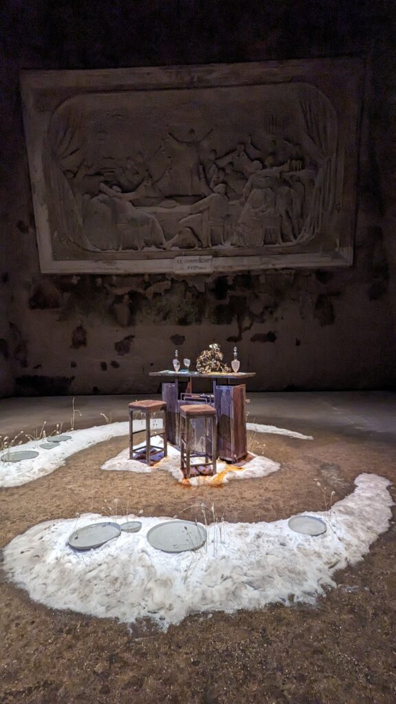 Mais ce qui a véritablement captivé mon regard, c’est cette surprenante alliance entre l’ancien et le contemporain. Depuis deux décennies, les caves Pommery ont ouvert leurs voûtes à l’art moderne, créant une symbiose parfaite entre le passé historique et la créativité actuelle.