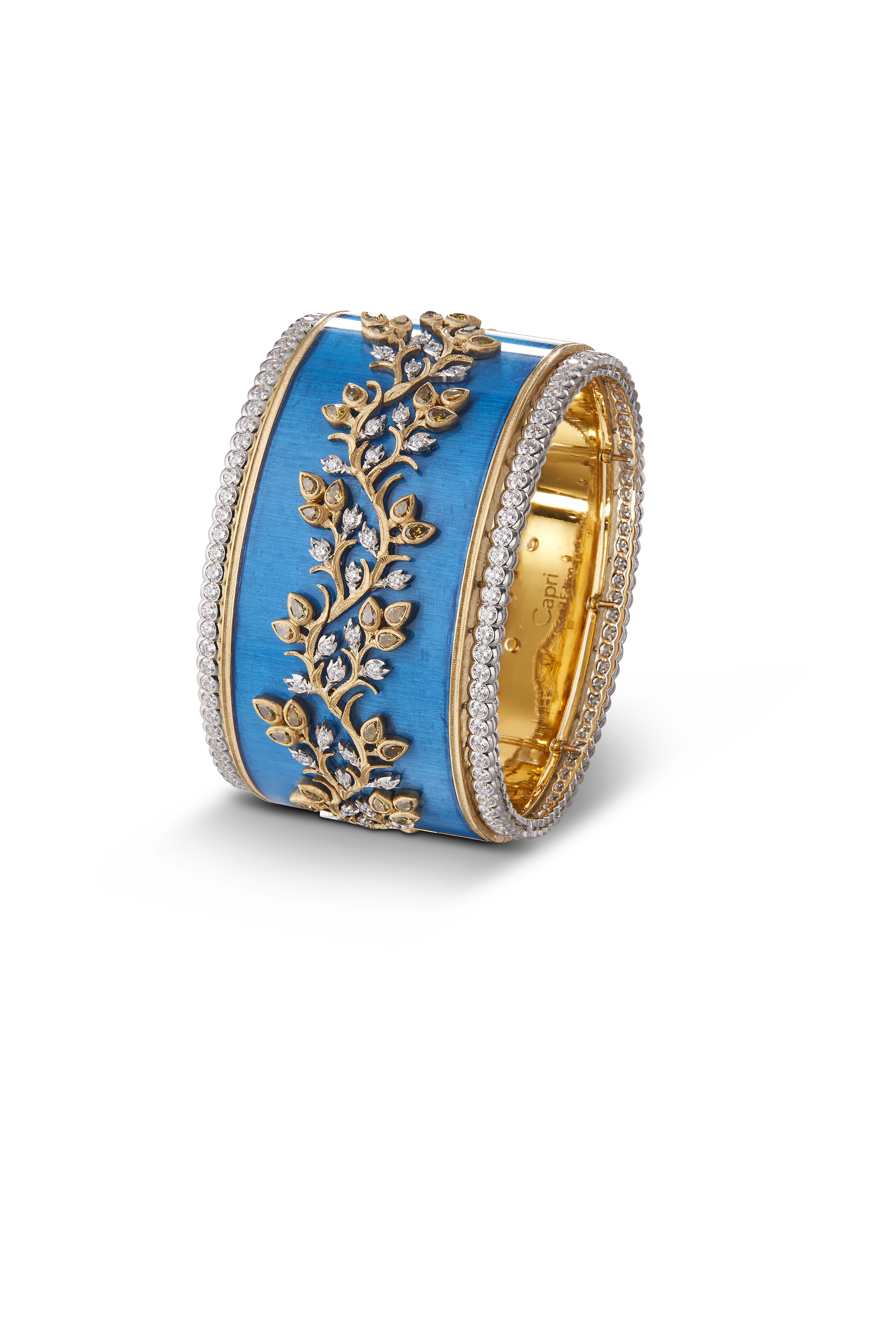 Qu’ils soient portés seuls ou associés pour une silhouette très couture, ces bijoux d’exception rehaussent每e bracelet manchette Capri porte en lui l’ADN de la maison Buccellati et l’essence de l’île qui l’a inspiré.