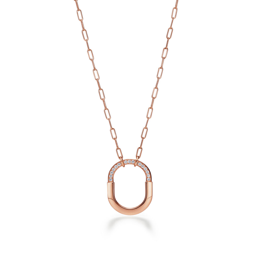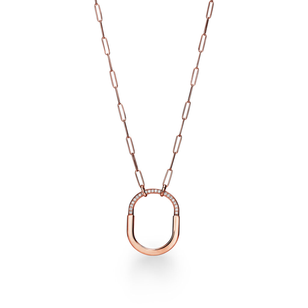 L’extension de la collection Tiffany Lock introduit une gamme étincelante de pendentifs, bagues, boucles d’oreilles et bracelets en or jaune, blanc et rose.