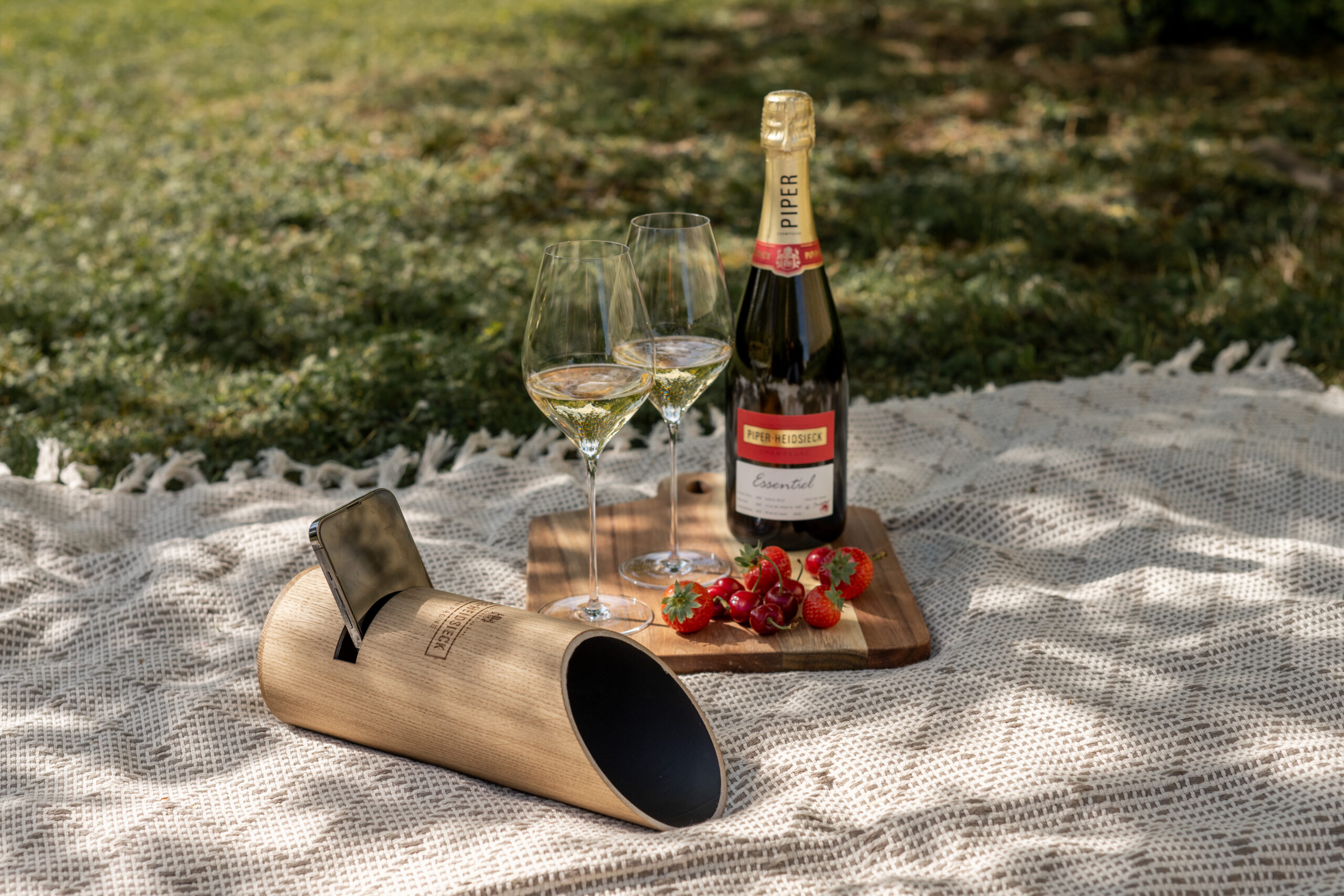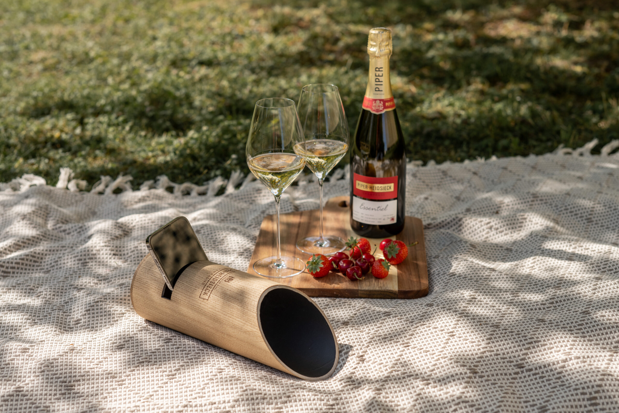 Fidèle à son esprit pionnier, la maison Piper-Heidsieck lance un objet au concept inédit : un coffret en bois amplificateur naturel de son. Sans électricité, ce coffret unique diffuse le son d’un smartphone grâce à sa forme creuse en bois massif qui favorise la résonance.