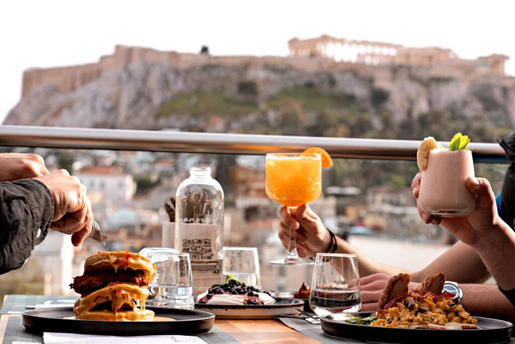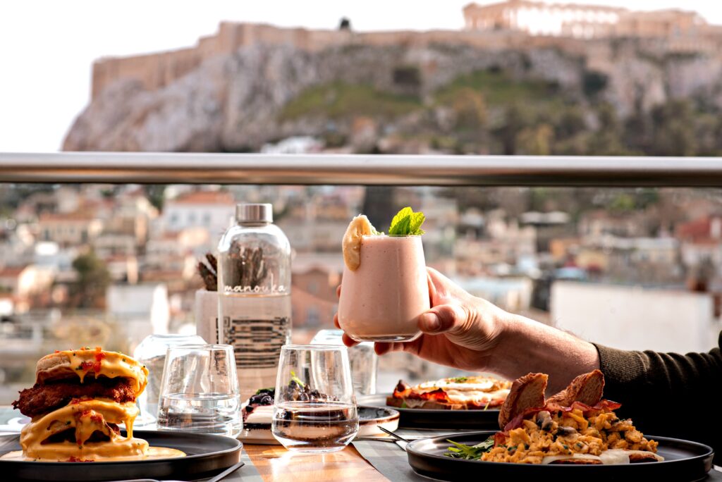 Au programme : banquettes cosy, miroirs arrondis, suspension en rotin et touches de laiton. La terrasse extérieure invite à la détente avec sa végétalisation relaxante. Et que dire de la vue imprenable sur l’Acropole et le mont Lycabette ! Le Manouka offre l’un des panoramas les plus majestueux de la capitale grecque.