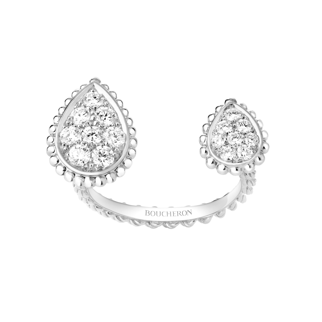 Rita Ora was wearing the Serpent Bohème double motif S ring, paved with diamonds, on white gold,the Serpent Bohème L motif ring, paved with diamonds, on white gold, the Serpent Bohème double motif XS and S ring, paved with diamonds, on white gold, as well as the Vendôme Liseré ring, set with an emerald-cut morganite, paved with diamonds, in white gold and black lacquer.