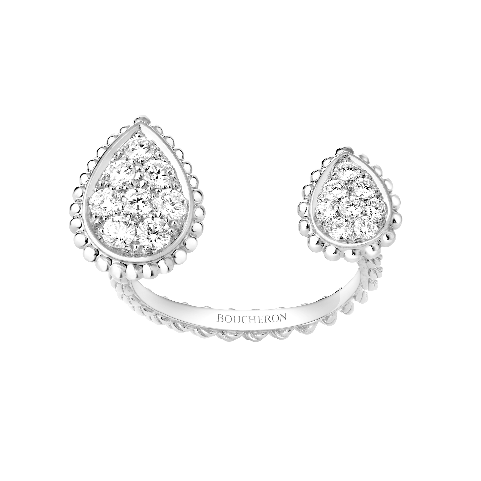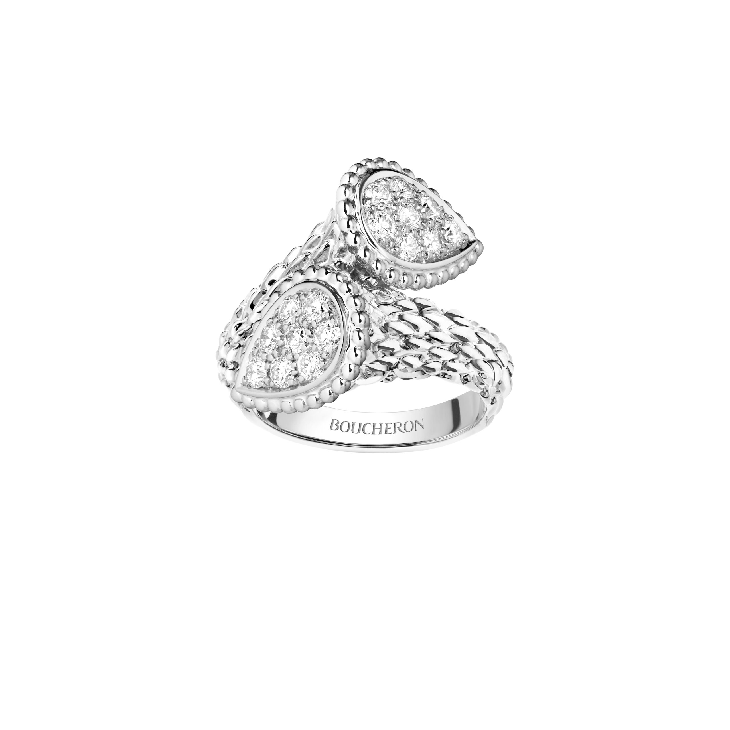 Rita Ora was wearing the Serpent Bohème double motif S ring, paved with diamonds, on white gold,the Serpent Bohème L motif ring, paved with diamonds, on white gold, the Serpent Bohème double motif XS and S ring, paved with diamonds, on white gold, as well as the Vendôme Liseré ring, set with an emerald-cut morganite, paved with diamonds, in white gold and black lacquer.