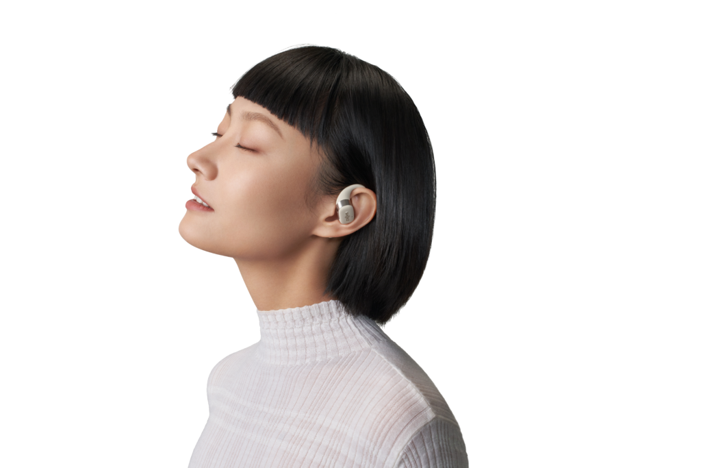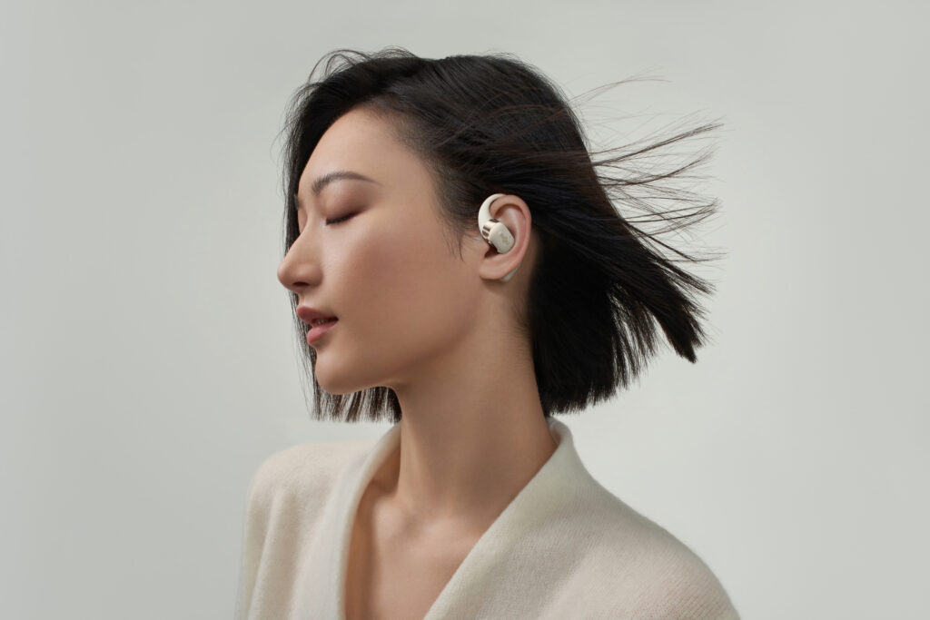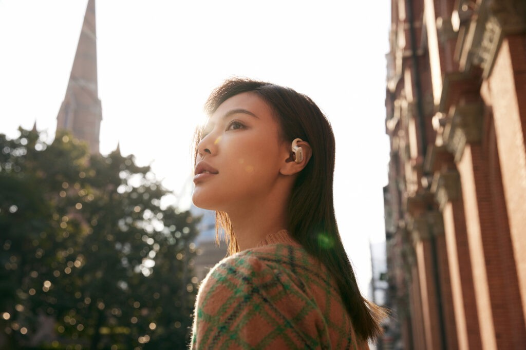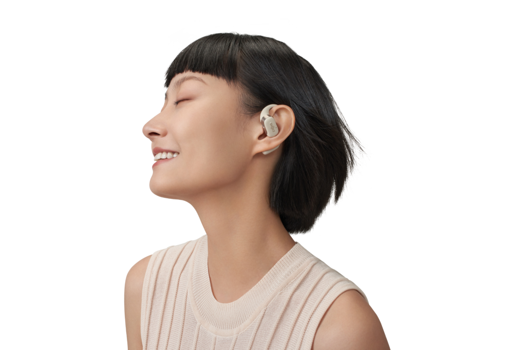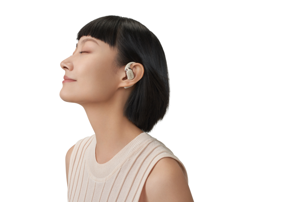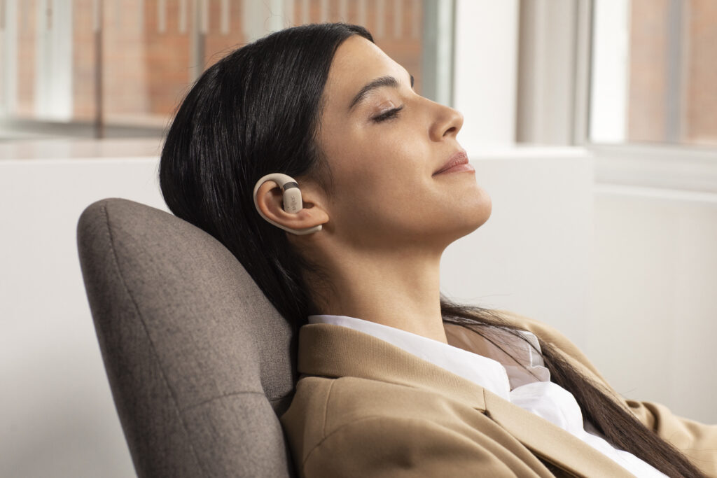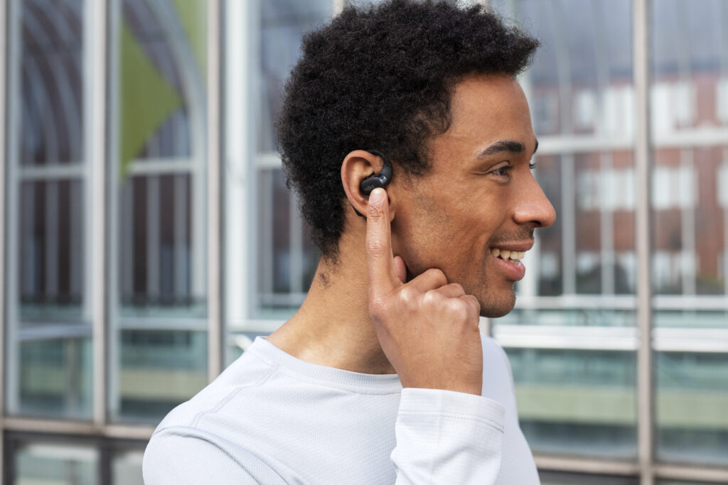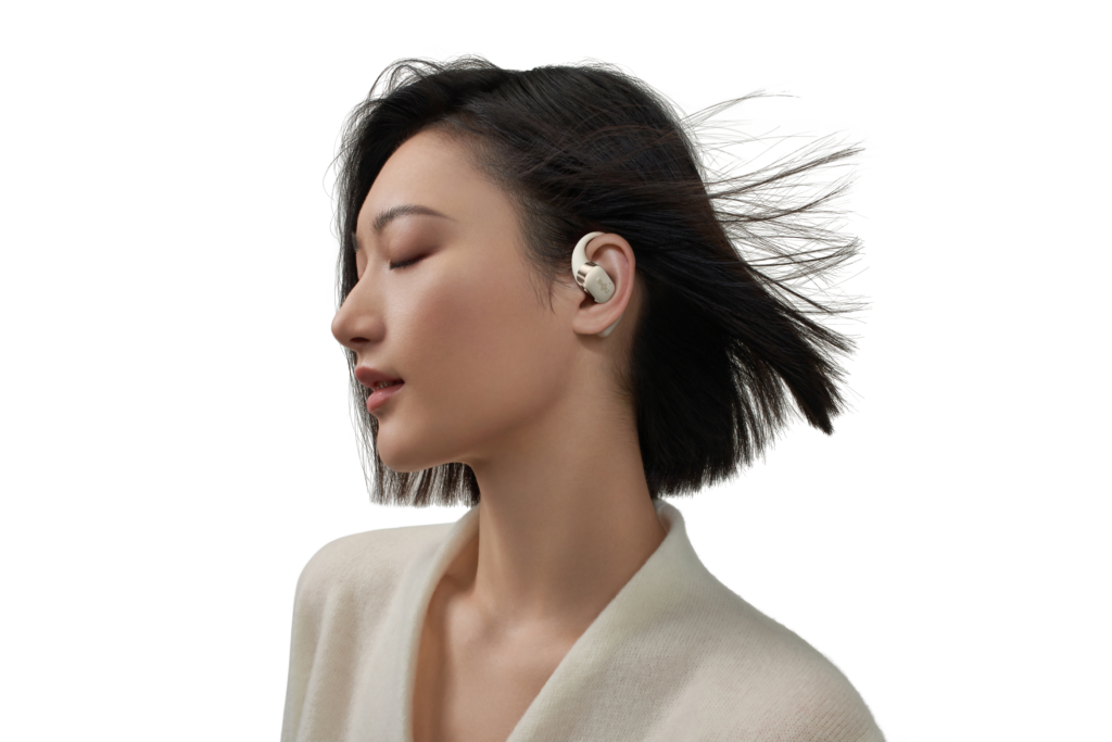 L’OpenFit se compose d’un crochet en forme de dauphin maintenant un coussin au-dessus du conduit auditif. Résultat : un son immersif sans obstruction physique de l’oreille. Les bruits environnants restent ainsi parfaitement audibles.