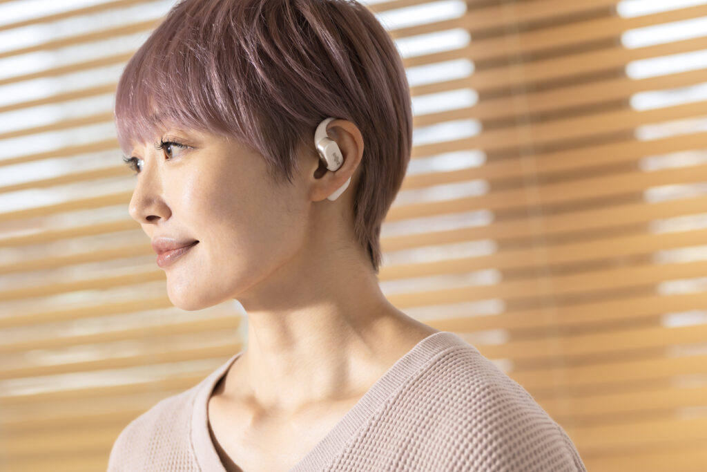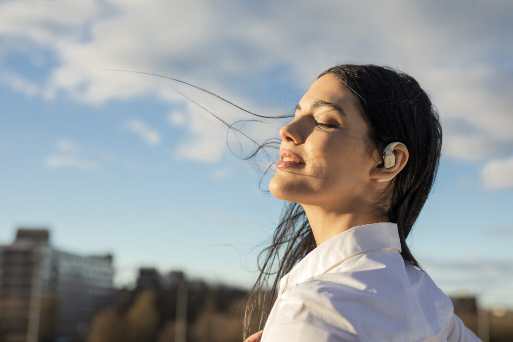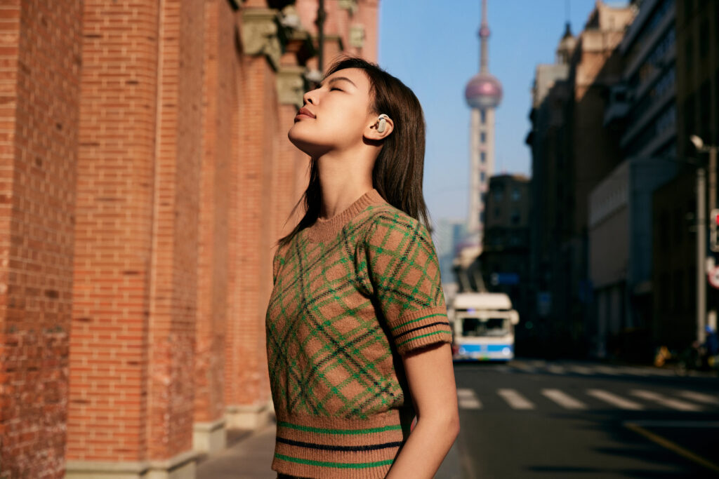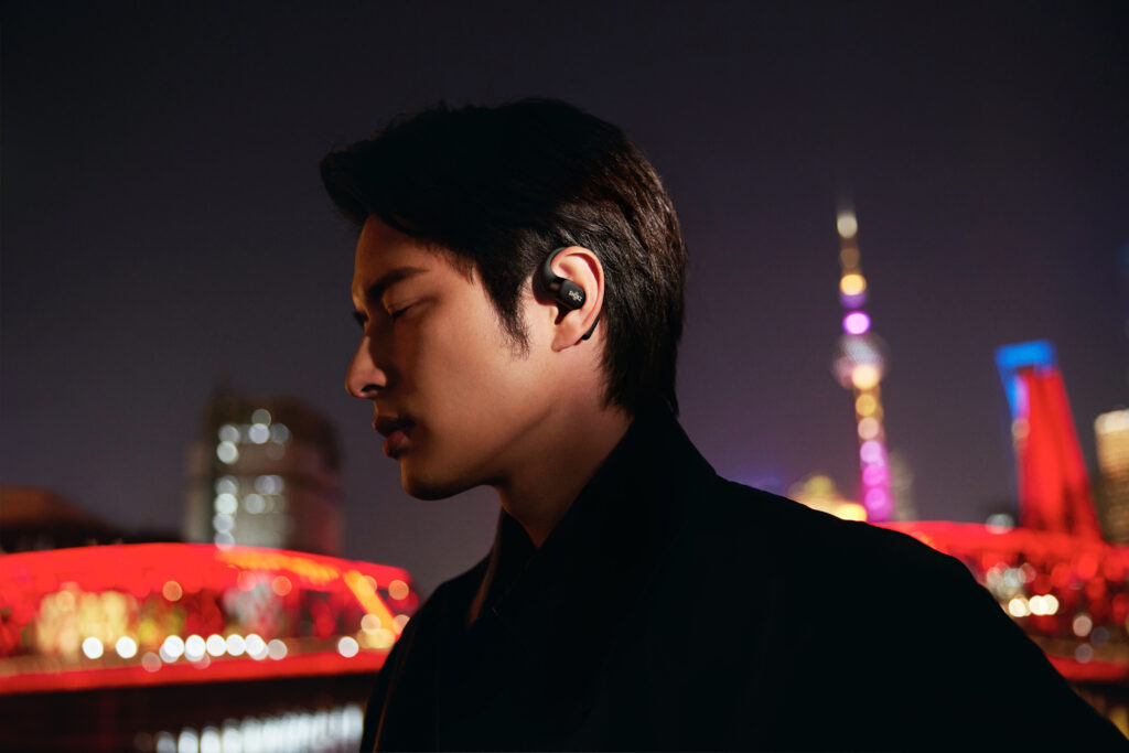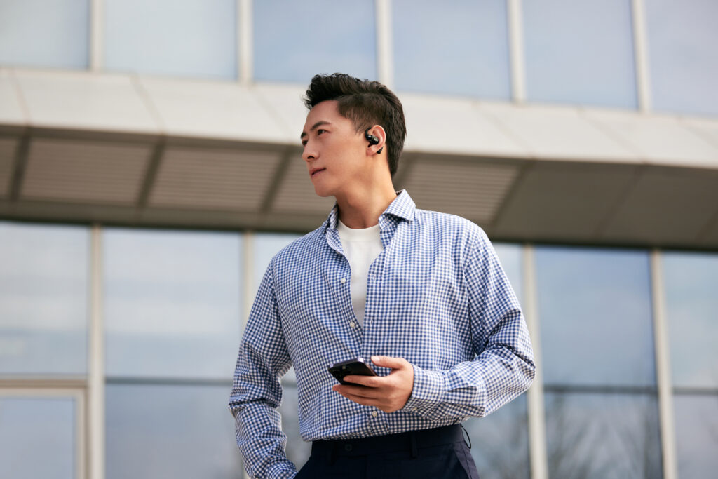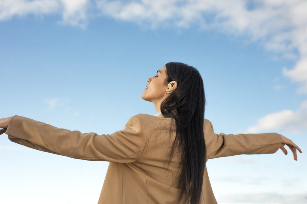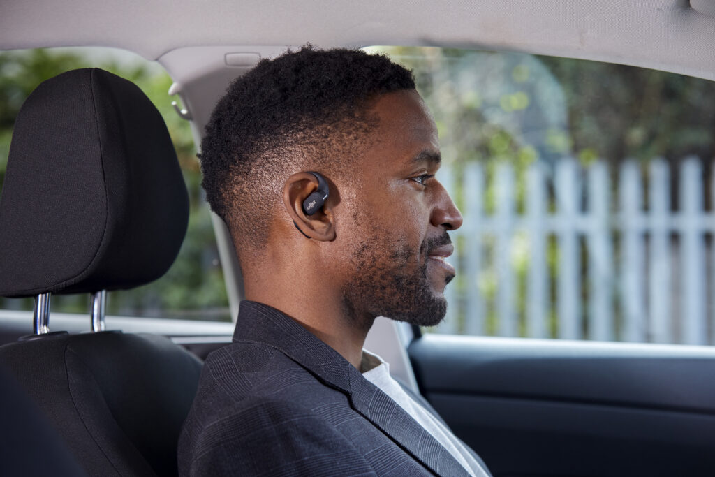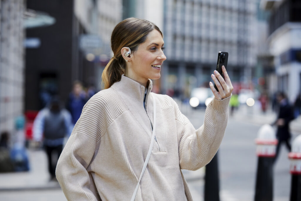 L’OpenFit se compose d’un crochet en forme de dauphin maintenant un coussin au-dessus du conduit auditif. Résultat : un son immersif sans obstruction physique de l’oreille. Les bruits environnants restent ainsi parfaitement audibles.