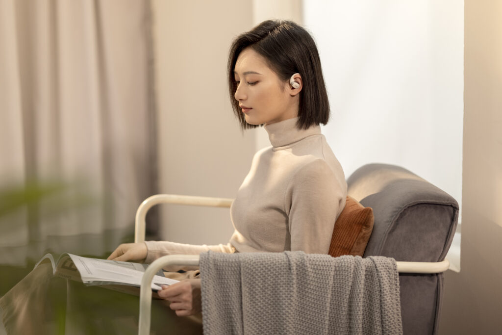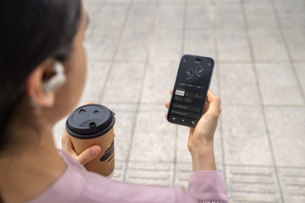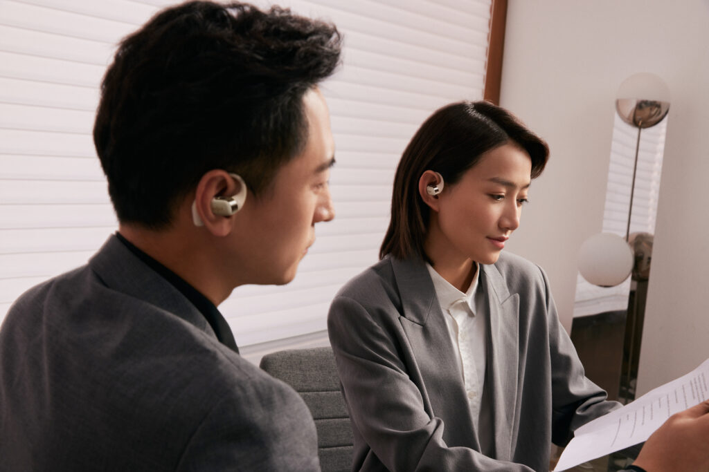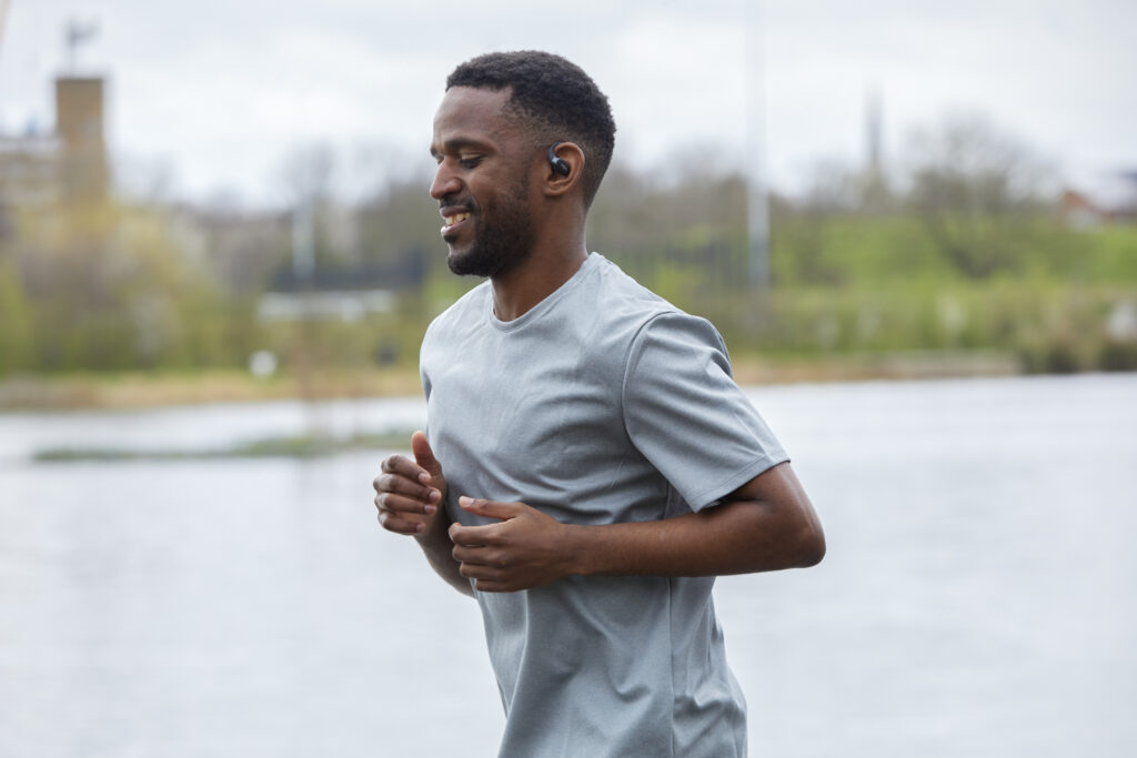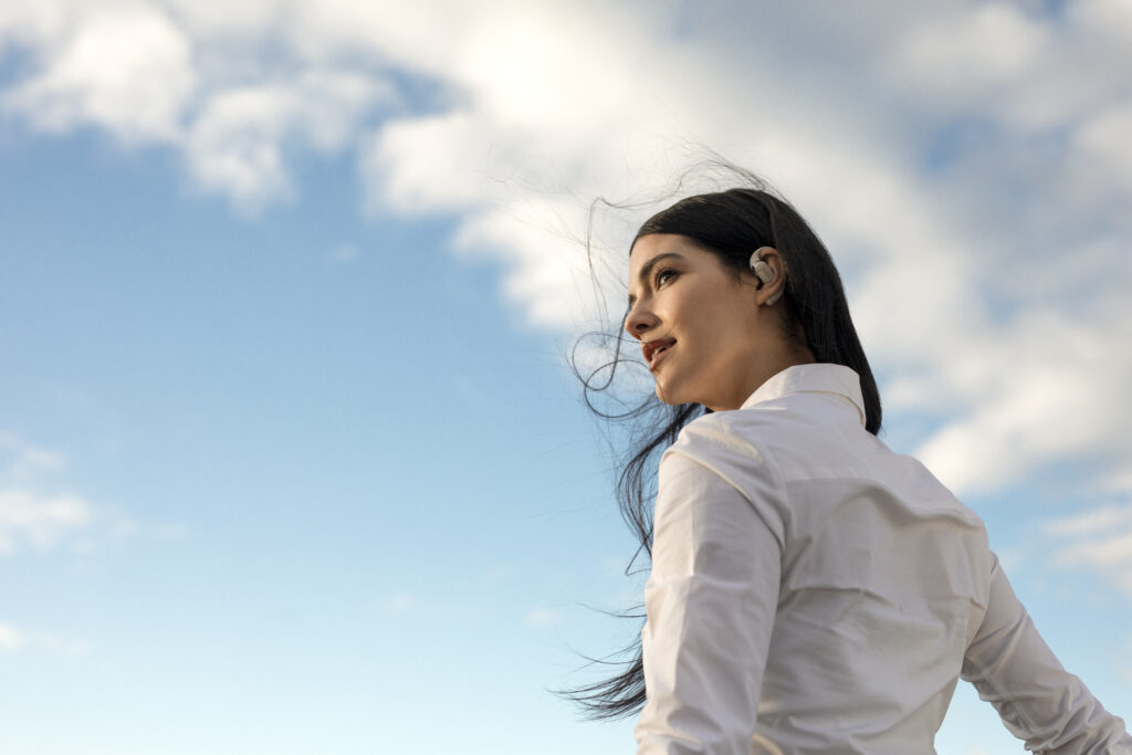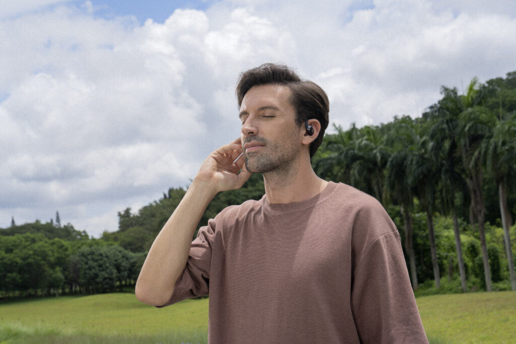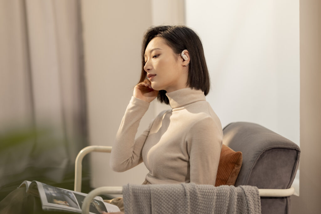 L’OpenFit se compose d’un crochet en forme de dauphin maintenant un coussin au-dessus du conduit auditif. Résultat : un son immersif sans obstruction physique de l’oreille. Les bruits environnants restent ainsi parfaitement audibles.