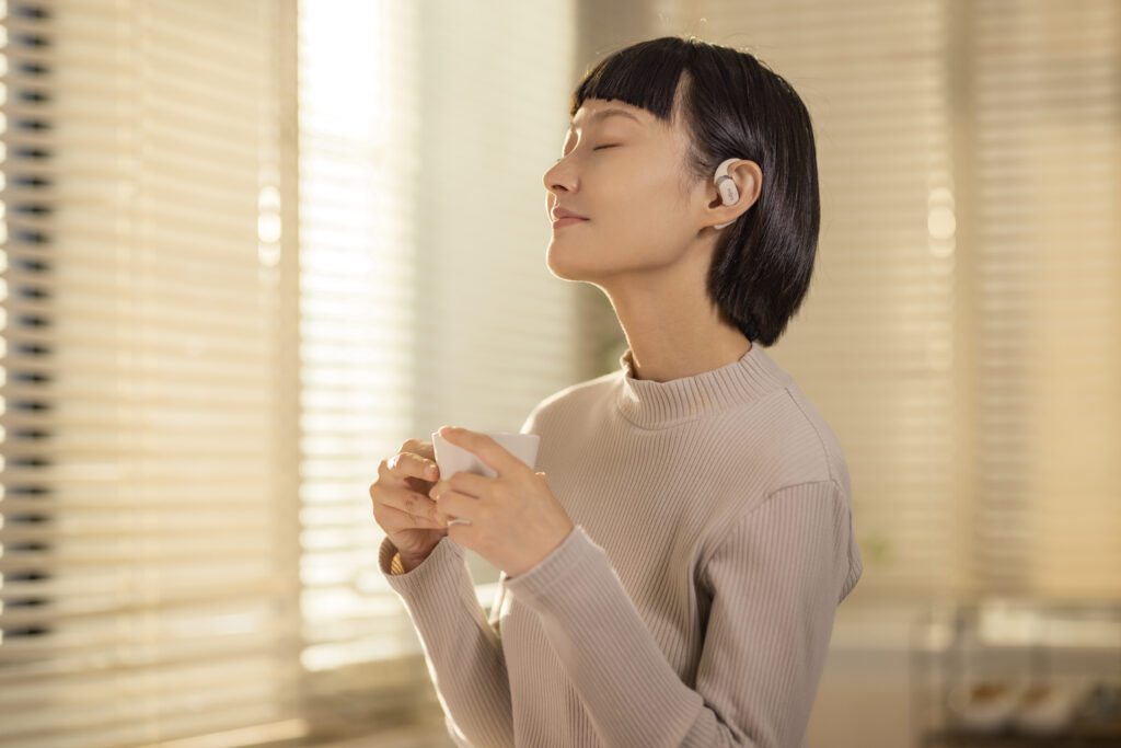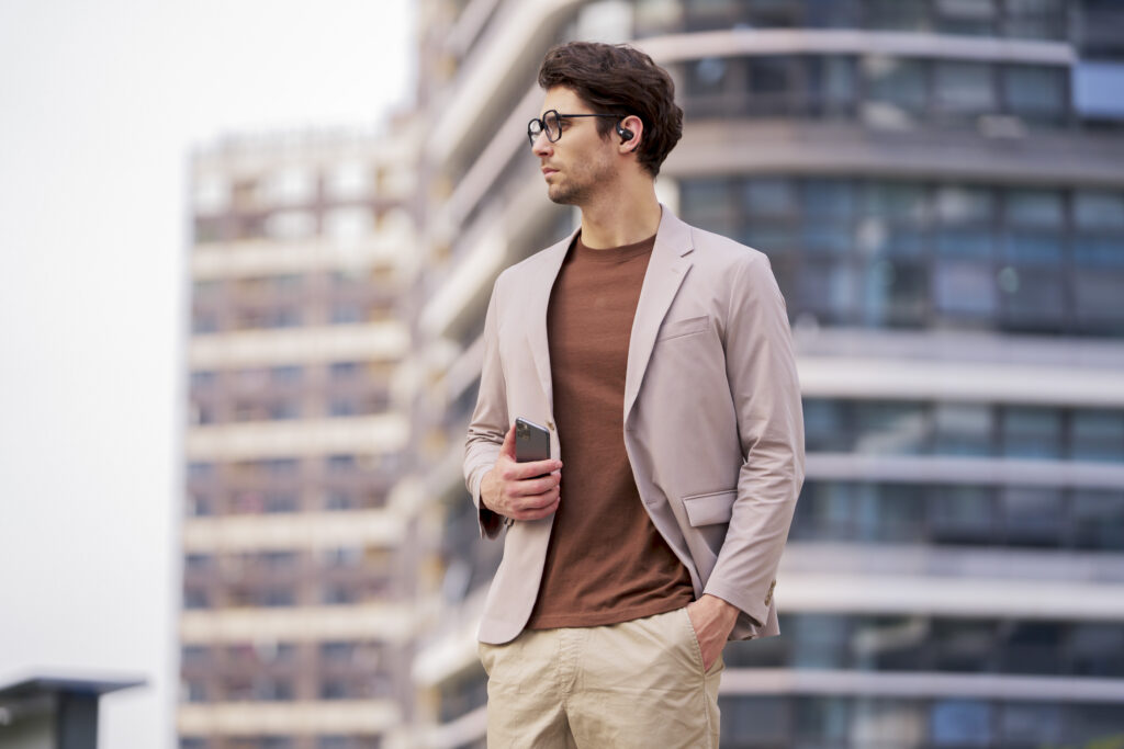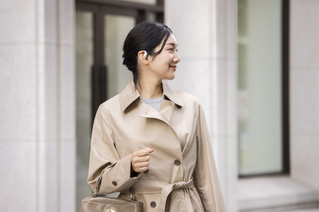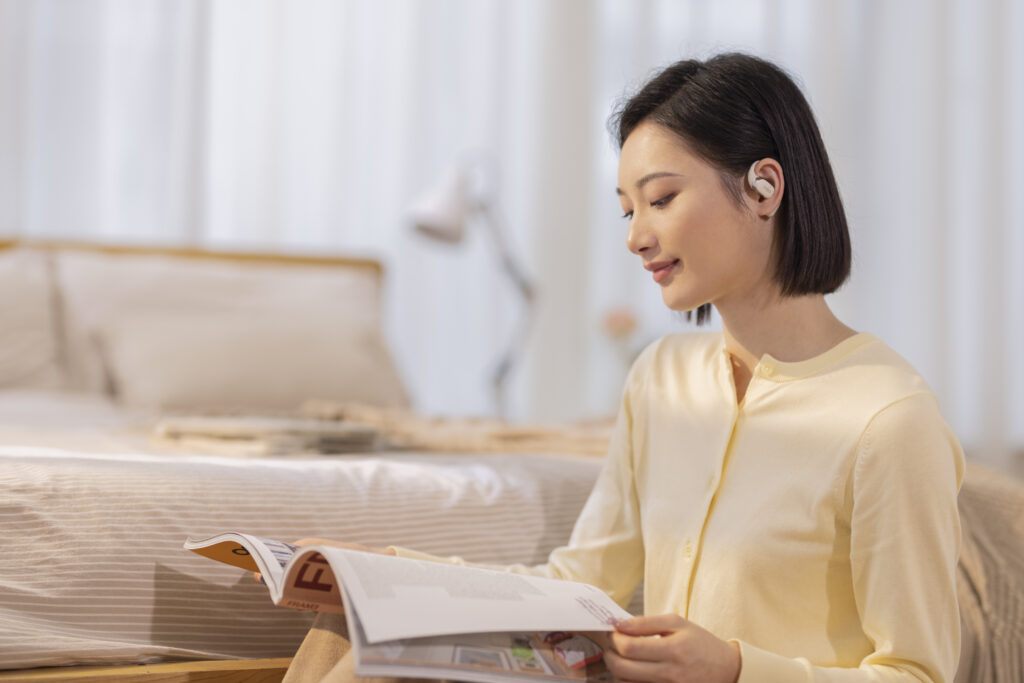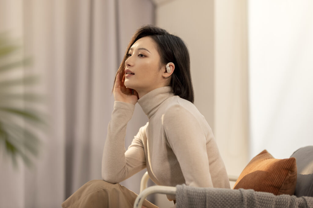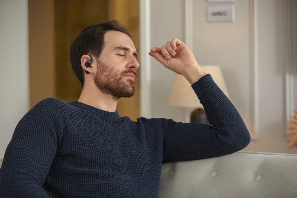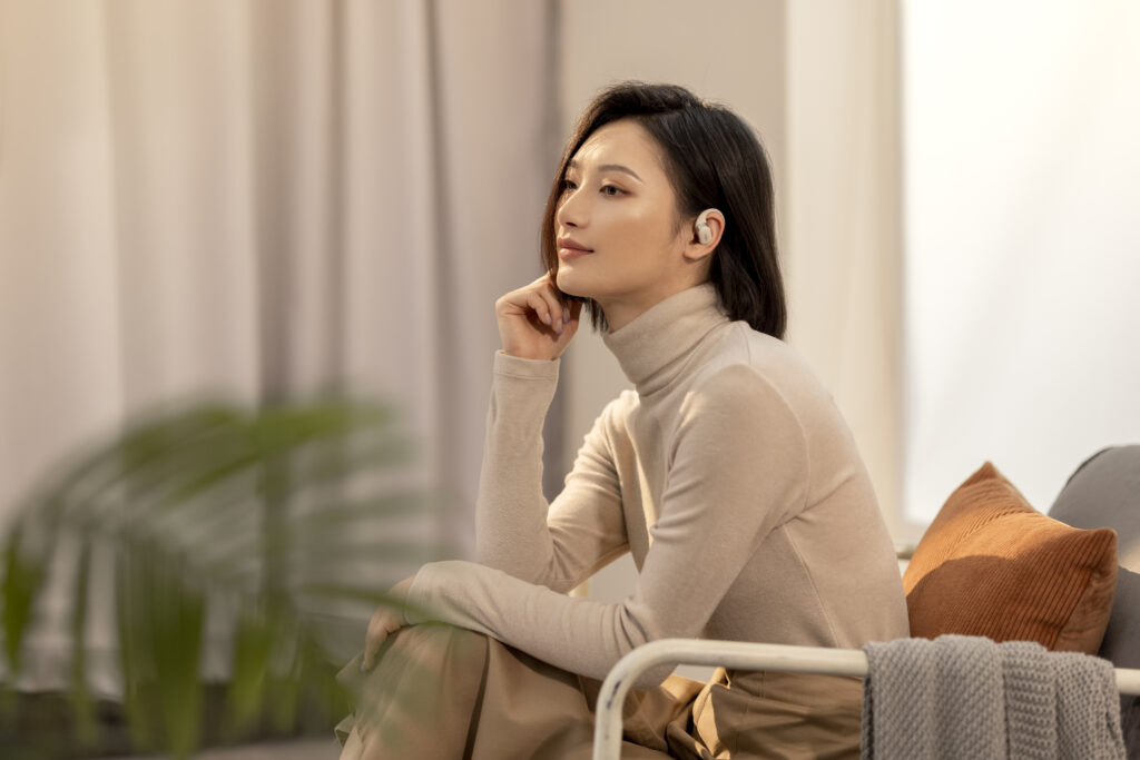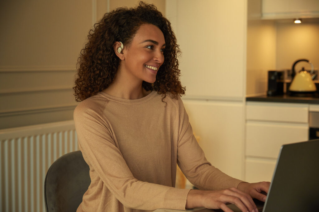 L’OpenFit se compose d’un crochet en forme de dauphin maintenant un coussin au-dessus du conduit auditif. Résultat : un son immersif sans obstruction physique de l’oreille. Les bruits environnants restent ainsi parfaitement audibles.