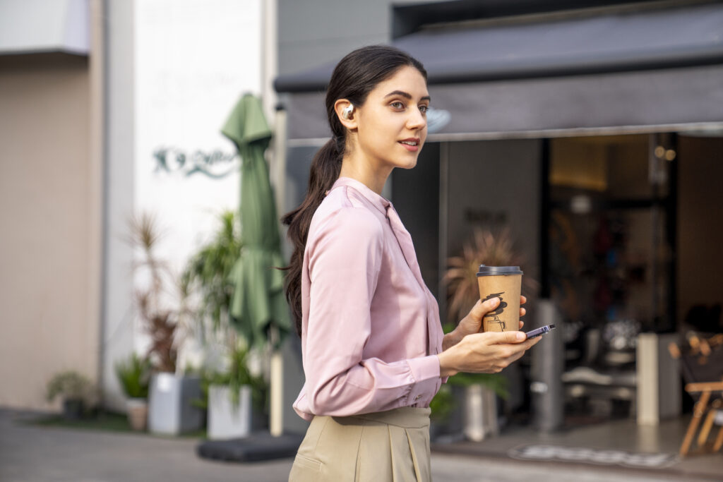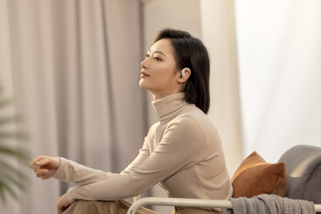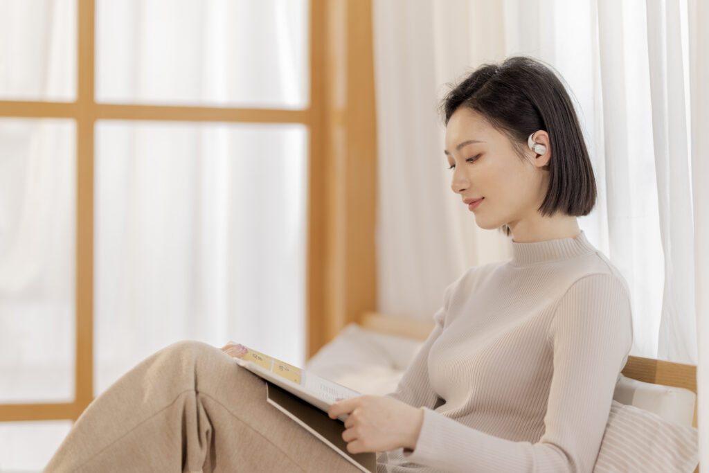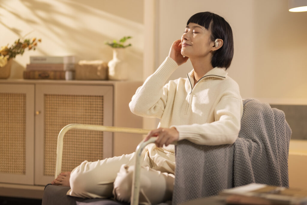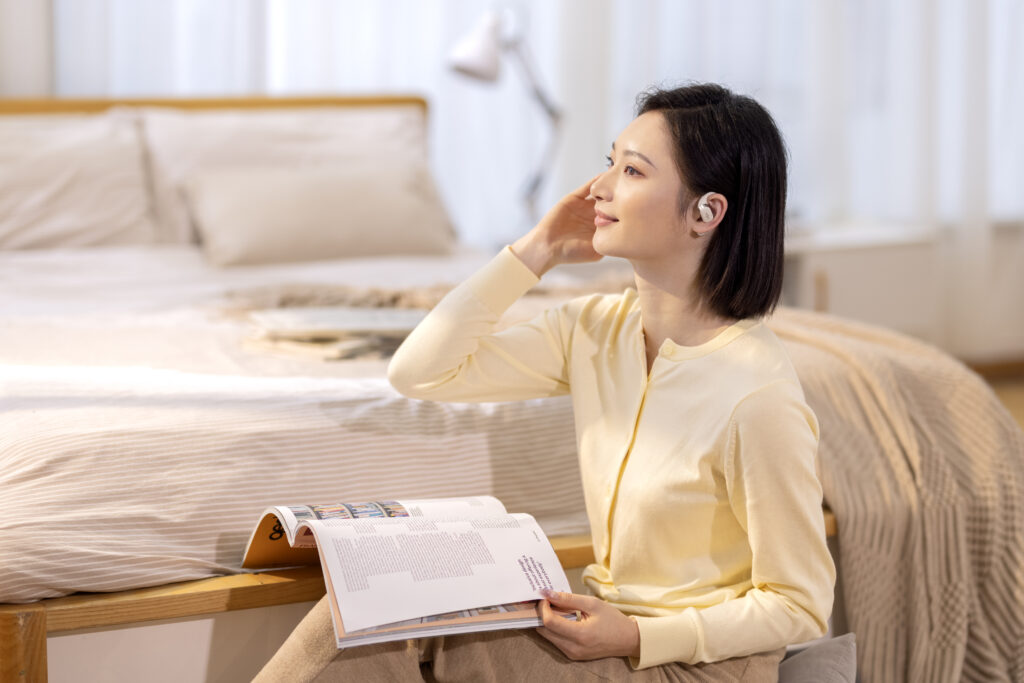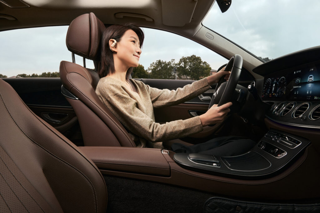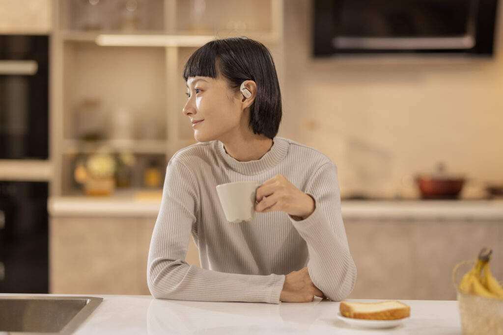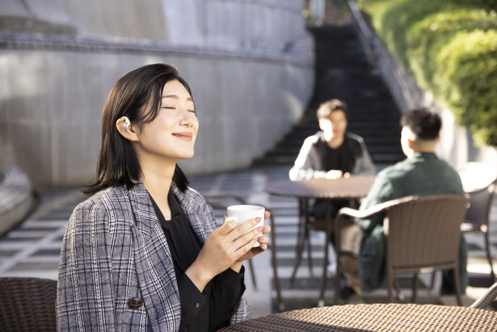 L’OpenFit se compose d’un crochet en forme de dauphin maintenant un coussin au-dessus du conduit auditif. Résultat : un son immersif sans obstruction physique de l’oreille. Les bruits environnants restent ainsi parfaitement audibles.