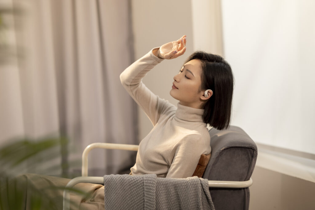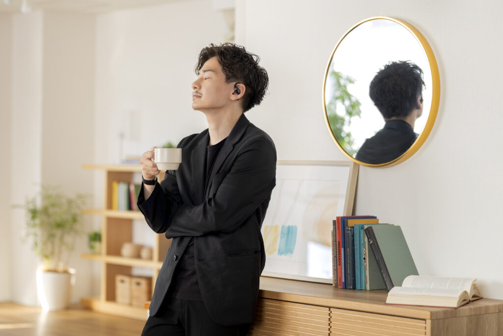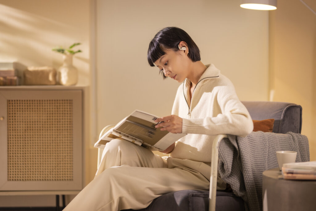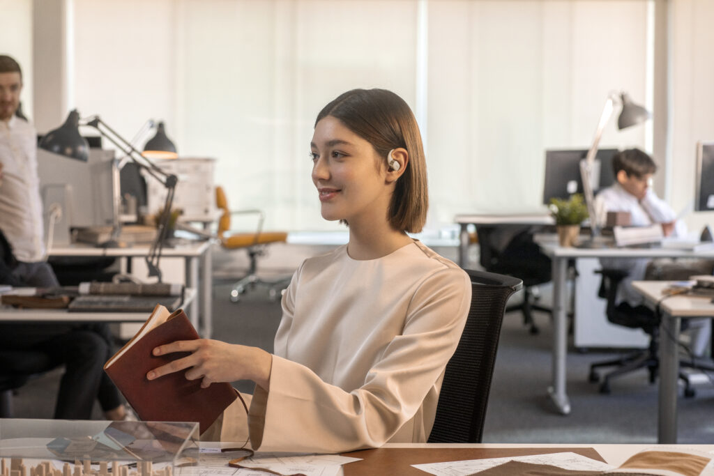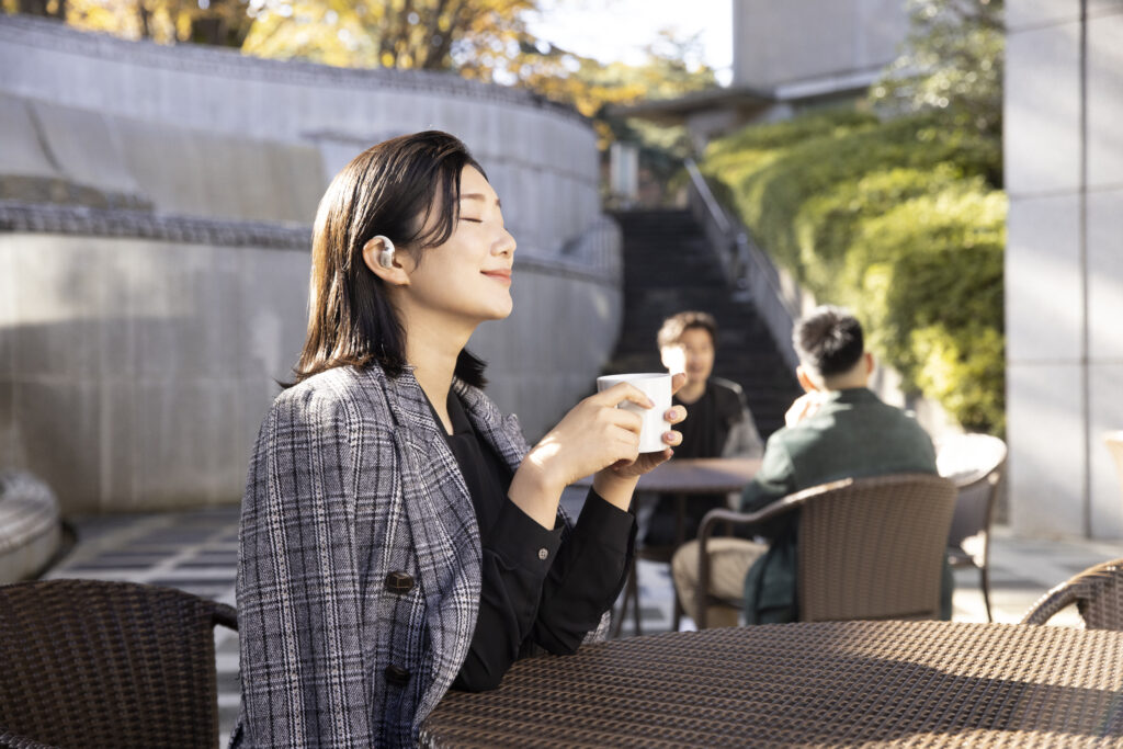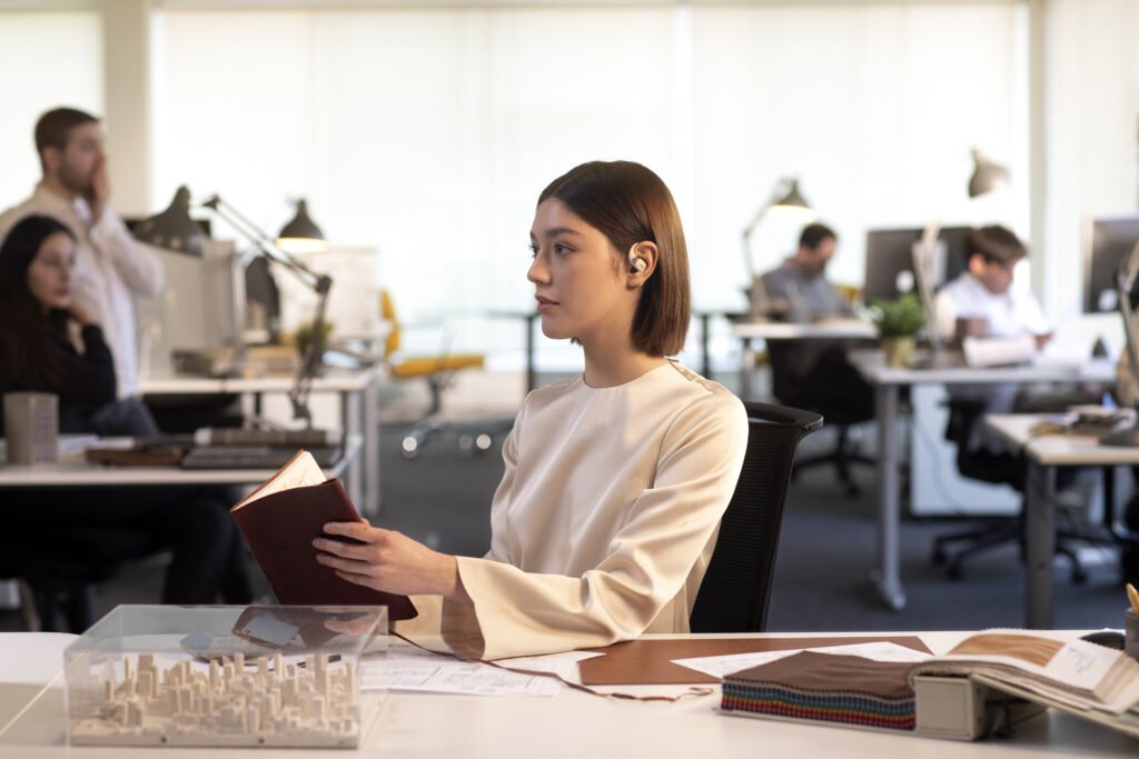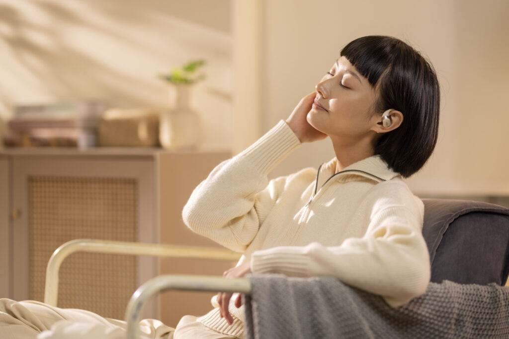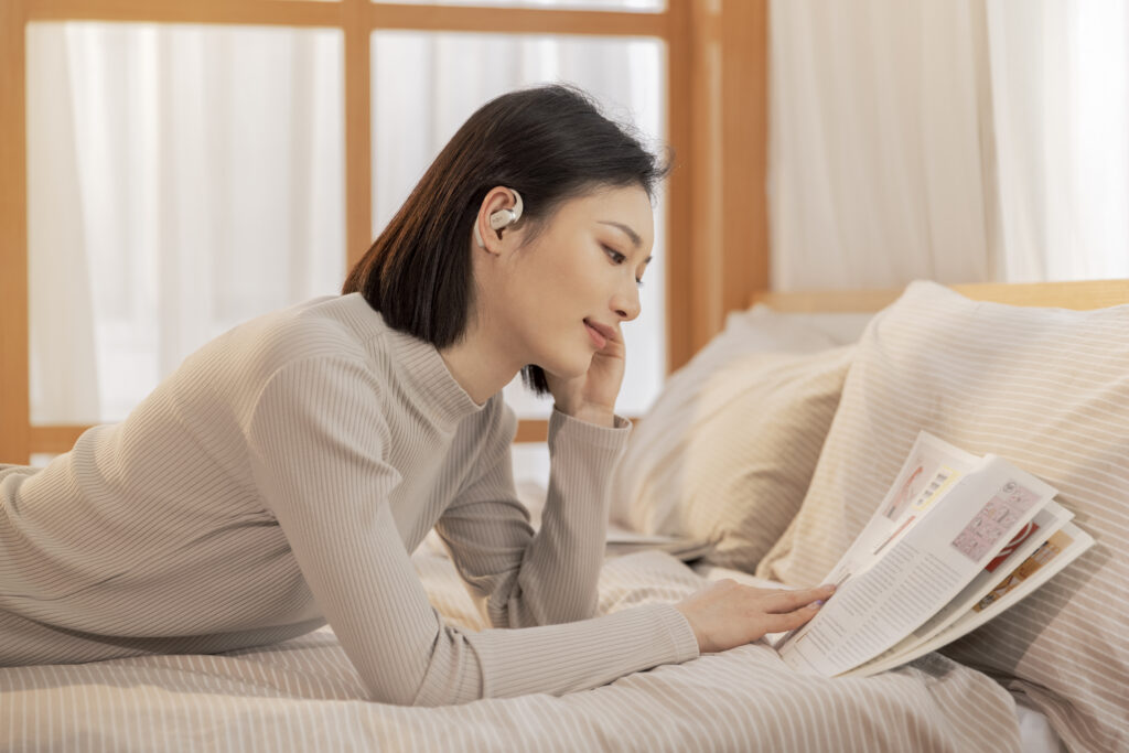 L’OpenFit se compose d’un crochet en forme de dauphin maintenant un coussin au-dessus du conduit auditif. Résultat : un son immersif sans obstruction physique de l’oreille. Les bruits environnants restent ainsi parfaitement audibles.