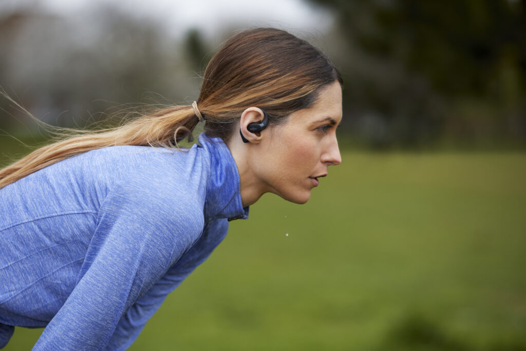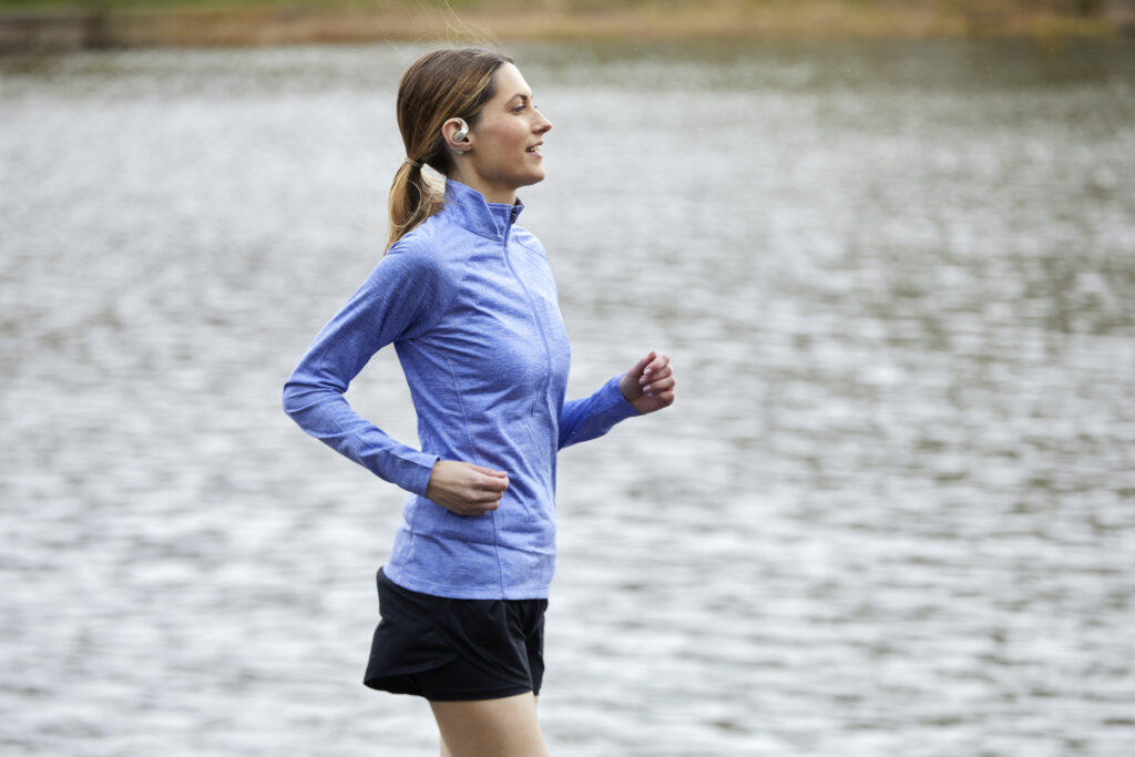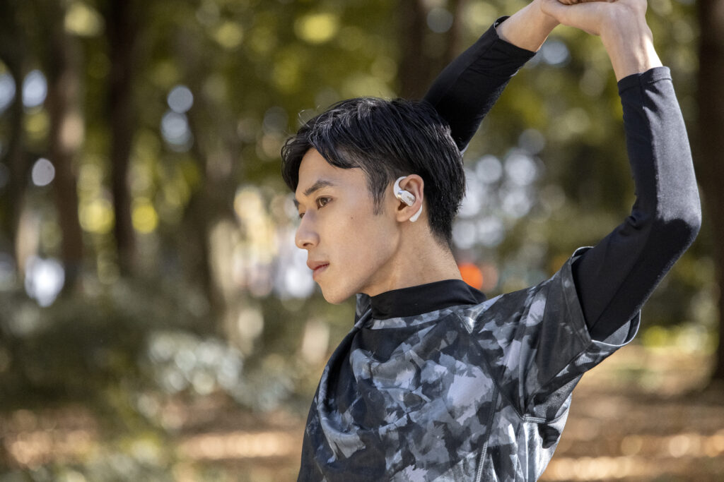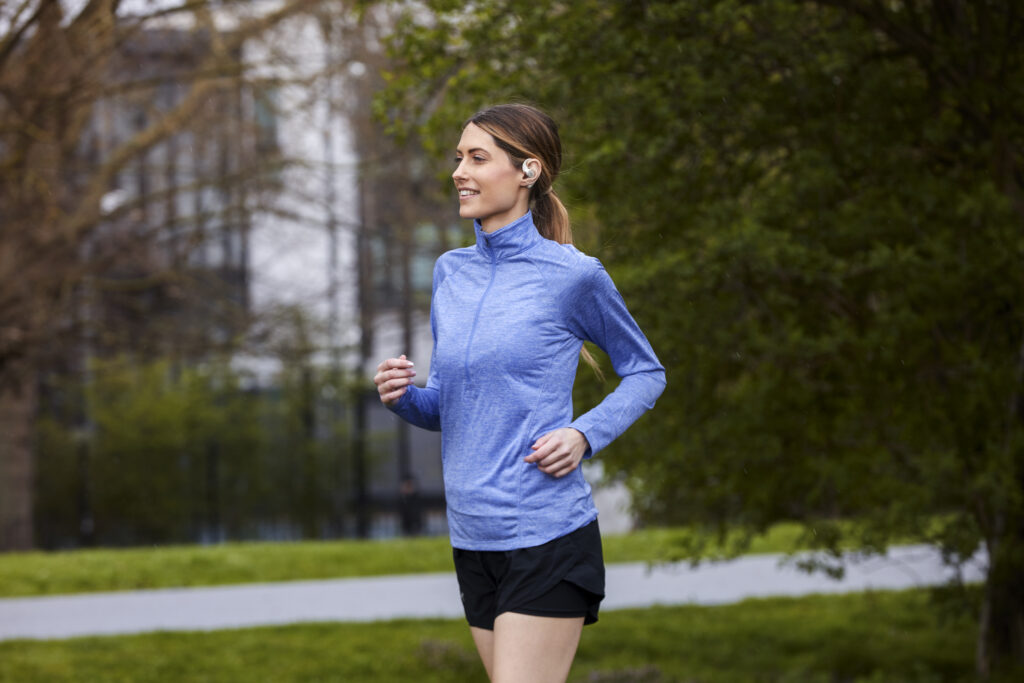 Grâce à sa technologie de conduction osseuse, l’OpenFit offre un son premium et équilibré. Les basses profondes sont restituées par conduction tactile sans être assourdies. Le maintien sécurisé évite par ailleurs toute perte des écouteurs.