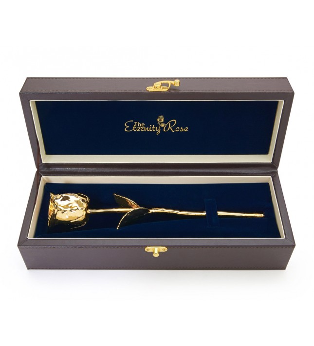 Il est facile de se perdre dans le dédale des détails de cette rose, où chaque pétale semble avoir été caressé par Midas lui-même. L’or, matériau intemporel et précieux, épouse les courbes naturelles de la rose, la transformant en une œuvre d’art pérenne. Trouver cette rose, c’est comme dénicher un trésor qui raconte des histoires de passion, d’art et d’élégance. Disponible sur leur [site officiel](https://www.rosedeternite.fr/gifts-for-her/eternity-roses/24k-gold-dipped-rose/24-karat-gold-dipped-natural-rose), cette merveille est un emblème du luxe discret et raffiné.