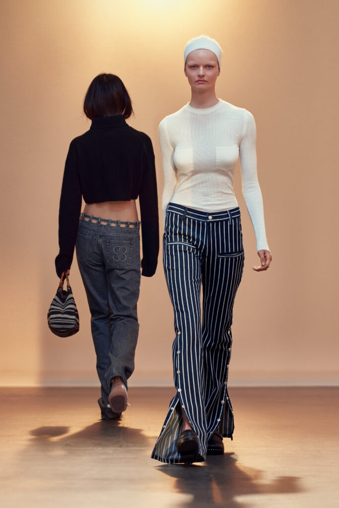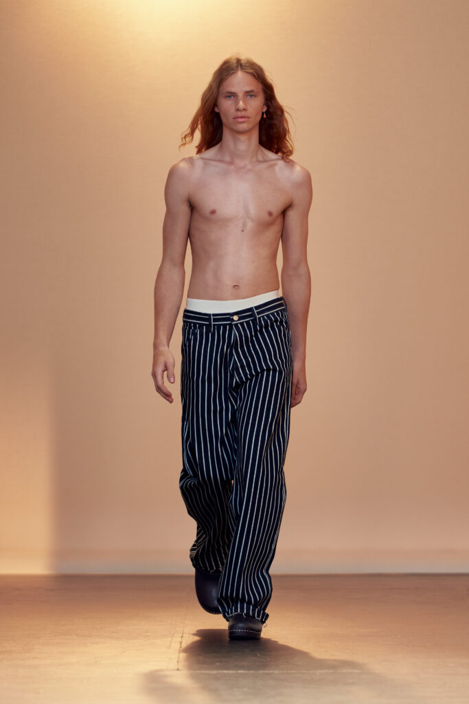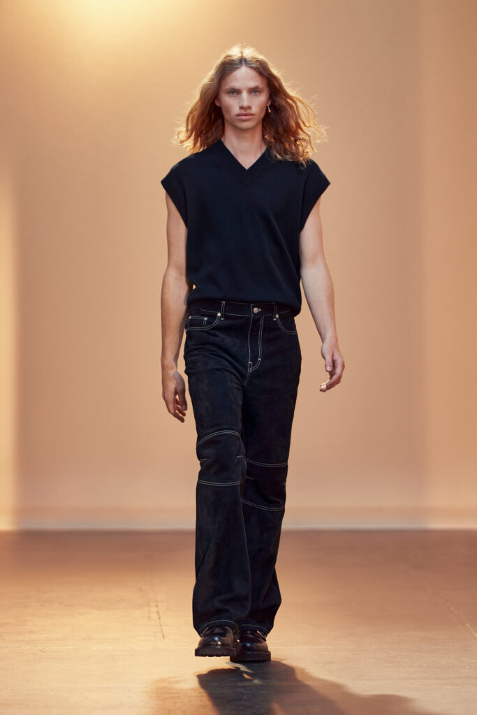 Les traitements de surteinte et de blanchiment appliqués à une palette neutre côtoient de nouveaux styles de denim d’été qui intègrent un motif à rayures, tandis que PE24 voit également la réédition d’un ancien classique de Filippa K, sous la forme d’un jean en denim extensible sans poches à l’arrière. Les lavages blanchis appliqués aux articles en maille, qui présentent souvent des détails de dentelle classique des années 90, accentuent encore l’impression de temps passé dans la collection. Associés aux bords bruts roulés – un autre détail d’archive – ces articles cherchent à trouver la beauté dans la façon dont un vêtement vieillit et développe les imperfections perçues. Le monogramme 93*, nouvellement introduit, a été appliqué d’une manière typiquement subtile par Filippa K, brodé sur des articles en jersey et en maille, ainsi qu’embossé sur des modèles en denim.