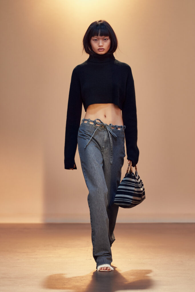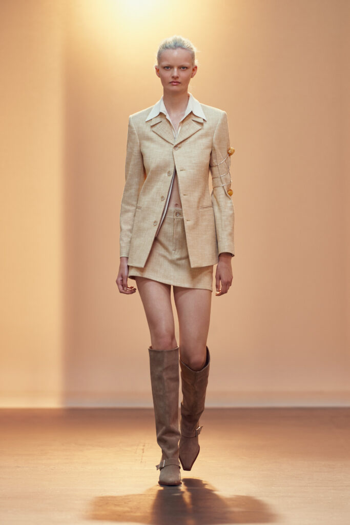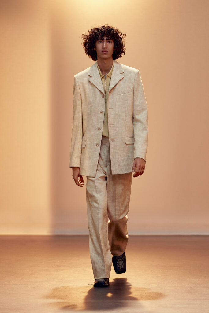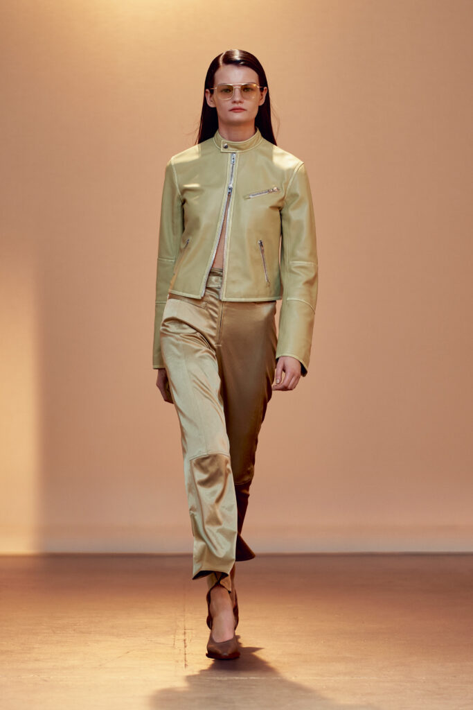 Les détails de la gamme d’accessoires jouent également un rôle dans l’établissement de l’écriture visuelle de la collection PE24 – en particulier un détail de boucle exagéré, appliqué au nouveau sac 93 Buckle Bag. Les sacs en crochet avec des poignées en bambou, quant à eux, évoquent les souvenirs de la jeunesse des années 90 et des créations maison. La maison continue également à faire évoluer son offre de lunettes, en interprétant une forme classique d’aviateur, filtrée par une lentille des années 90.