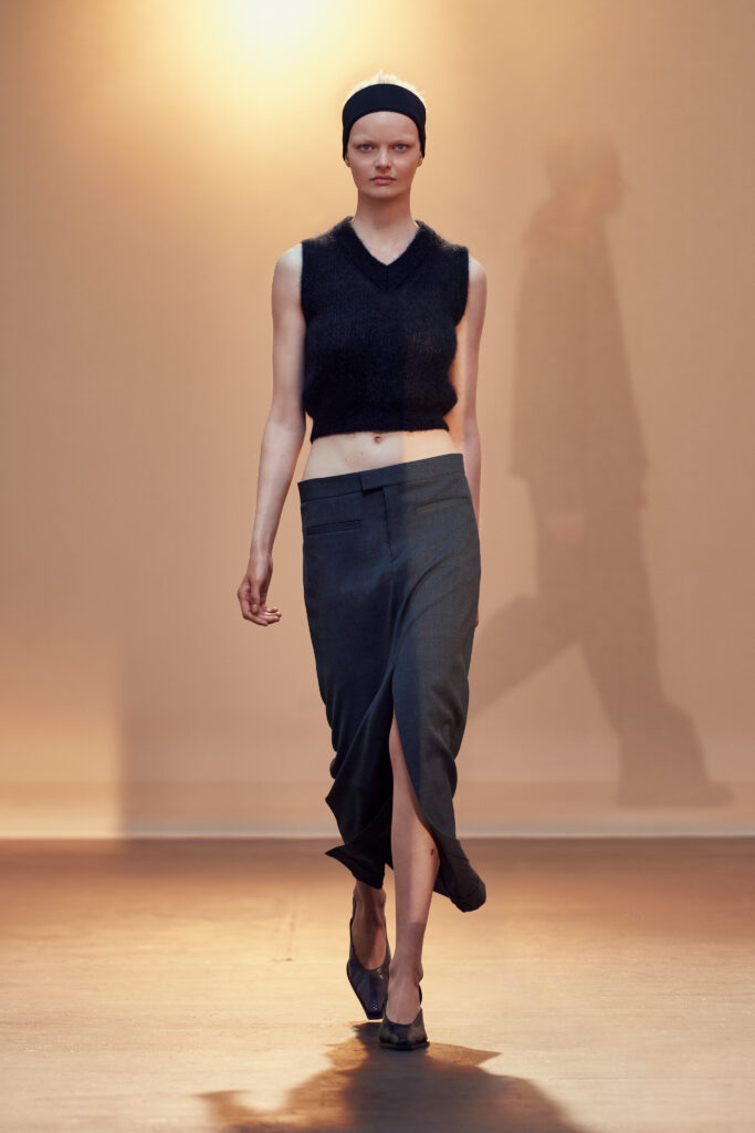 La boucle caractéristique de la collection a également été appliquée aux chaussures. Sa forme plus rigide est complétée par des modèles aux bords en tissu effiloché et au nœud lâche. La collaboration entre Filippa K et Swedish Hasbeens se poursuit cette saison, avec une version à talons des sabots lancés en juin dernier.