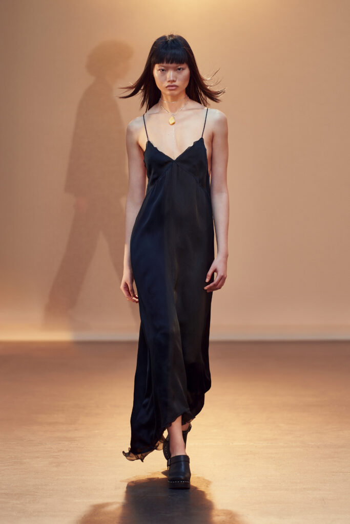 L’esthétique sobre et monochrome des tenues de soirée de la collection PE24 confère à la collection le sens de la simplicité propre à Filippa K. Les costumes de smoking décontractés et les tenues d’apparat sont des éléments essentiels de la collection. Les costumes de smoking décontractés, les robes à glissière et à bandeau faciles à porter et le costume masculin en coton et soie au lustre subtil sont autant d’exemples de vêtements de soirée qui ne sont pas contraignants, mais qui permettent au contraire à ceux qui les portent d’exprimer un sentiment de confiance décontracté.